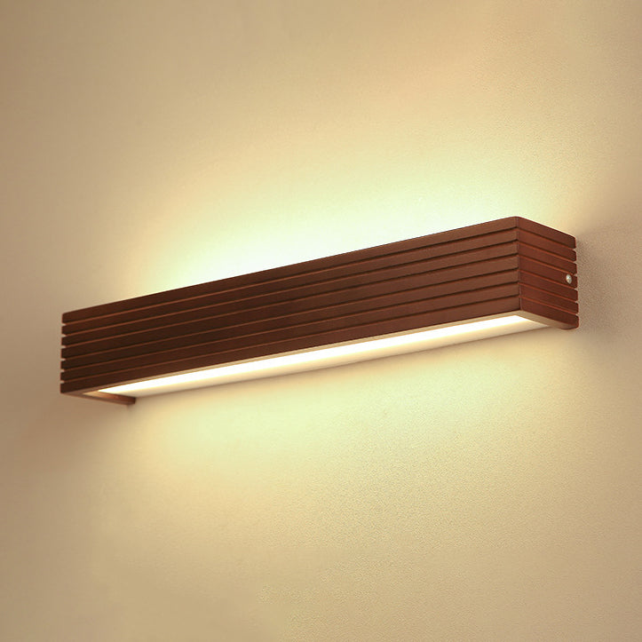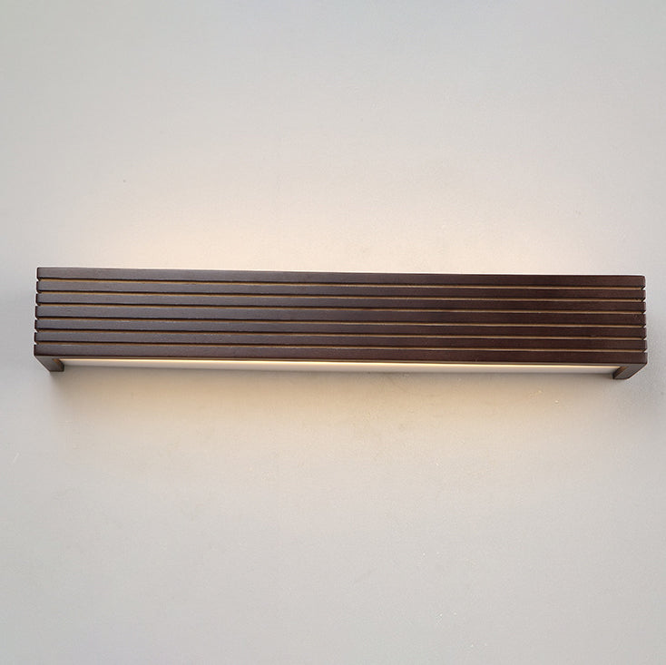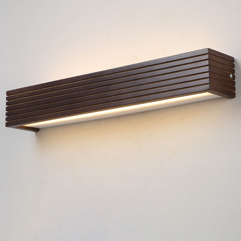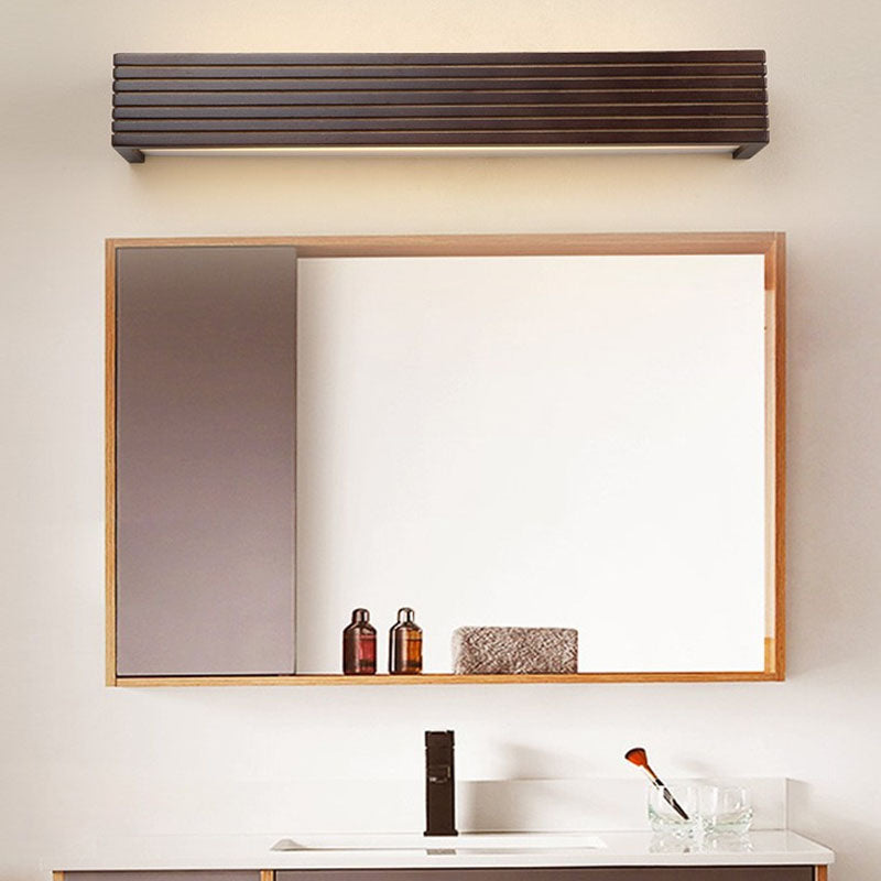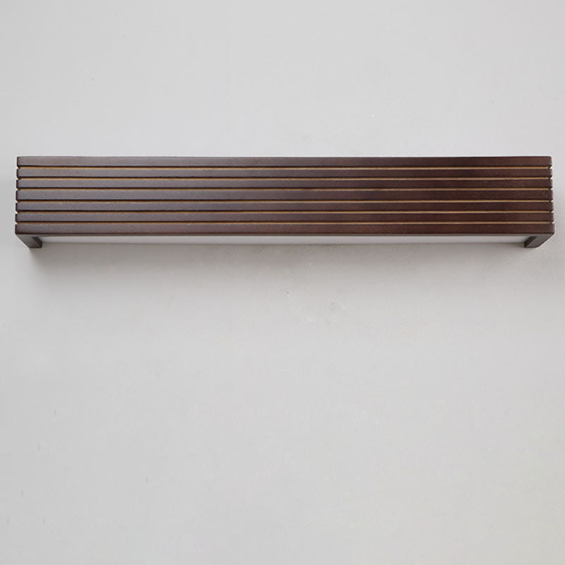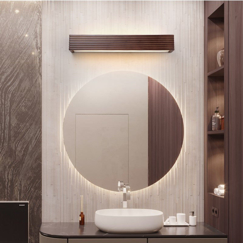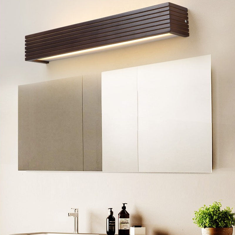 Traditional Chinese Striped Wood Cuboid LED Vanity Mirror Front Wall Sconce Lamp For Bathroom