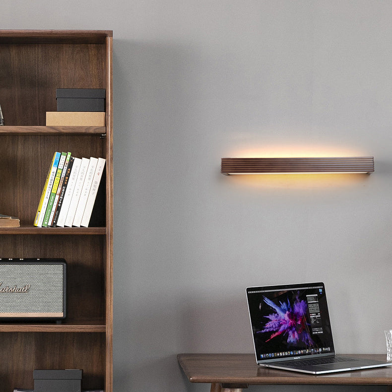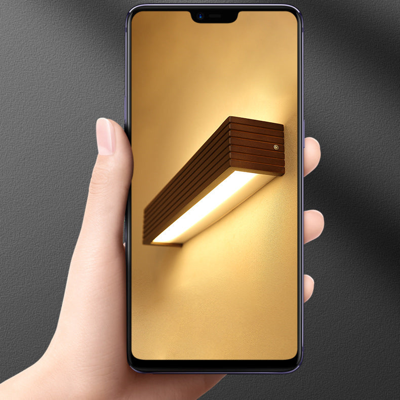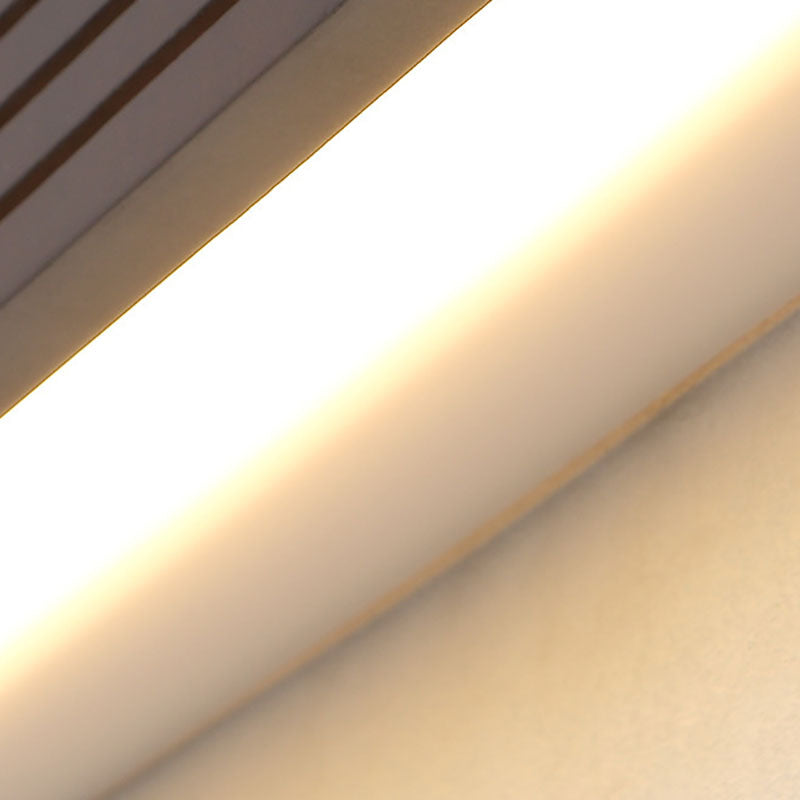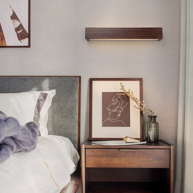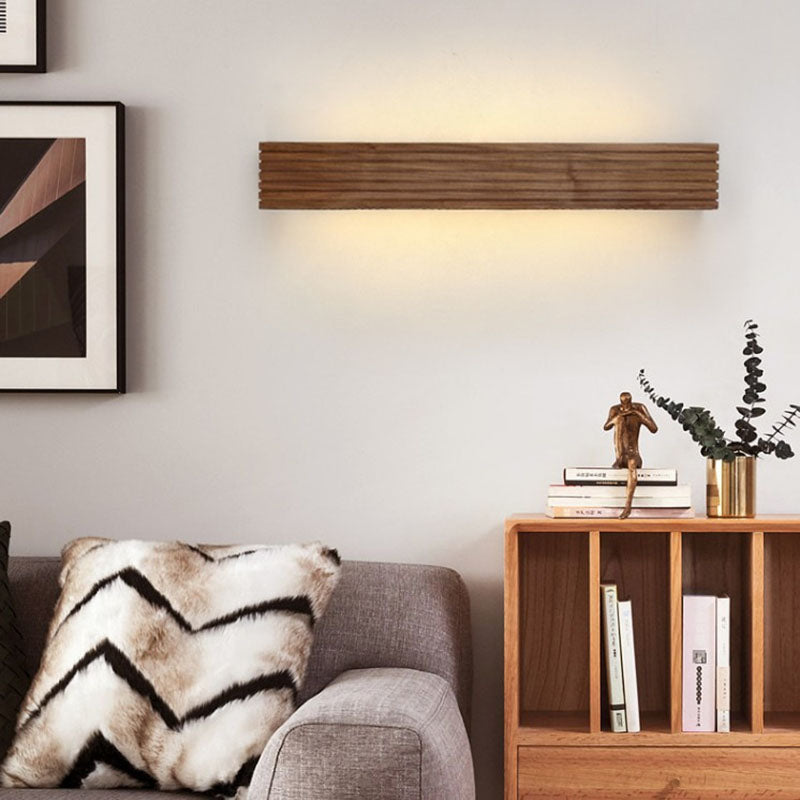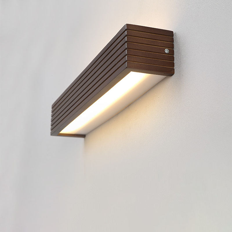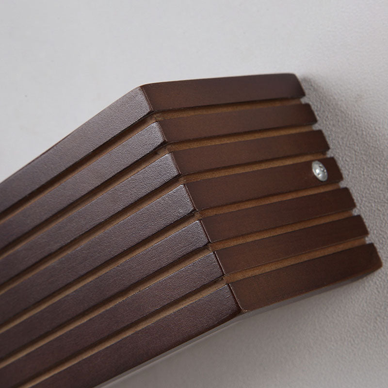 Traditional Chinese Striped Wood Cuboid LED Vanity Mirror Front Wall Sconce Lamp For Bathroom