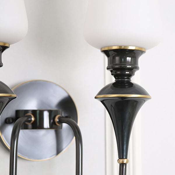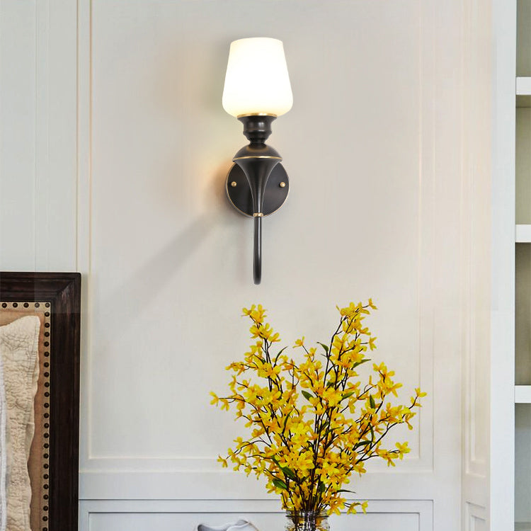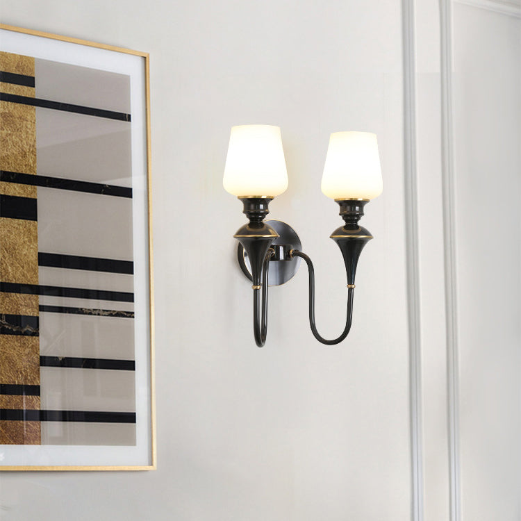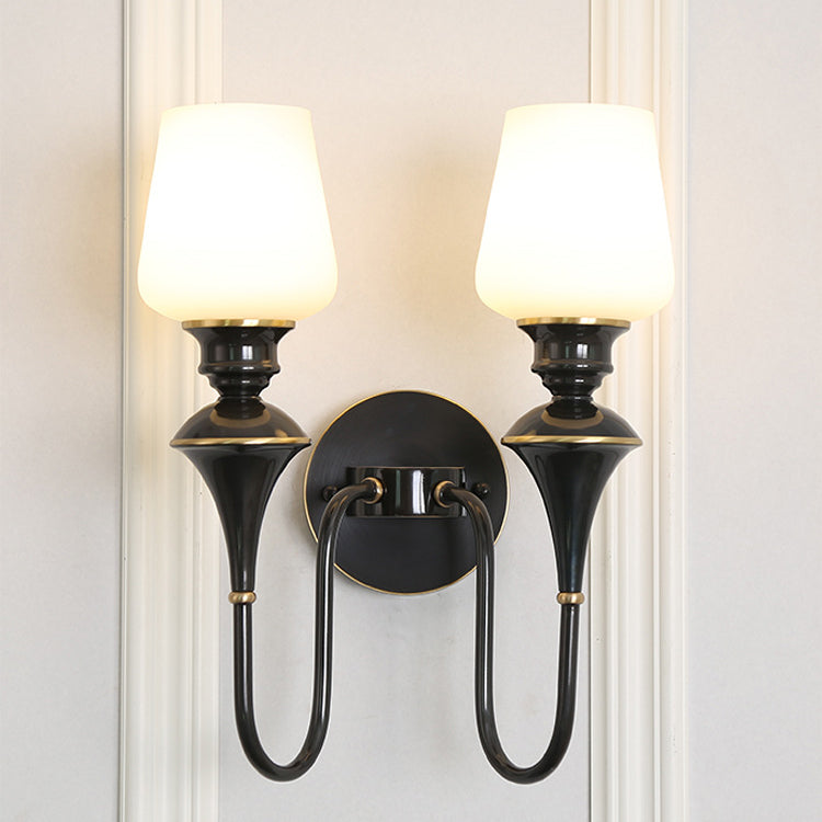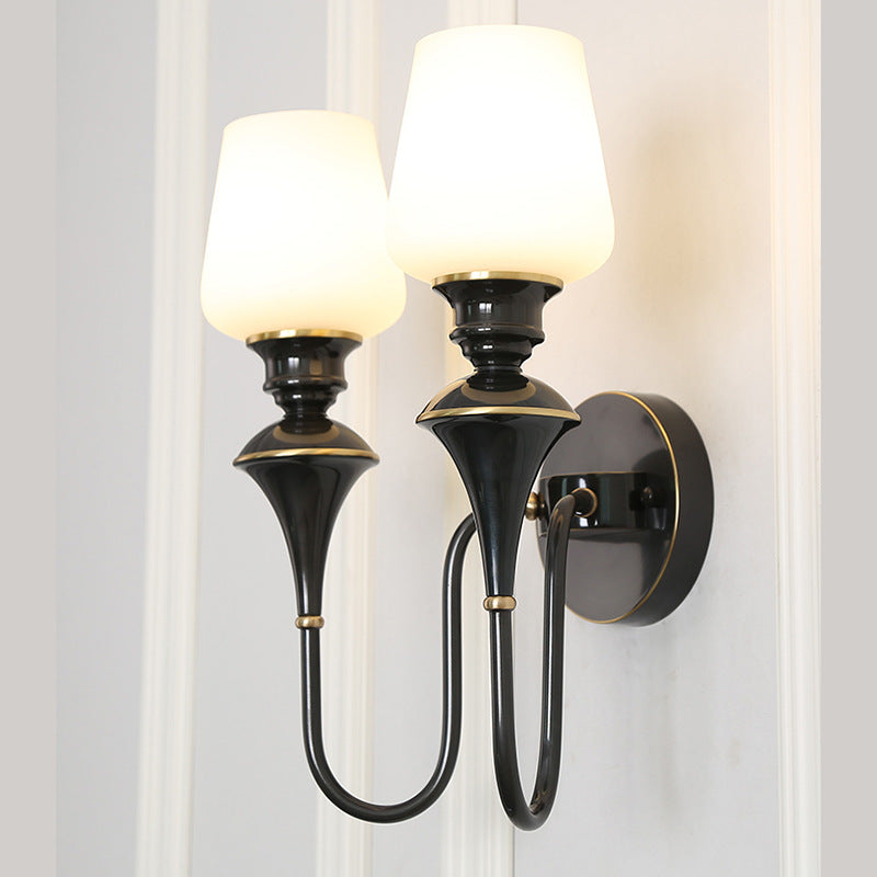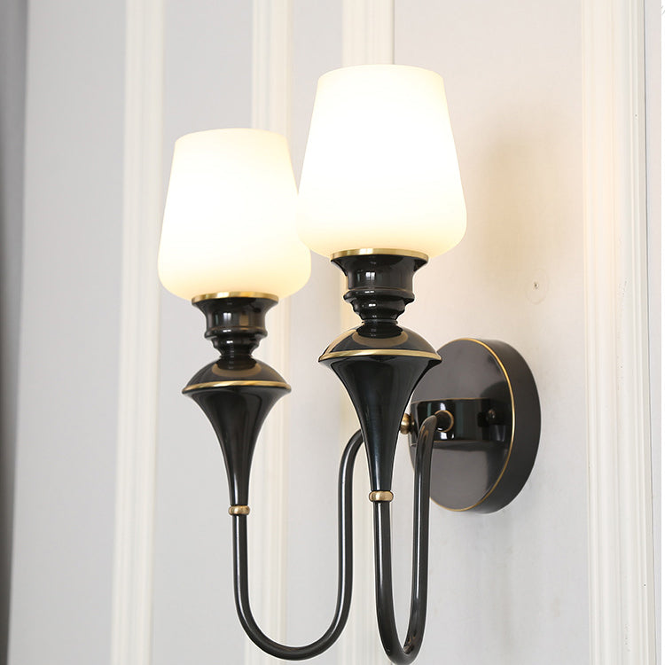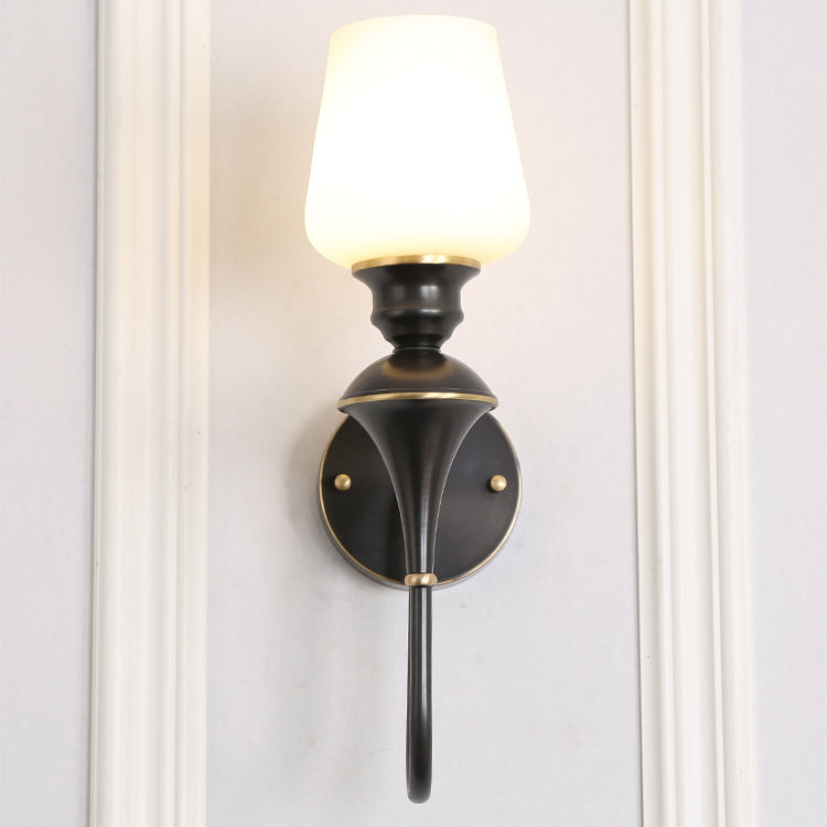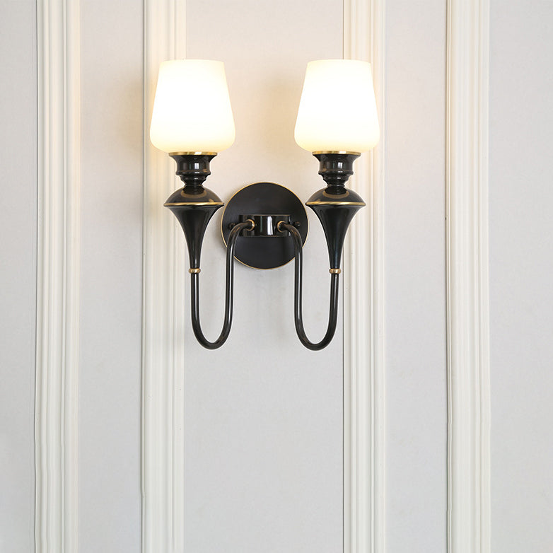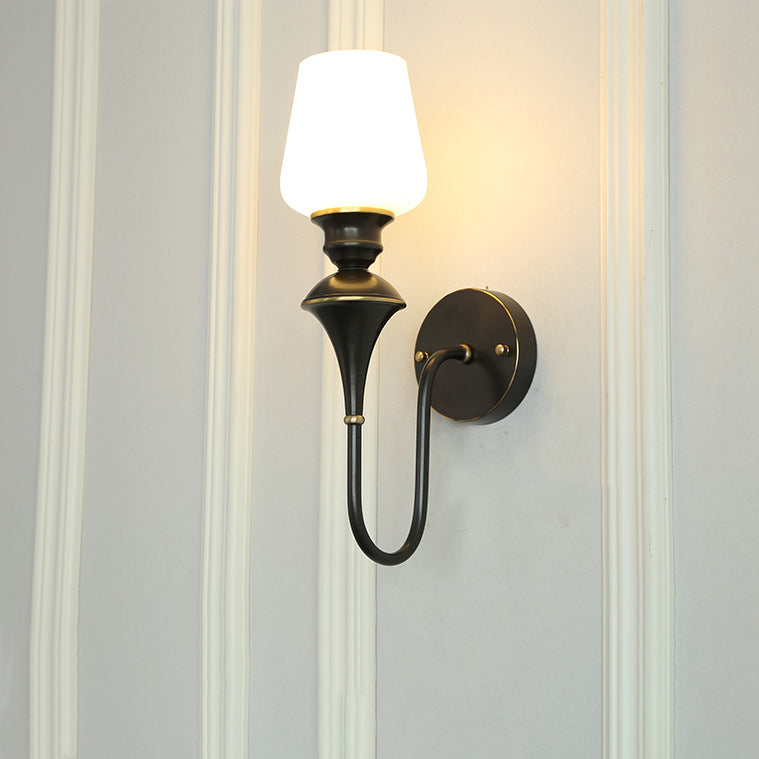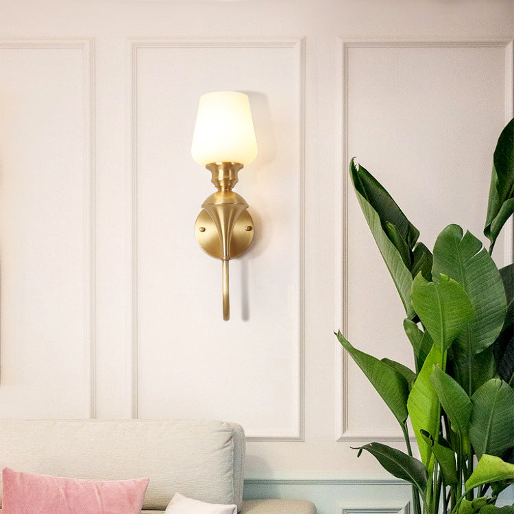 Traditional European Curved Rod Candle Holder Cup Shape Full Brass Frame Glass Shade 1/2 Light Wall Sconce Lamp For Living Room