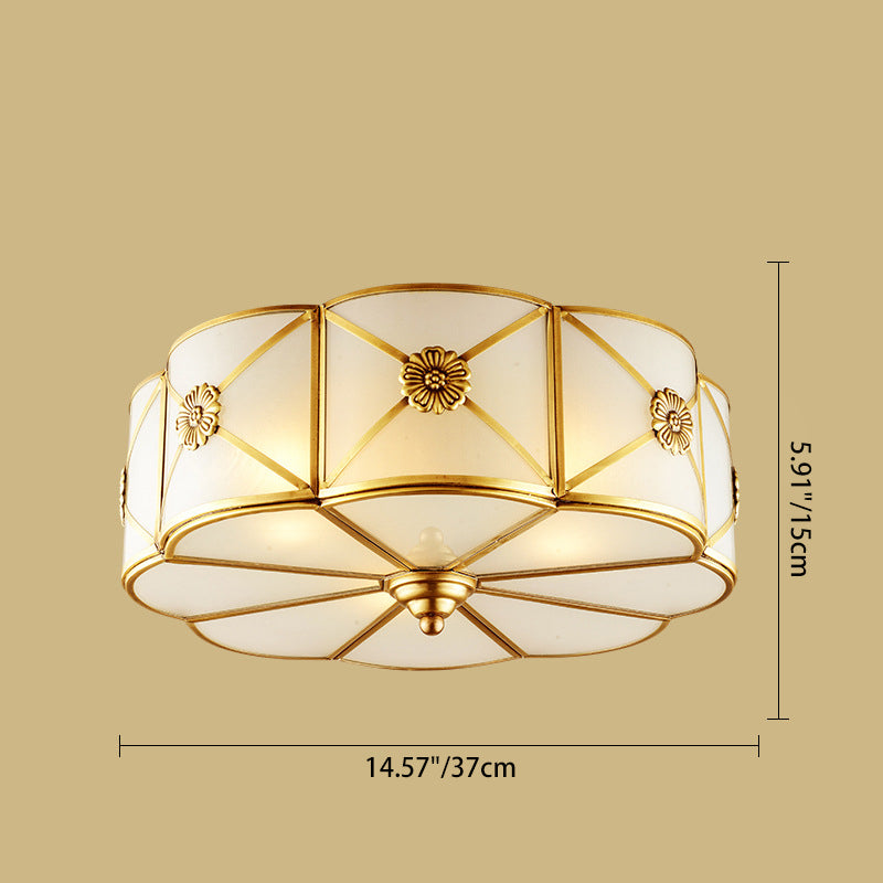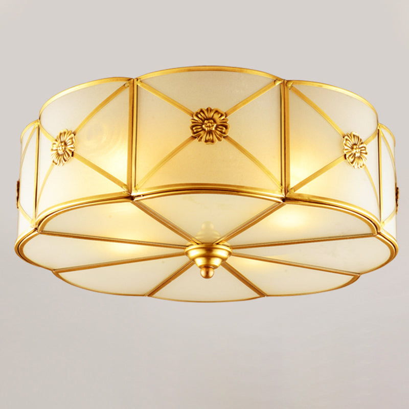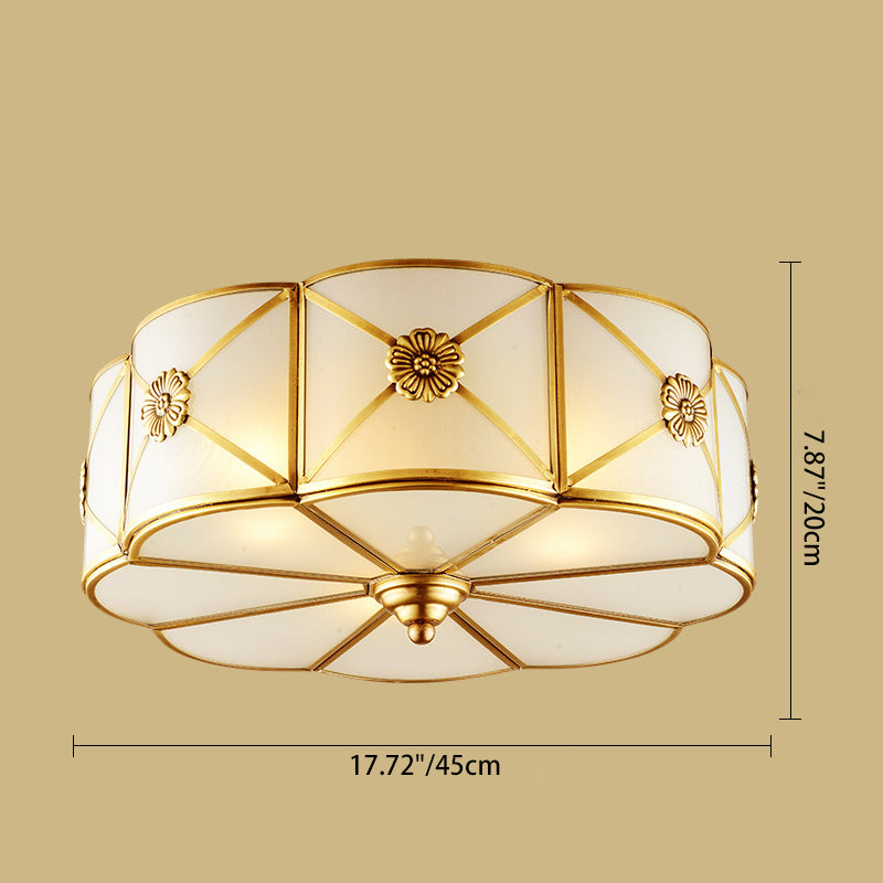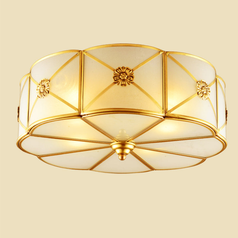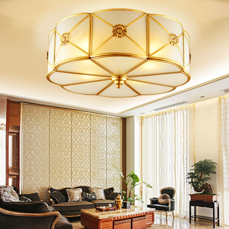 Traditional European Cylinder Copper Glass 3/4/6 Light Flush Mount Ceiling Light For Bedroom