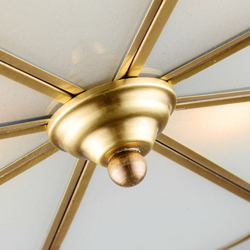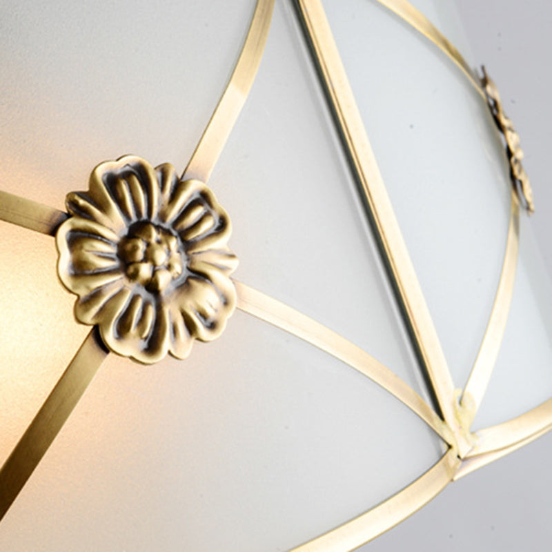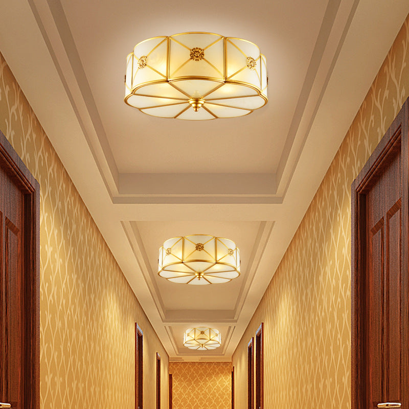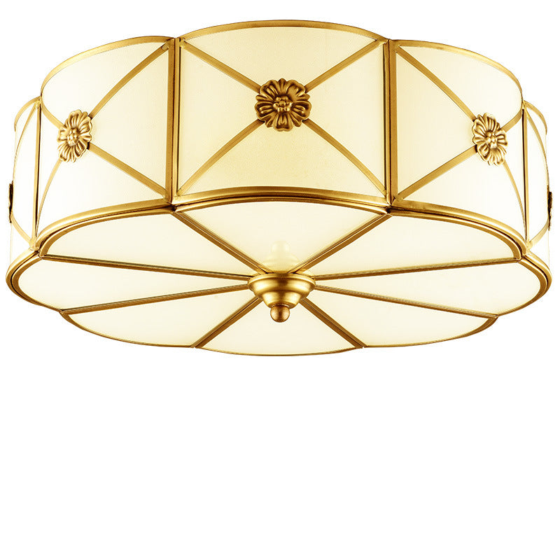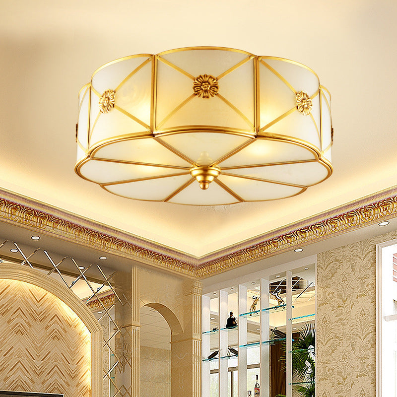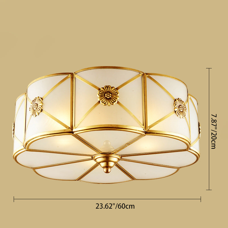 Traditional European Cylinder Copper Glass 3/4/6 Light Flush Mount Ceiling Light For Bedroom