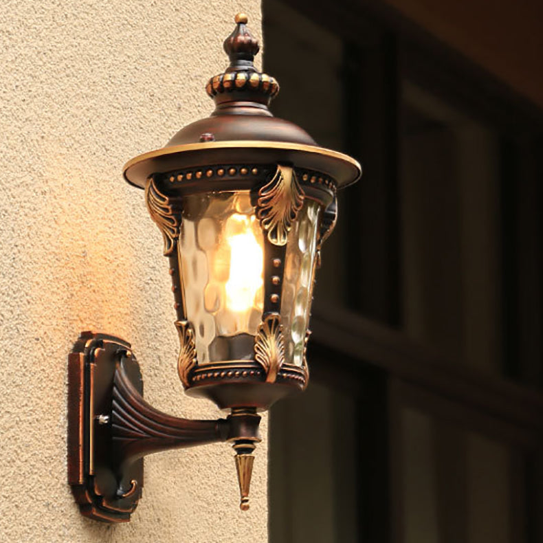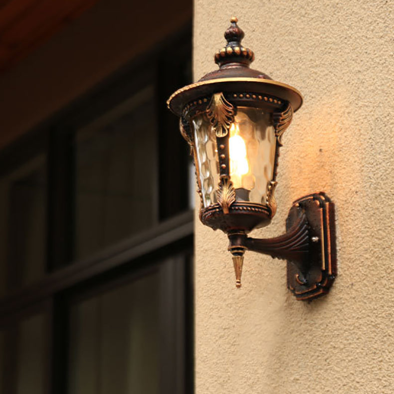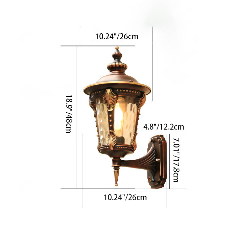 Traditional European Cylinder Quadrilateral Aluminum Glass 1-Light Wall Sconce Lamp For Outdoor Patio