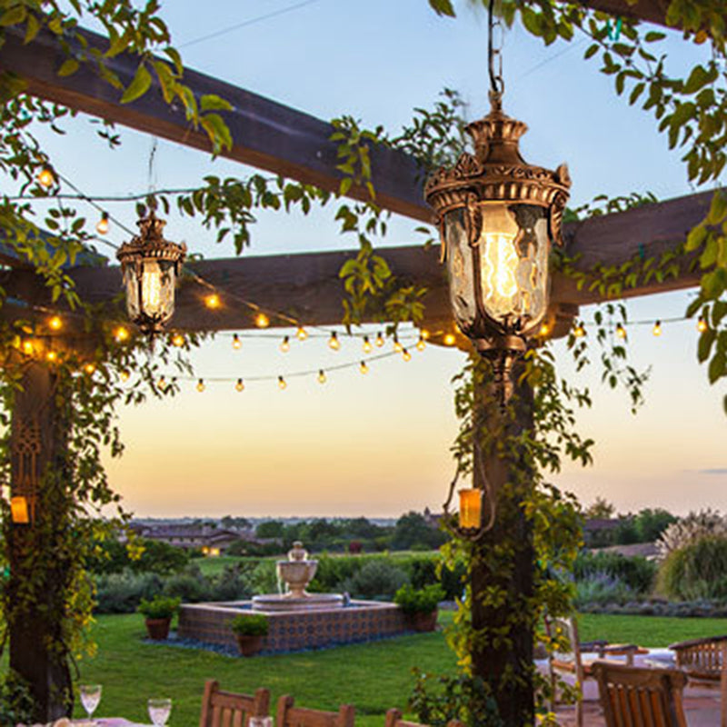 Traditional European Dome Conical Waterproof Aluminum Glass 1 - Light Pendant Light For Outdoor Patio