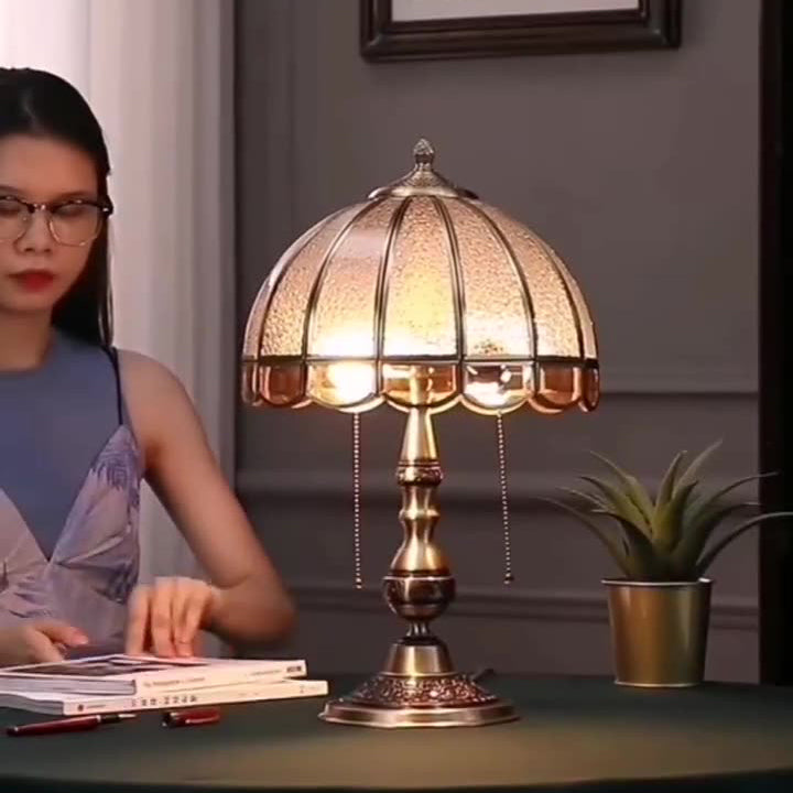 Traditional European Dome Copper Glass 2-Light Table Lamp For Bedroom