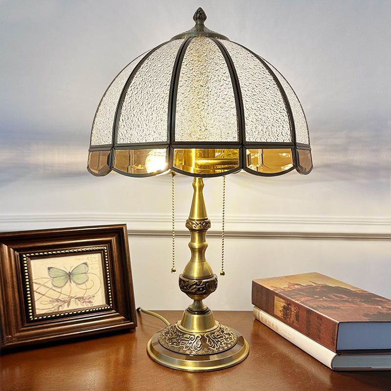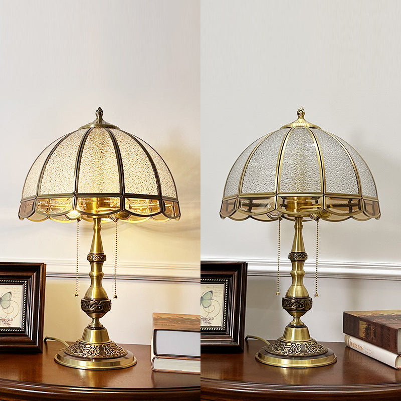 Traditional European Dome Copper Glass 2-Light Table Lamp For Bedroom