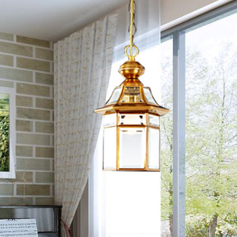Traditional European Dome House Shape Copper Glass Lampshade 1 - Light Pendant Light For Living Room
