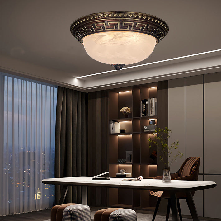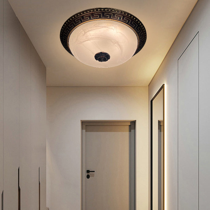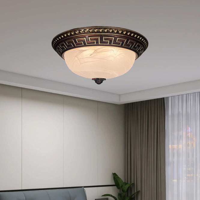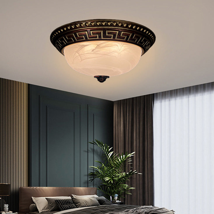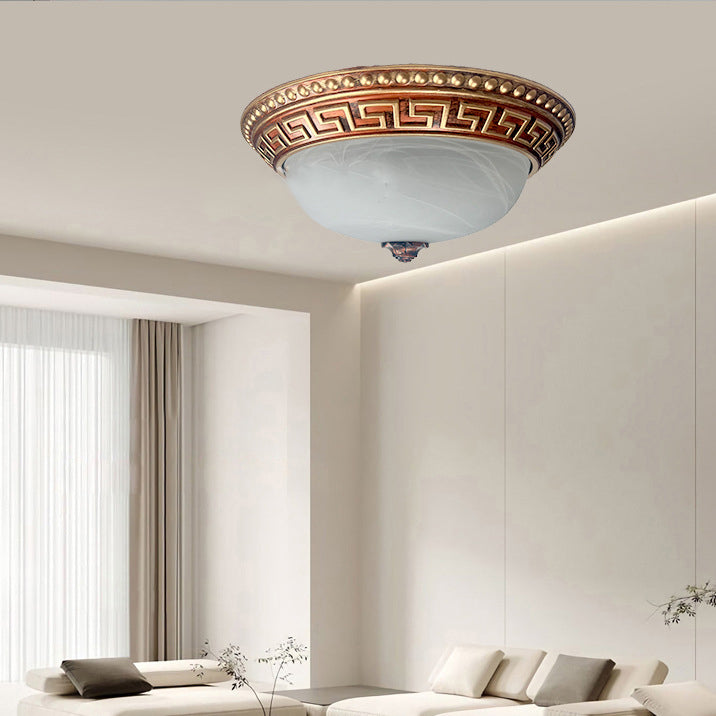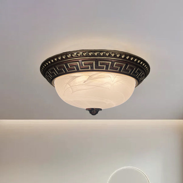 Traditional European Dome Plastic Glass 2-Light Flush Mount Ceiling Light For Bedroom