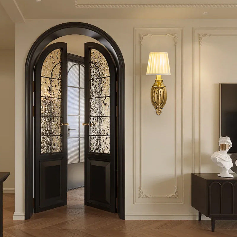 Traditional European Drum Copper Fabric 1/2-Light Wall Sconce Lamp For Living Room