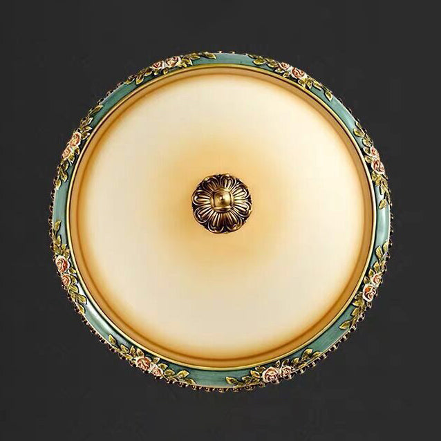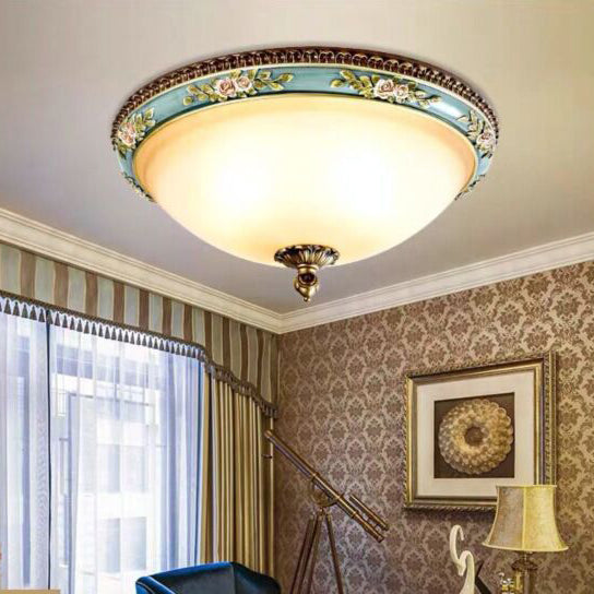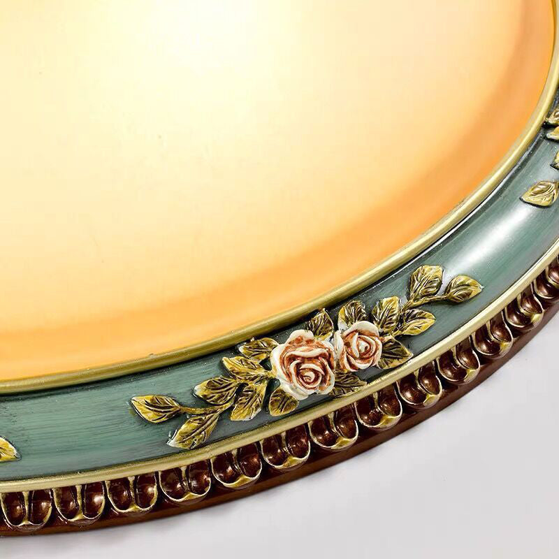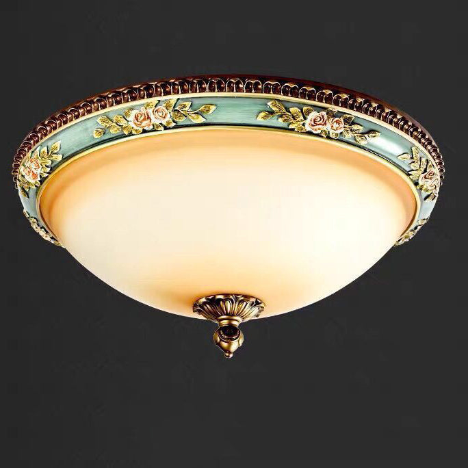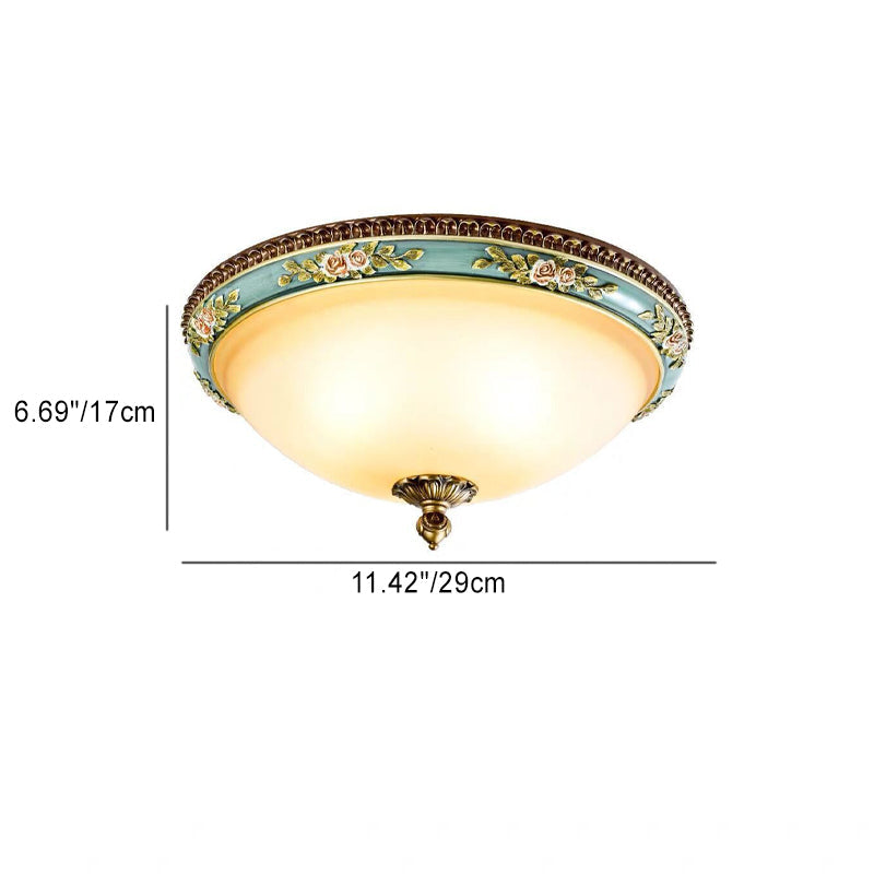 Traditional European Engraved Resin Frame Glass Dome Shade 2-Light Flush Mount Ceiling Light For Living Room