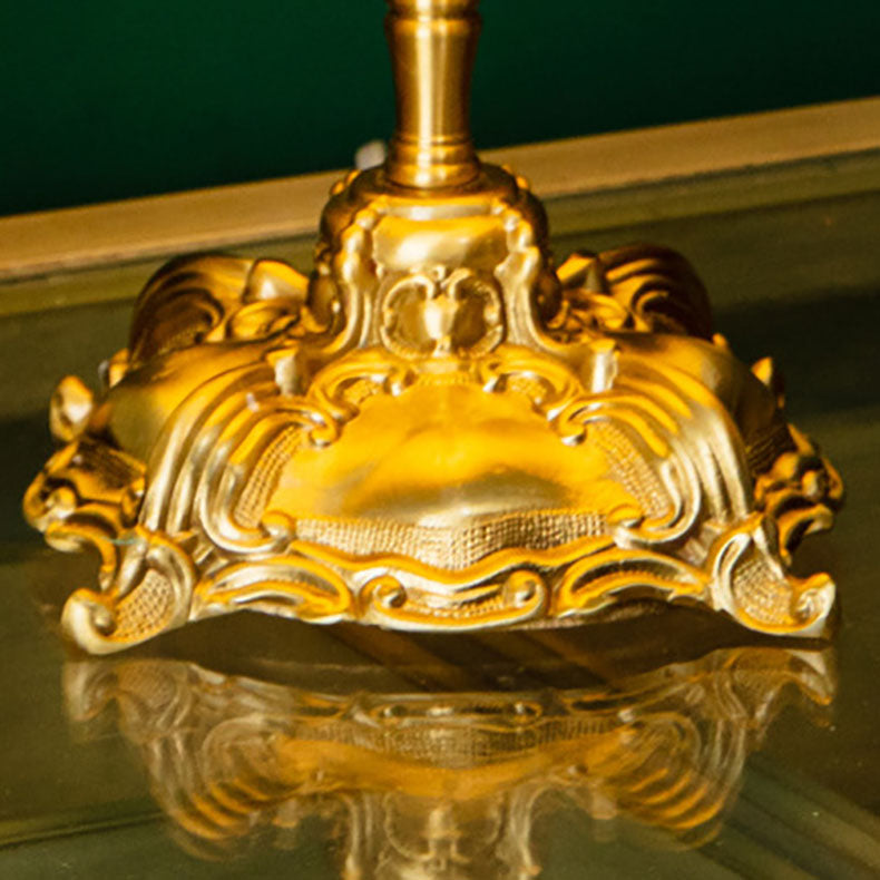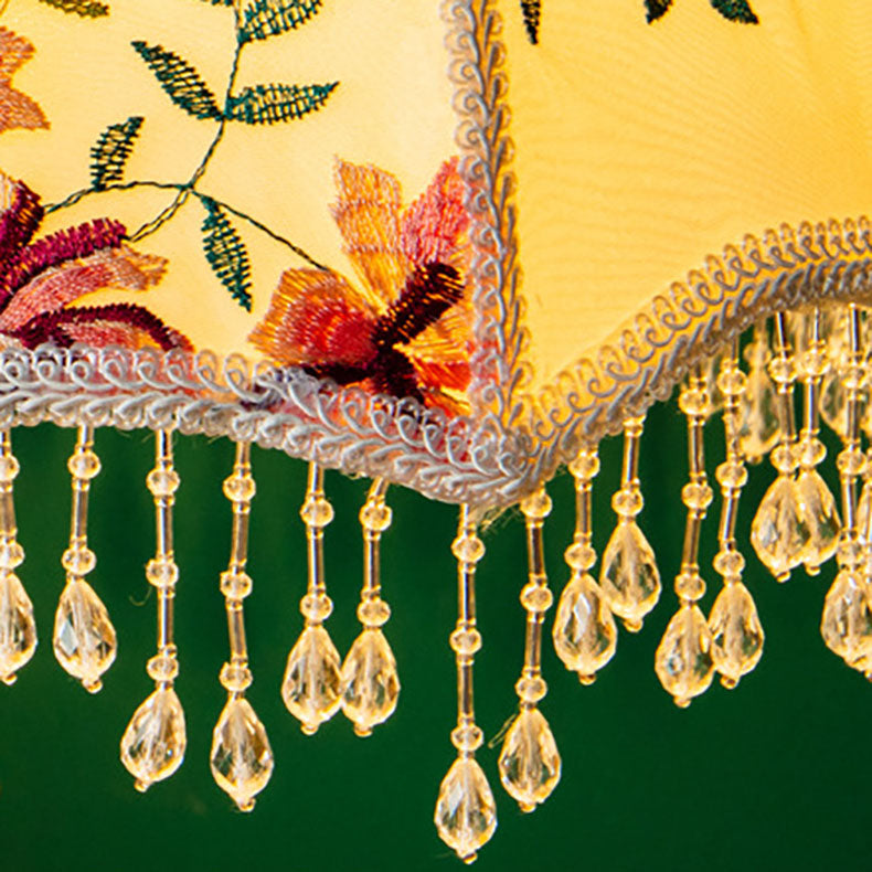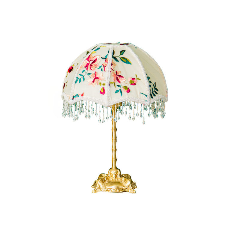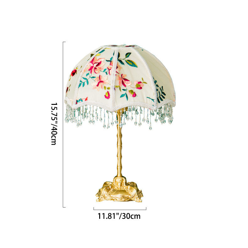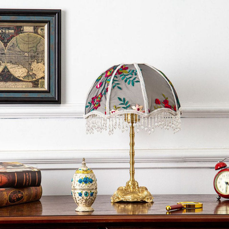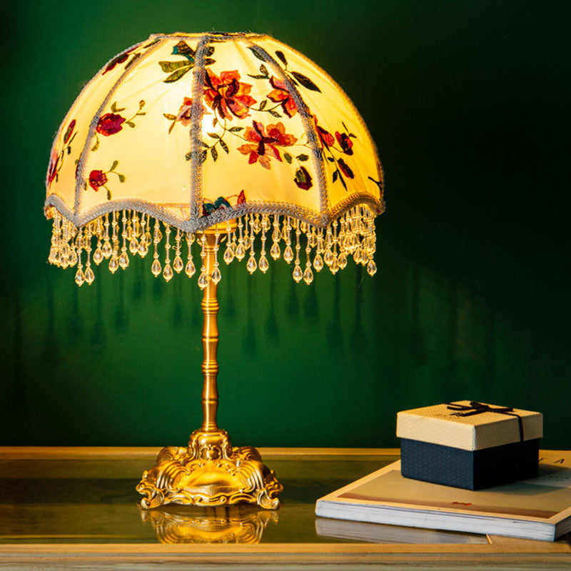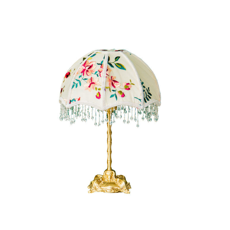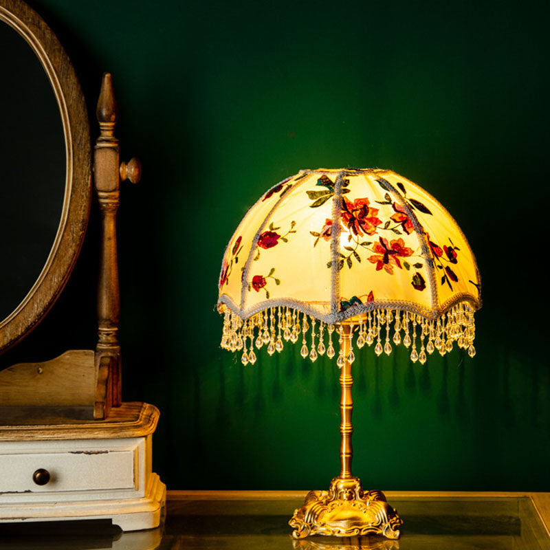 Traditional European Fabric Copper Dome Flower 1-Light Table Lamp For Bedside