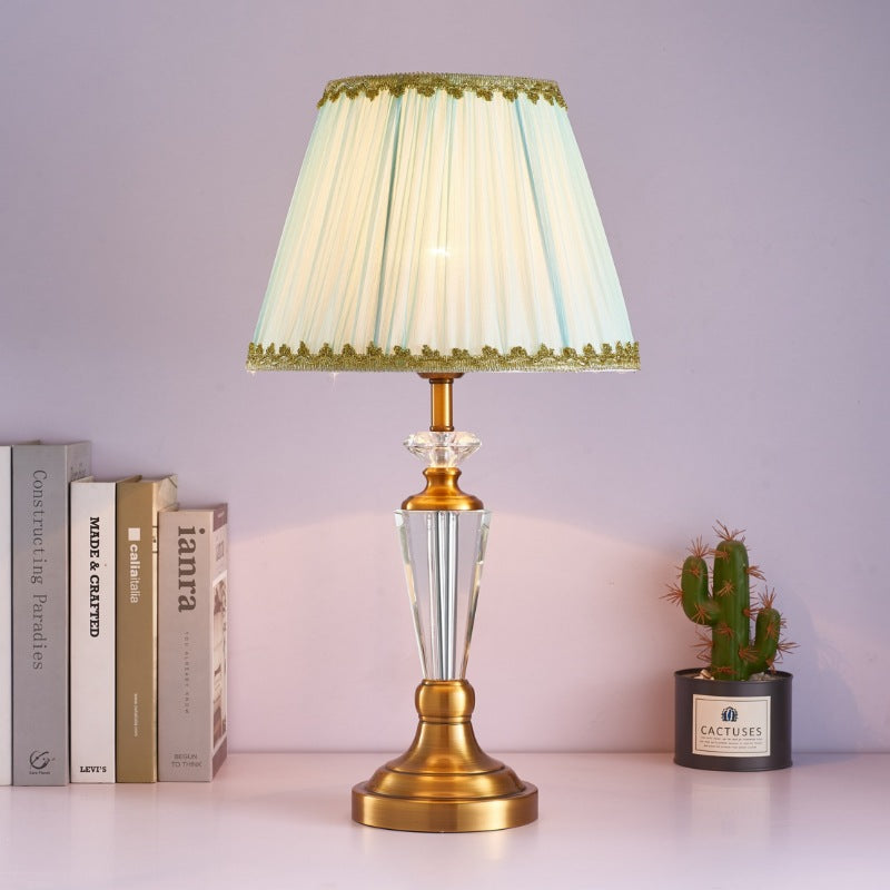 Traditional European Fabric Lampshade Crystal Copper Base 1 - Light Table Lamp For Living Room