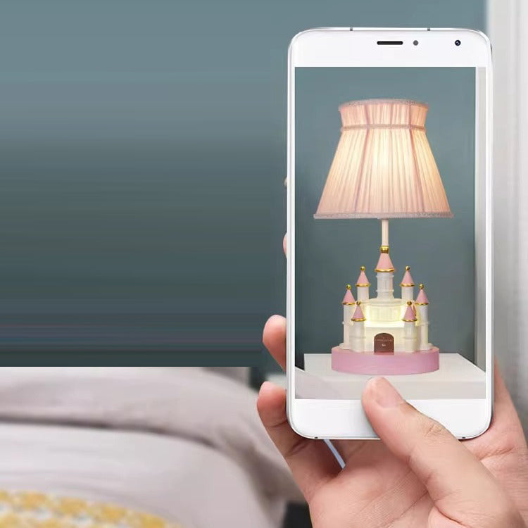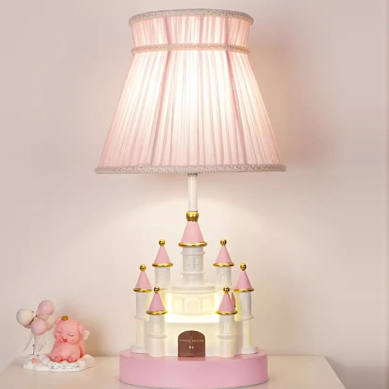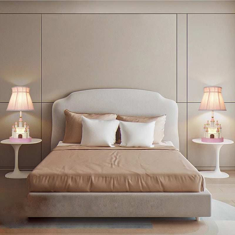 Traditional European Fabric Pink Dream Castle Resin Base 1-Light Table Lamp For Bedroom