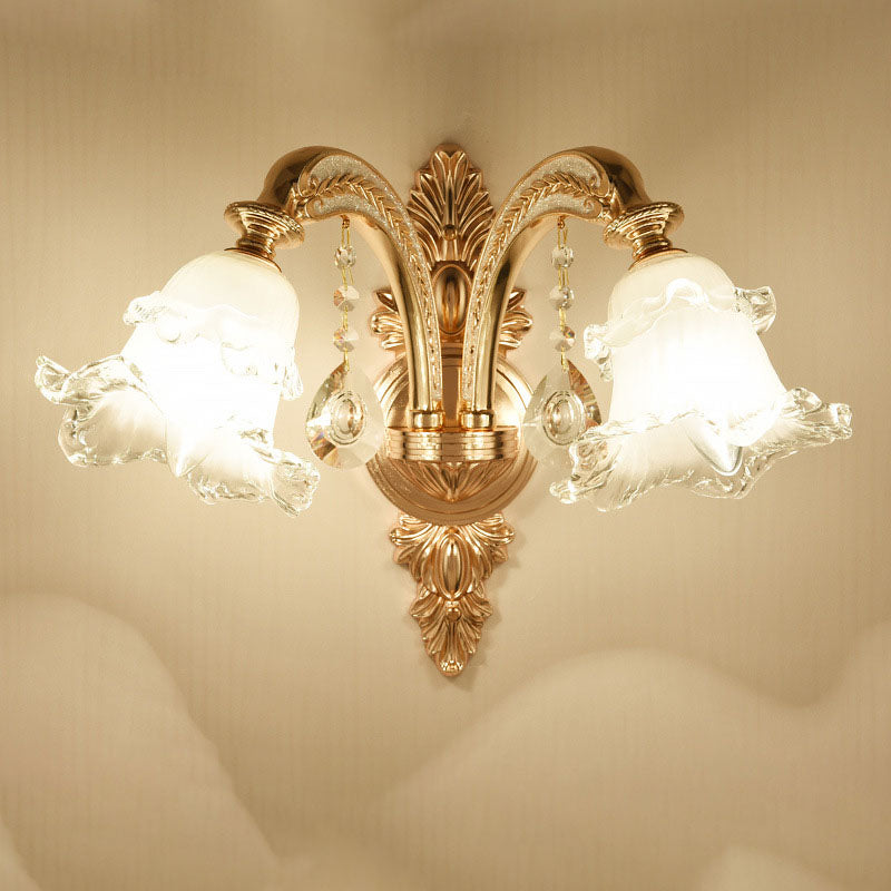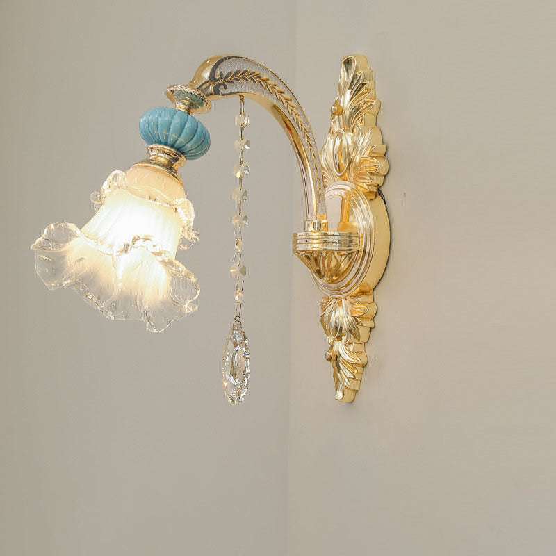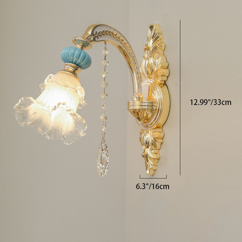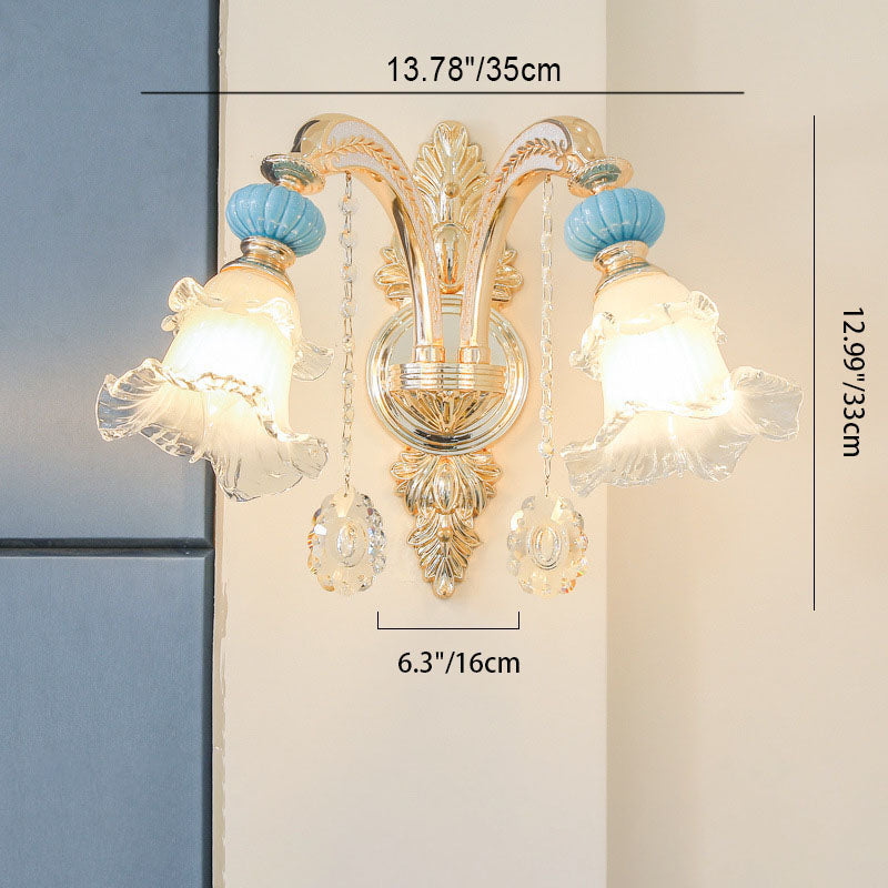 Traditional European Floral Alloy Ceramic Glass 1/2 Light Wall Sconce Lamp For Bedroom
