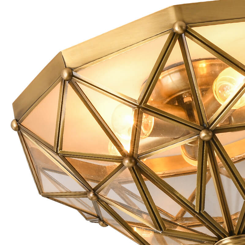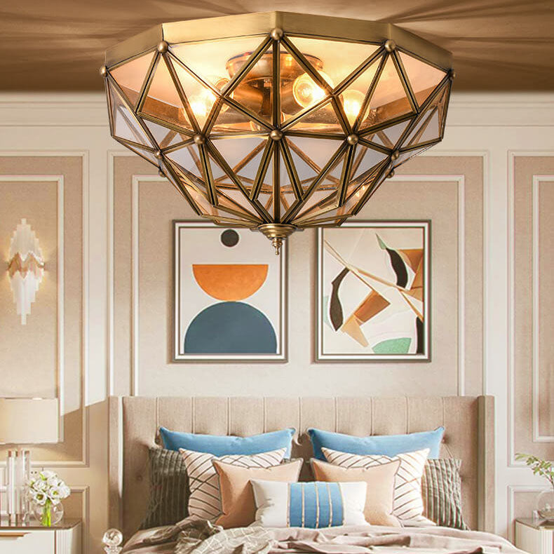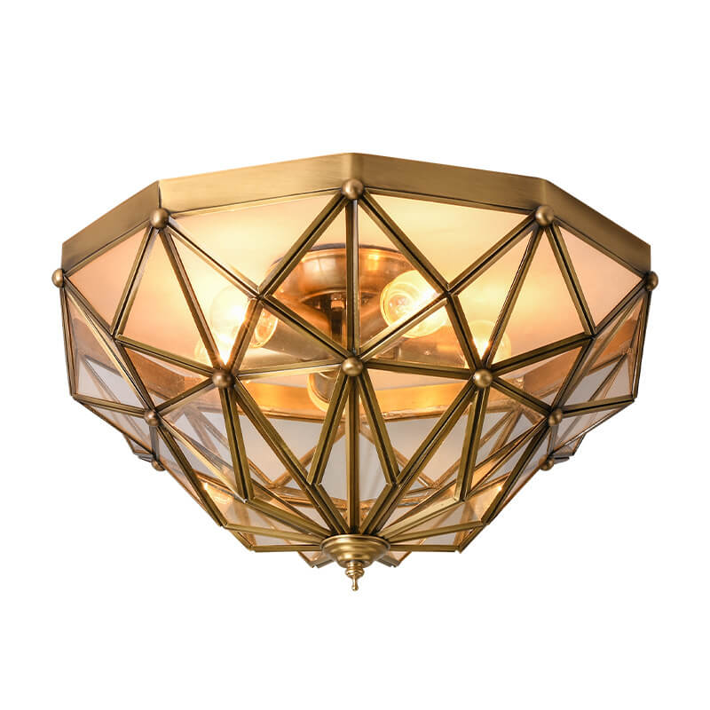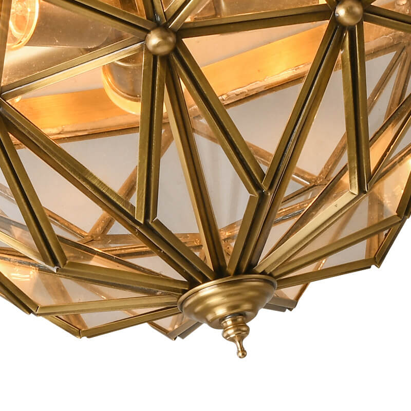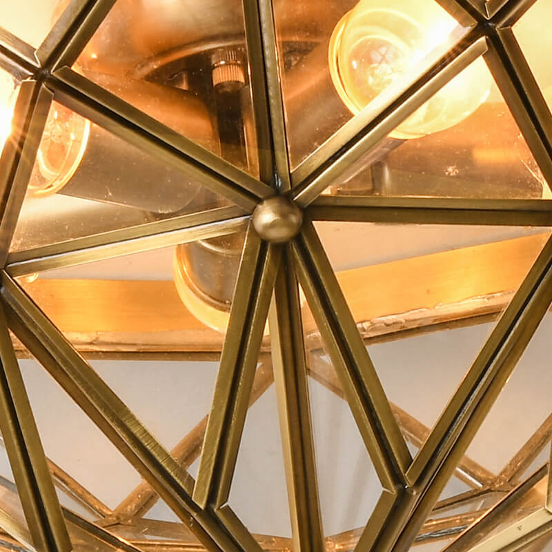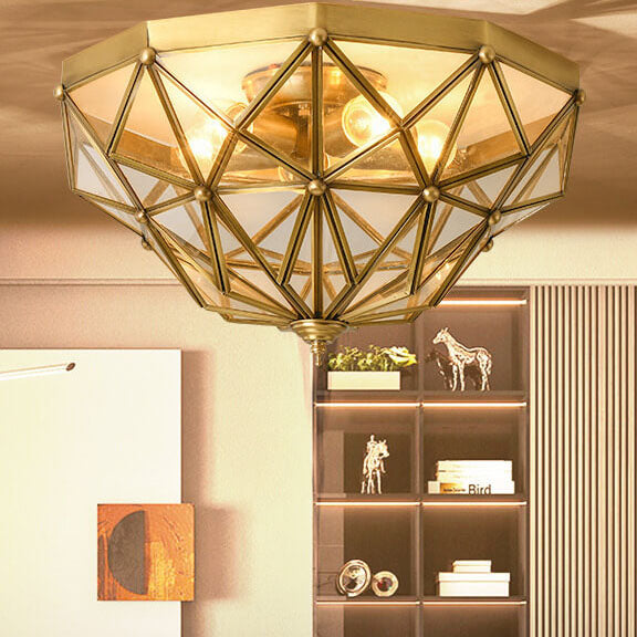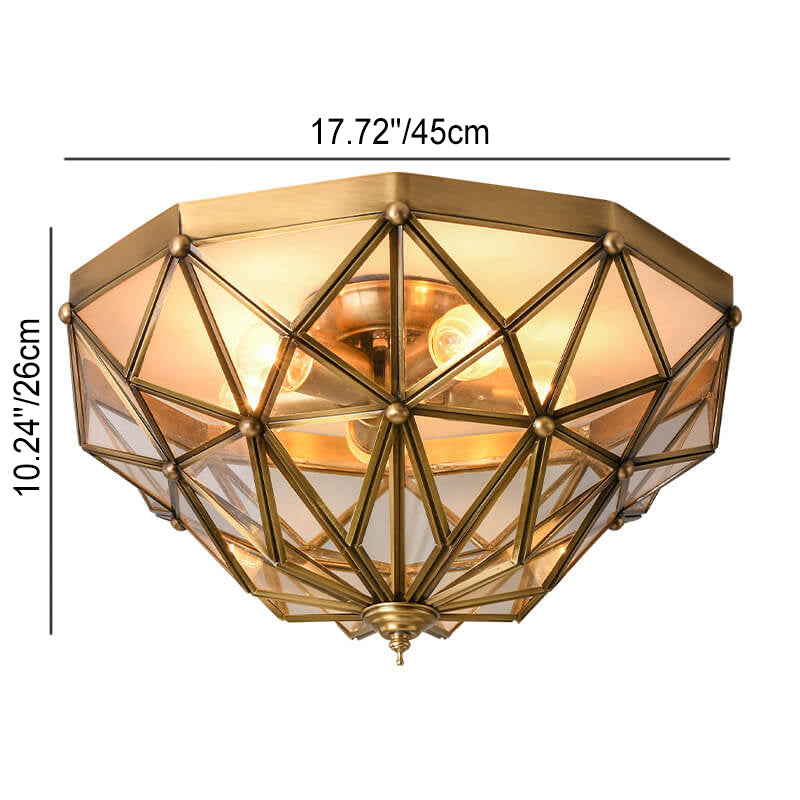 Traditional European Half Round Geometric Copper Glass 5-Light Flush Mount Ceiling Light