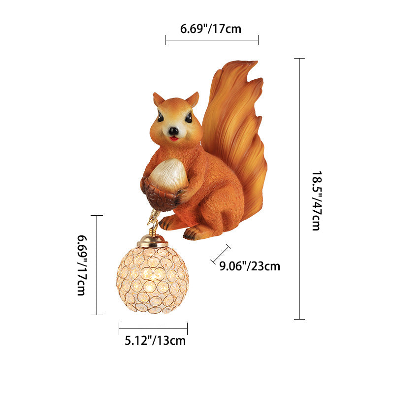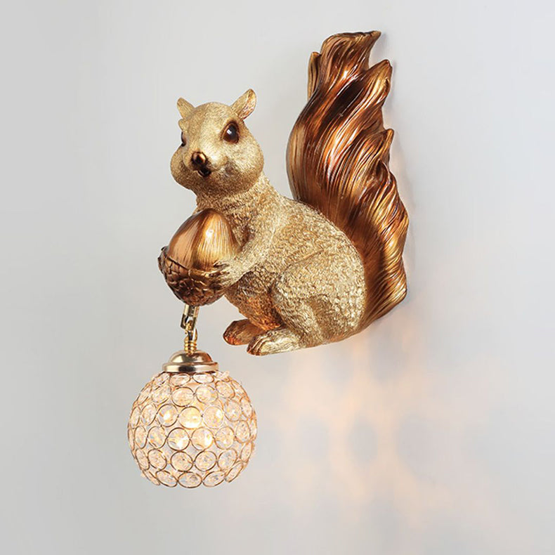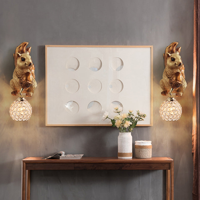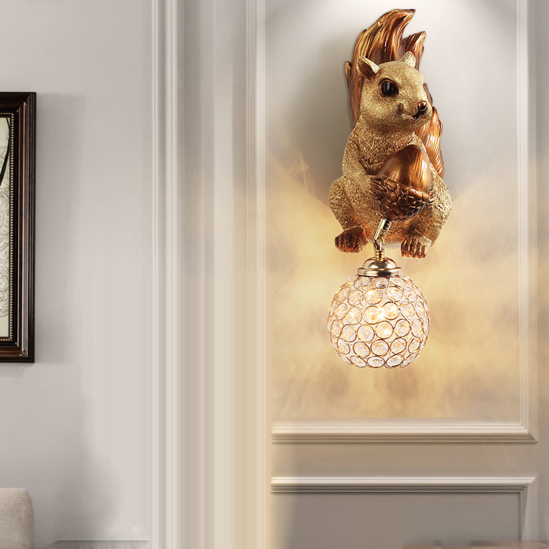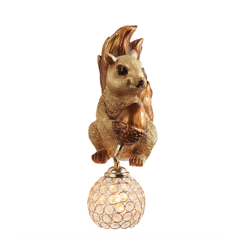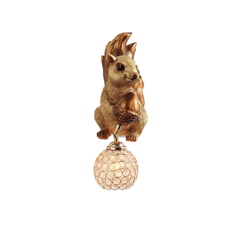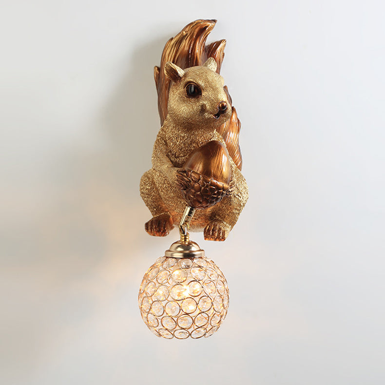 Traditional European Kids Squirrel Ball Crystal Resin 1-Light Wall Sconce Lamp For Bedside