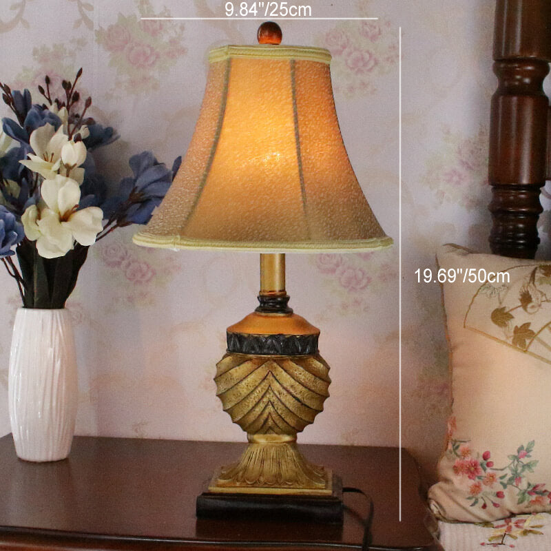 Traditional European Orb Stripe Carved Base Resin Fabric 1-Light Table Lamp For Bedroom