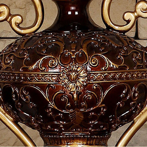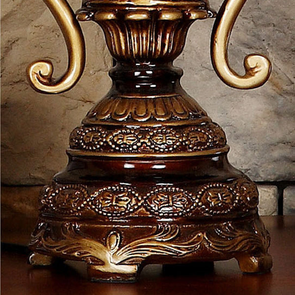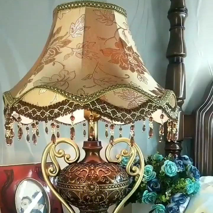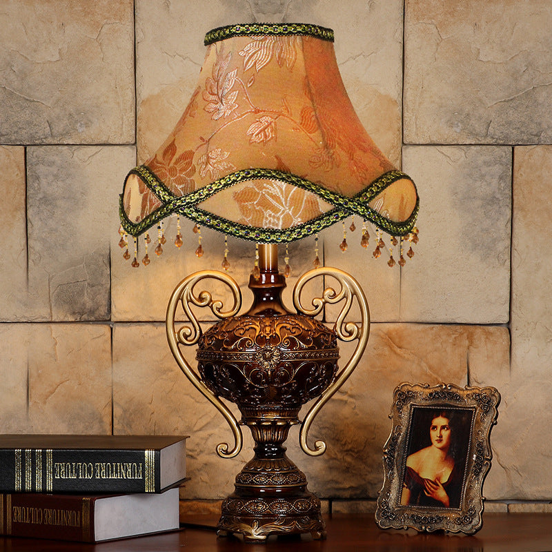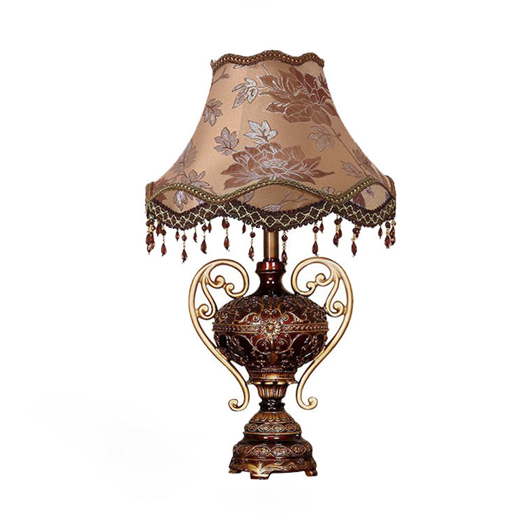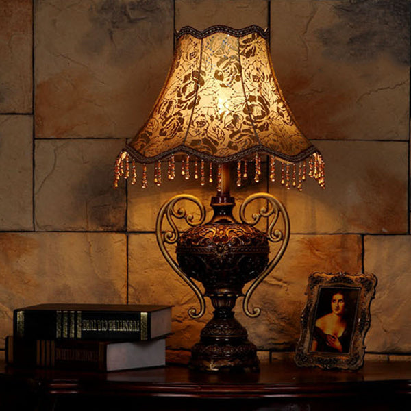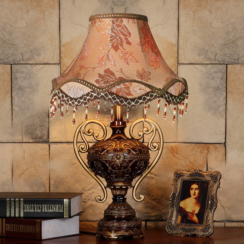 Traditional European Palace Lace Fabric Tassel Shade Carved Resin Base 1-Light Table Lamp For Study