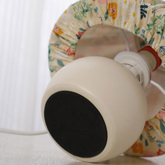 Traditional European Pastoral Floral Pattern Fabric Shade Ceramic Round Base 1-Light Table Lamp For Bedroom