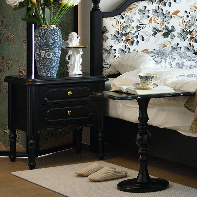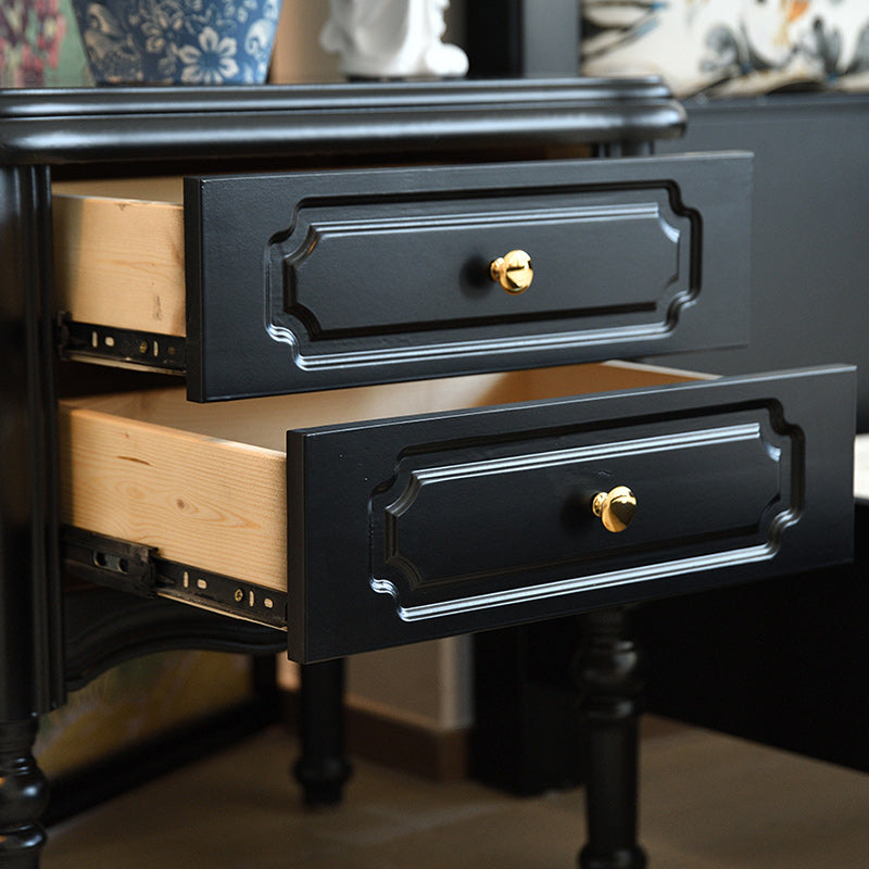 Traditional European Rectangular Solid Wood Nightstand 2-Drawer For Bedroom