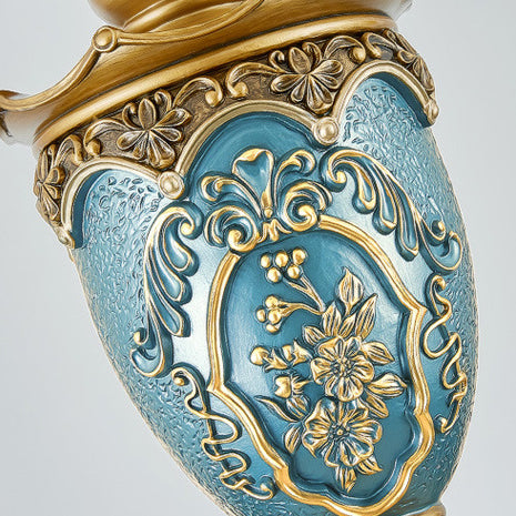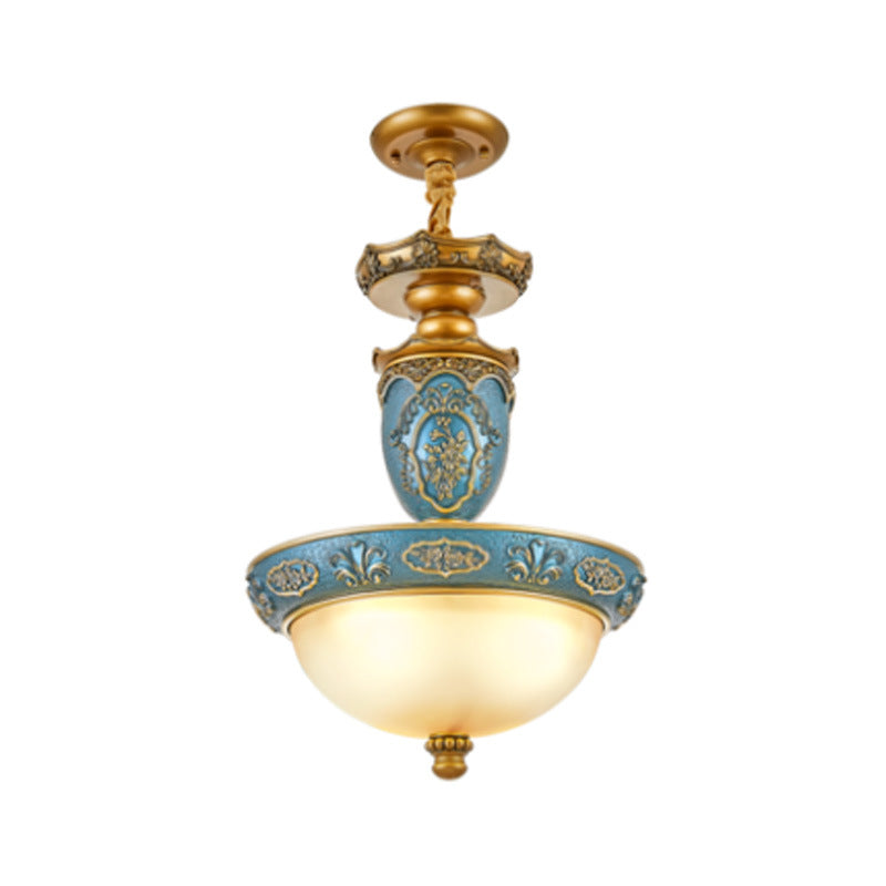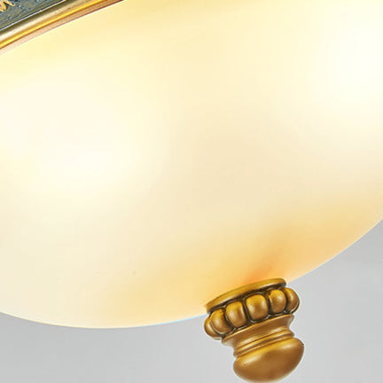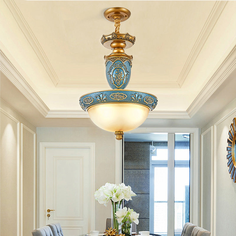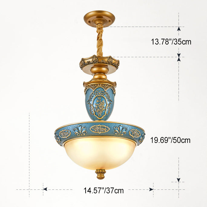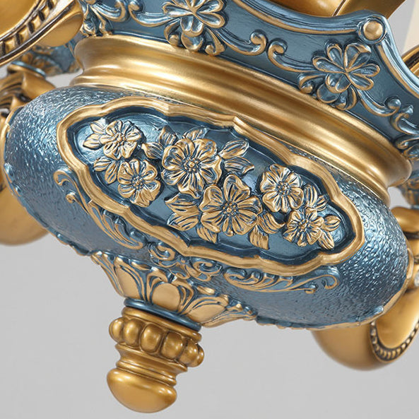 Traditional European Resin Iron Glass Column Round Carved 3-Light Chandeliers For Dining Room