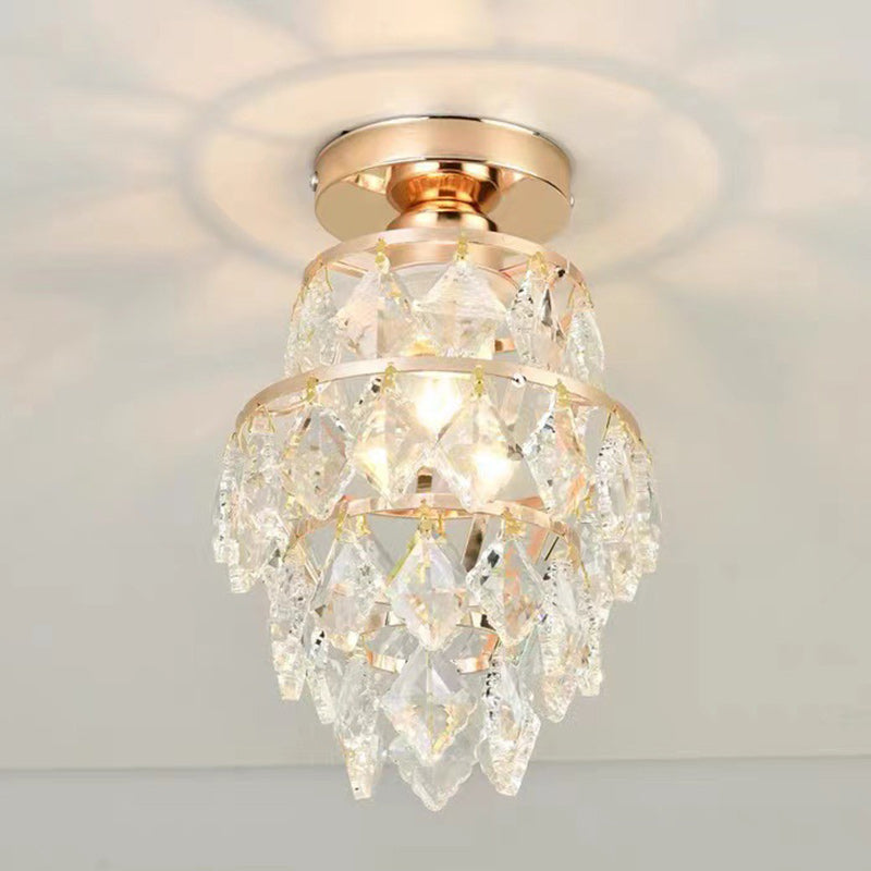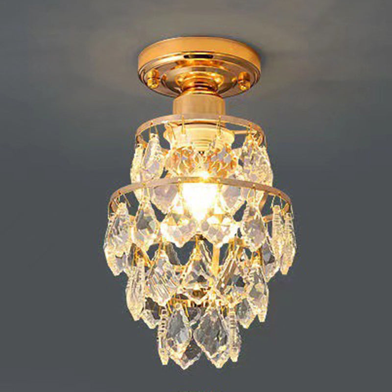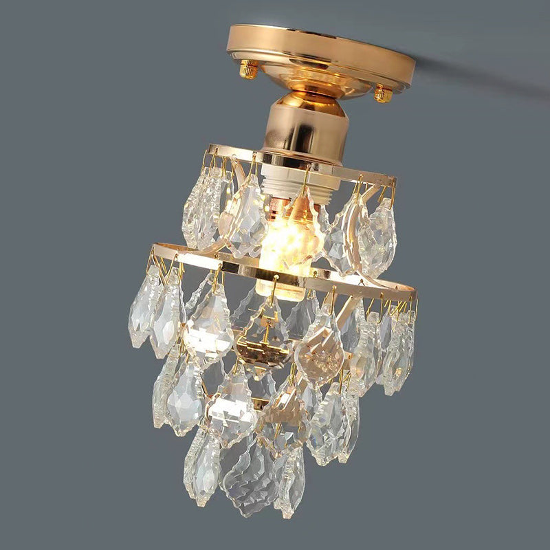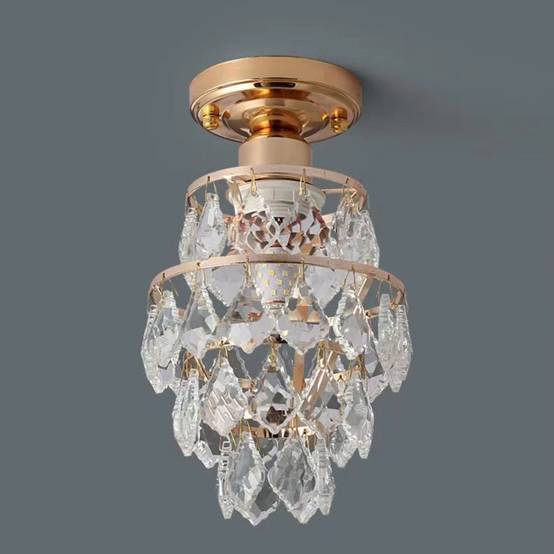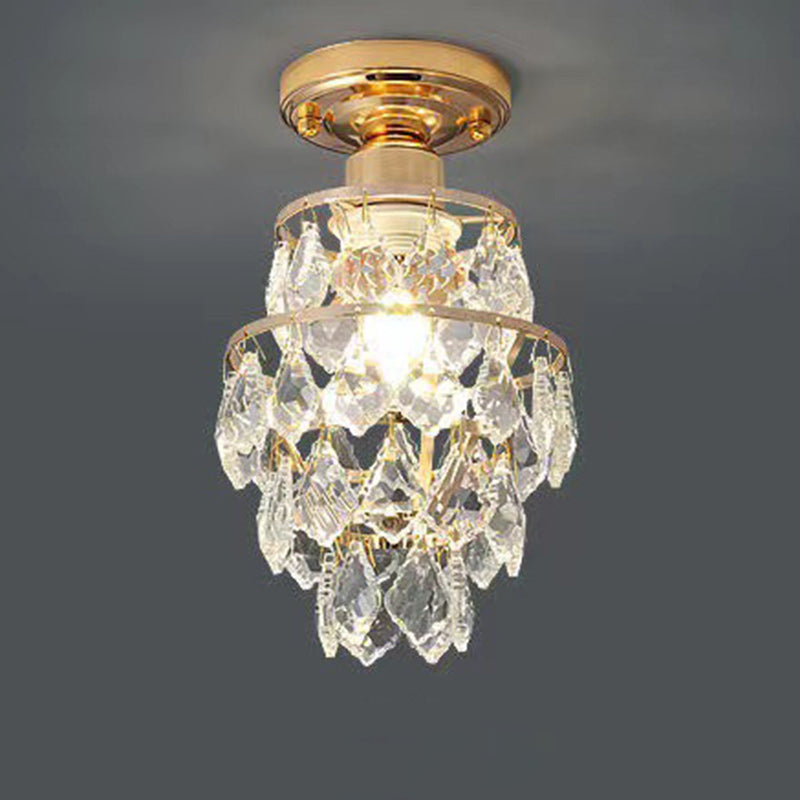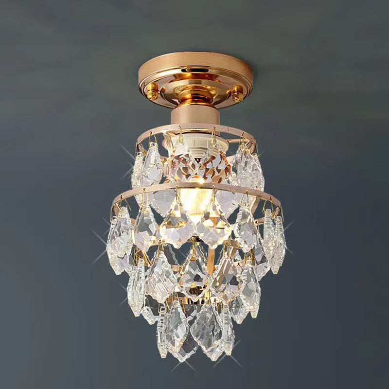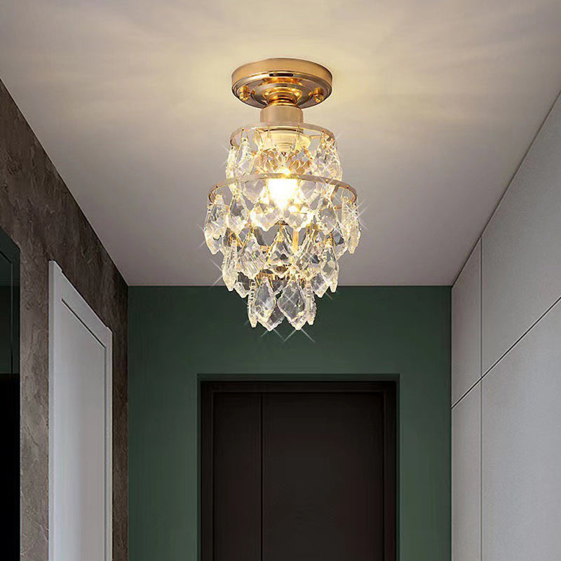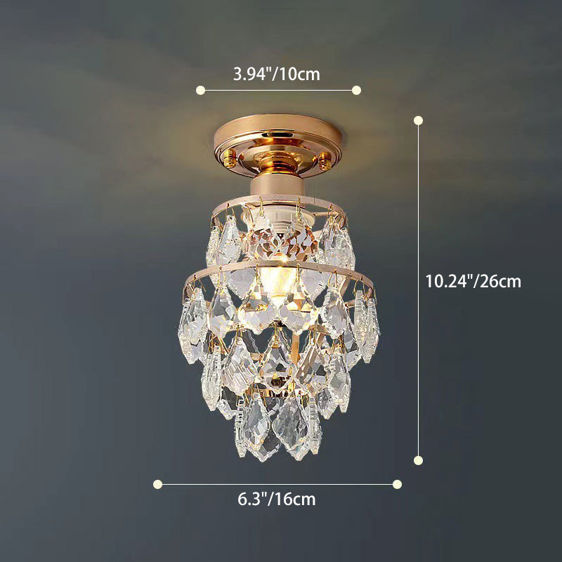 Traditional European Round Metal Frame Crystal Shade 1-Light Semi-Flush Mount Ceiling Light For Hallway