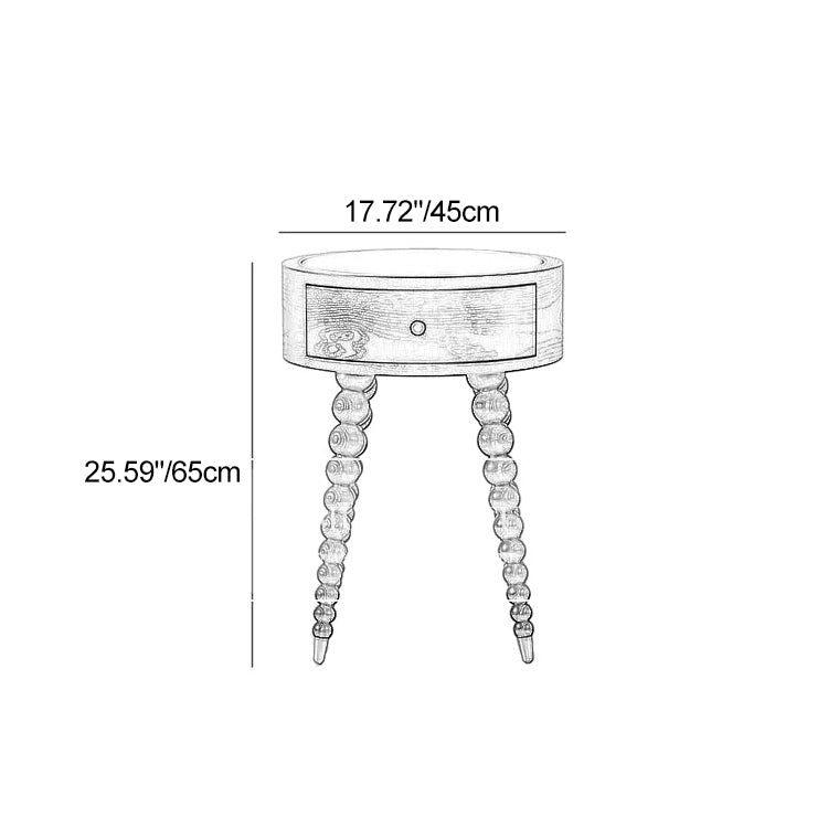 Traditional European Round Walnut Wood Grain Roman Column Base Nightstand 1-Drawer For Bedroom