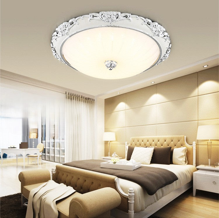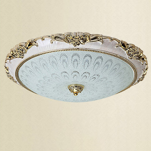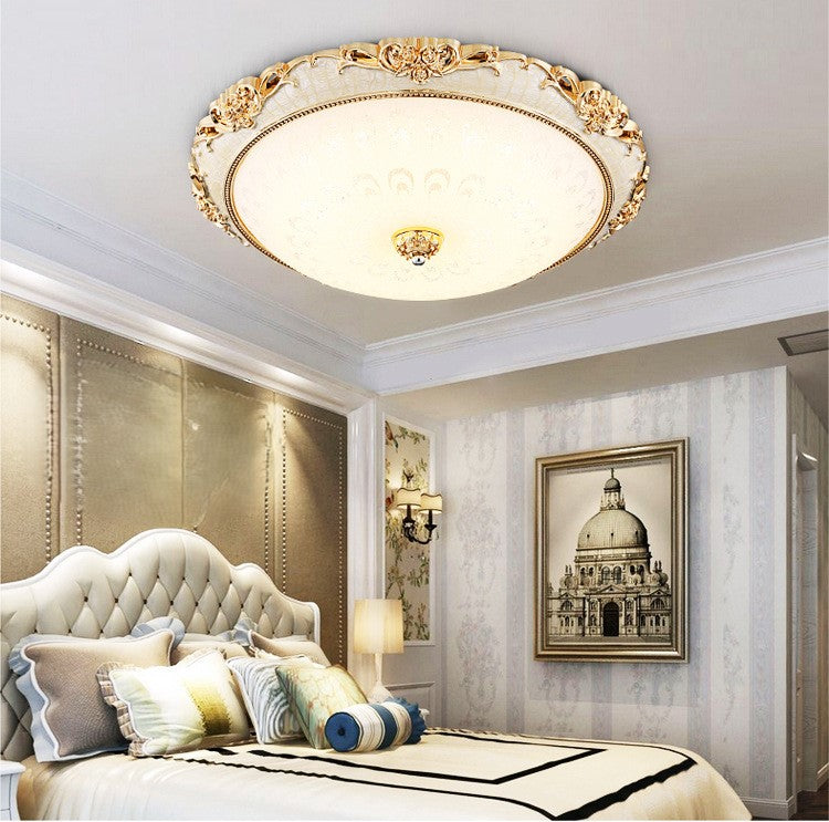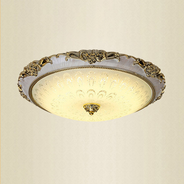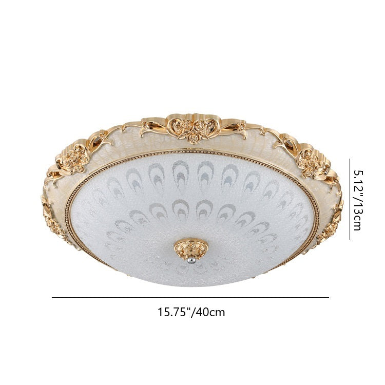 Traditional European Semicircle Shell Pattern Rose Pattern Hardware Glass LED Flush Mount Ceiling Light For Bedroom