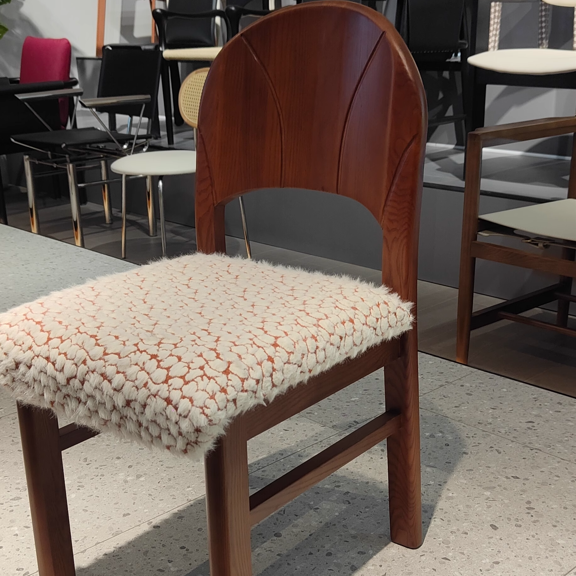 Traditional French Arc Square Jacquard Ash Dining Chair Backrest Armless For Dining Room