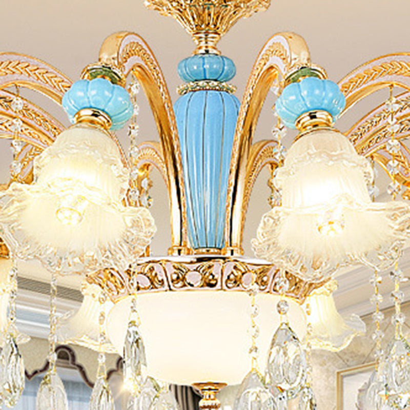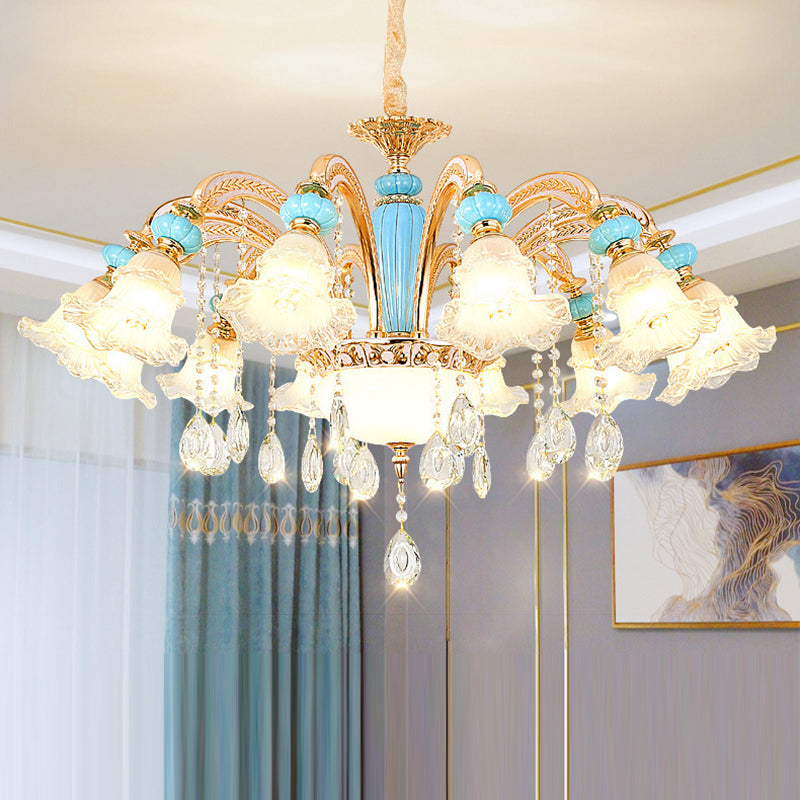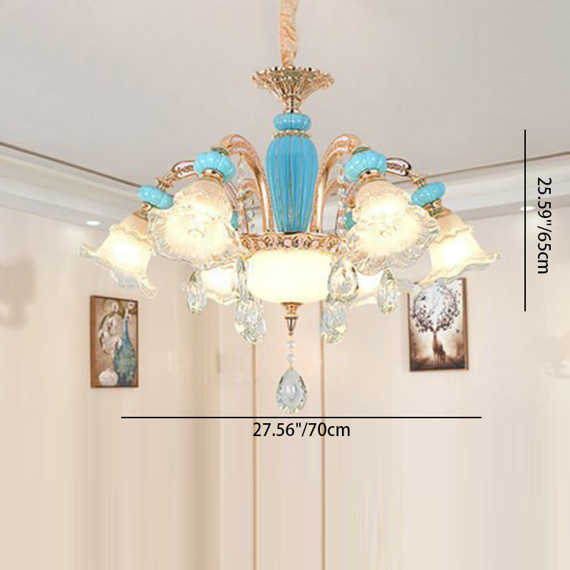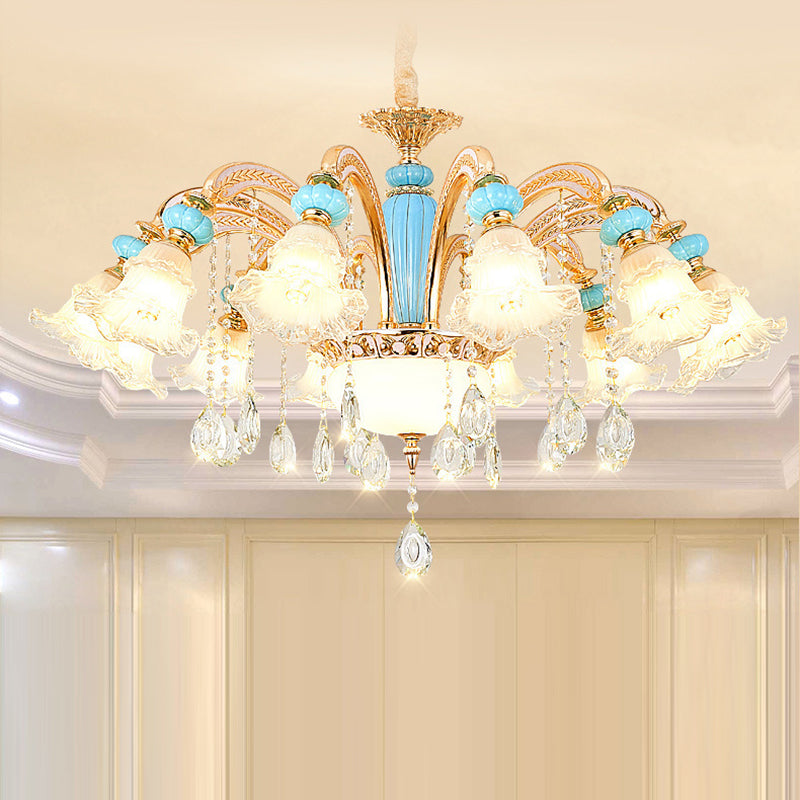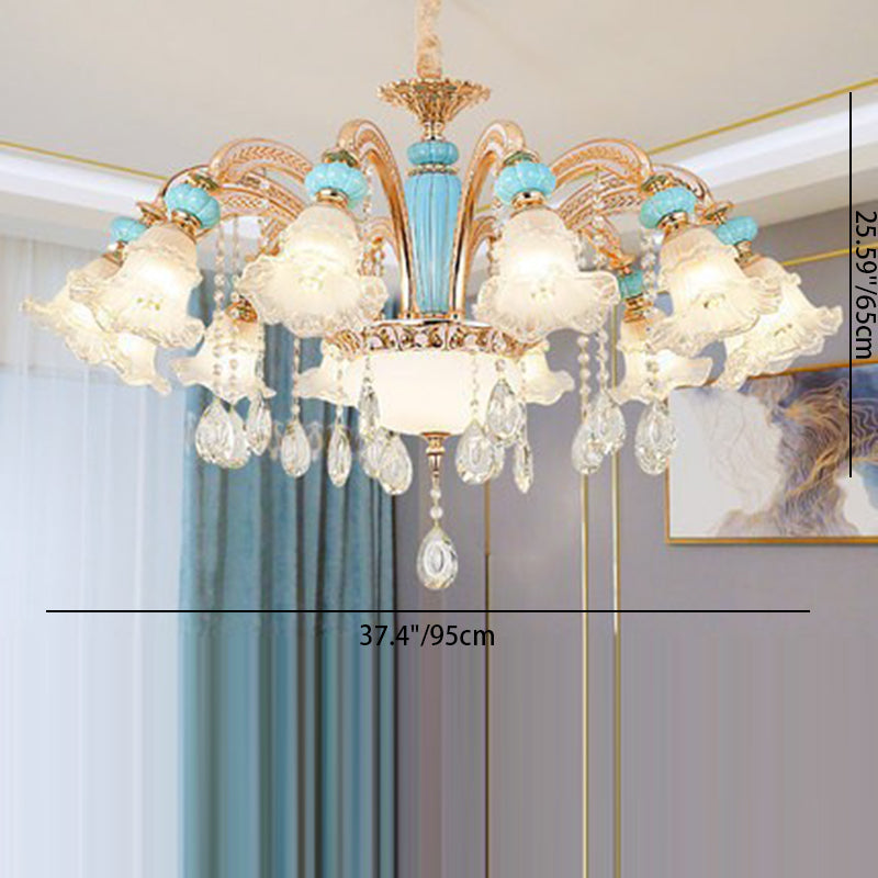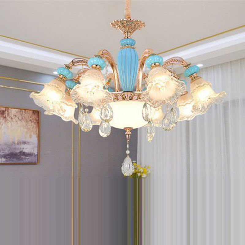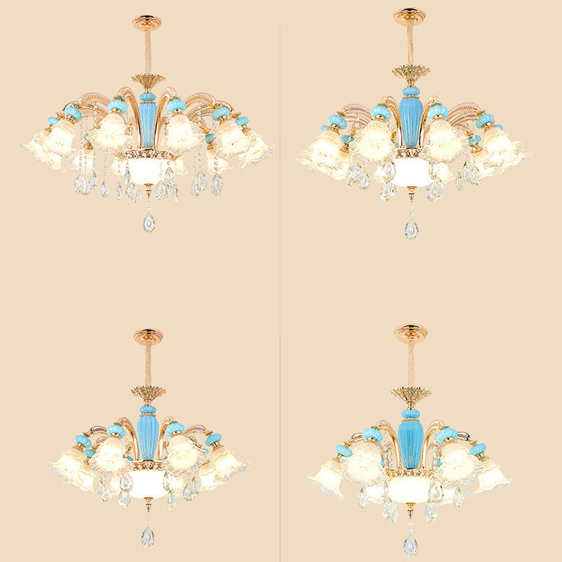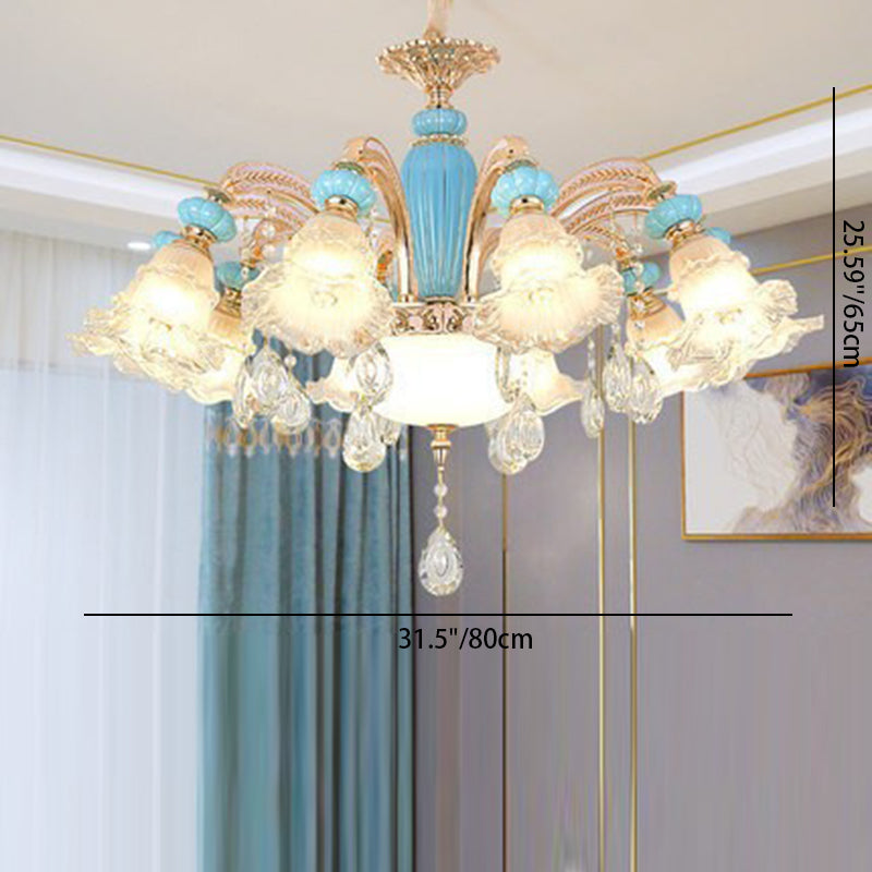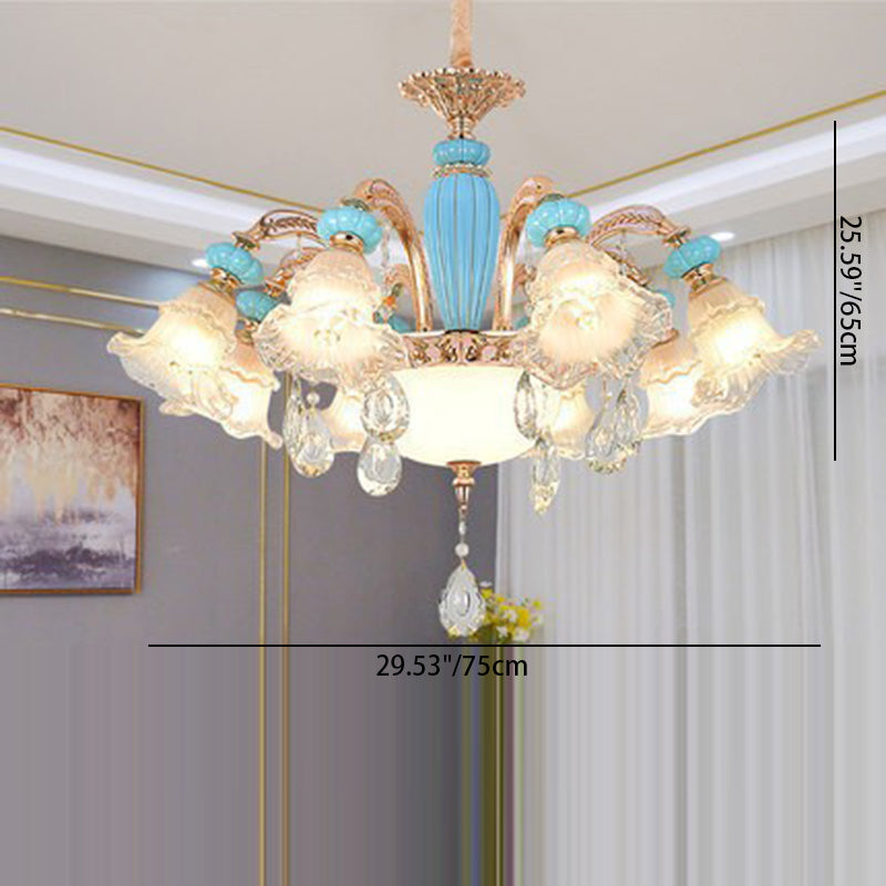Traditional French Branch Round Flower Glass Ceramic Zinc 6/8/10/12 Light Chandelier For Living Room