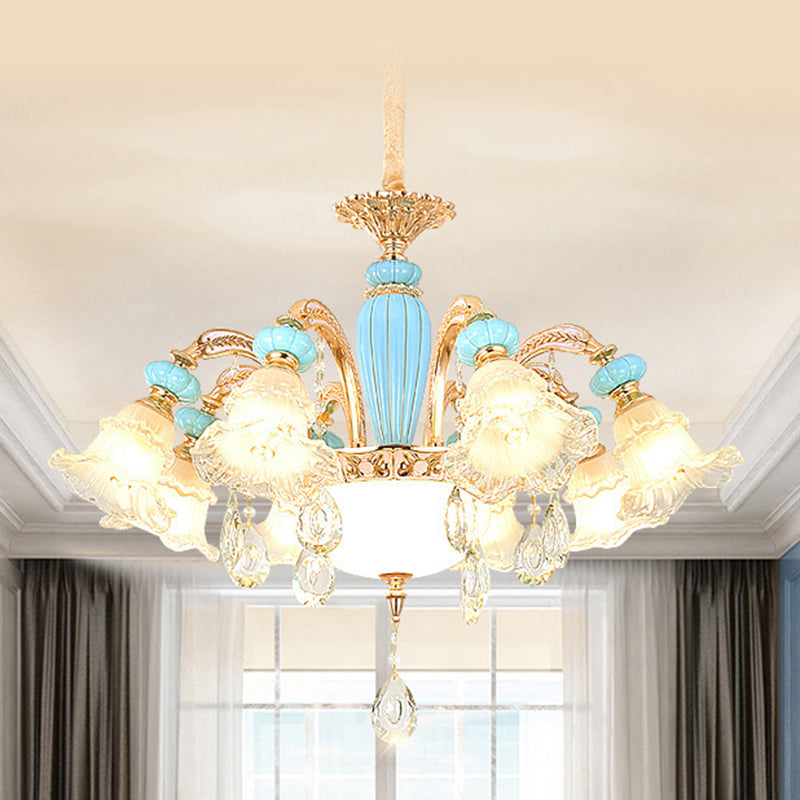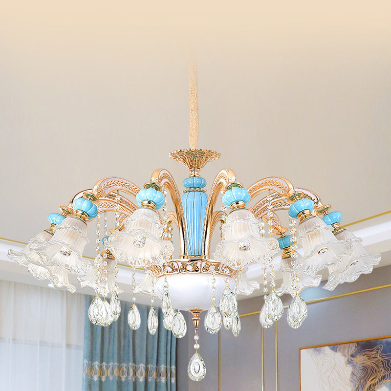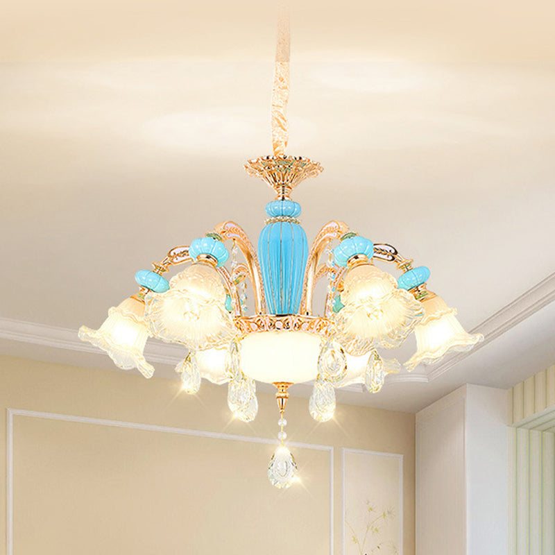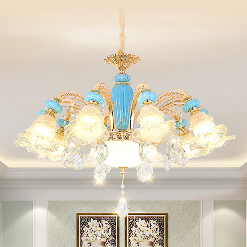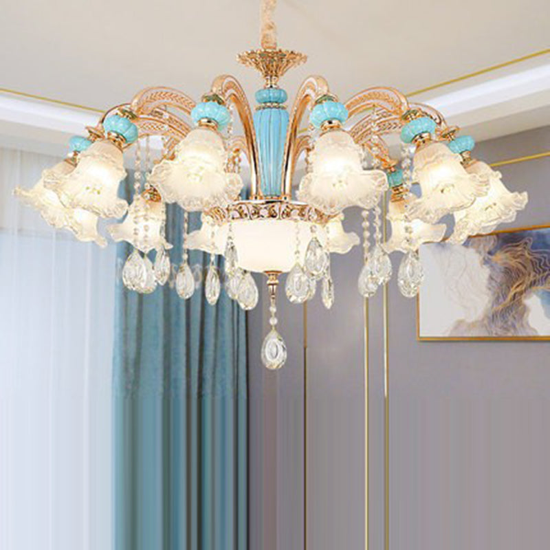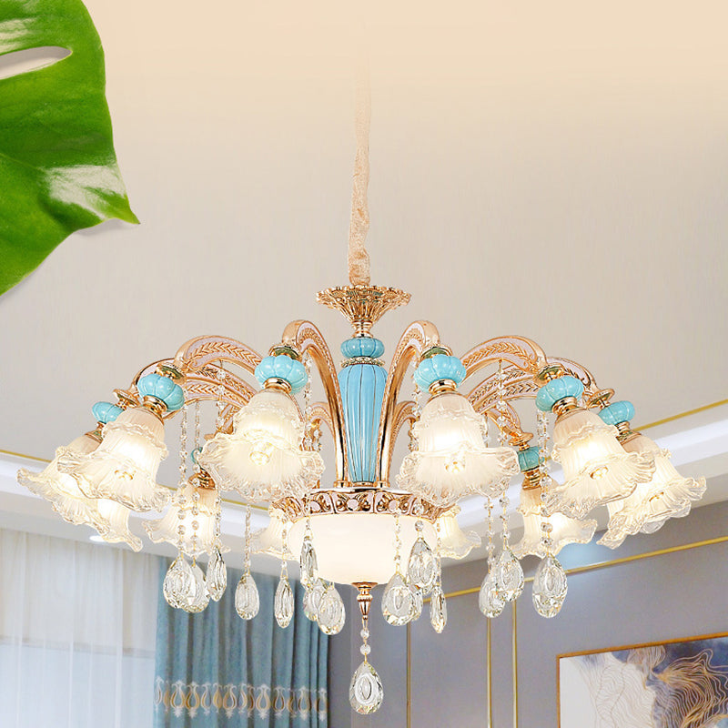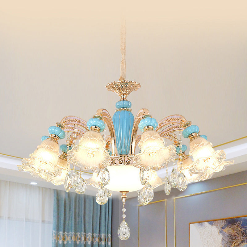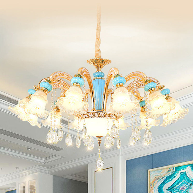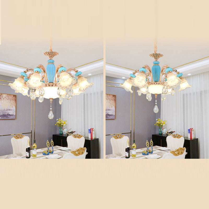 Traditional French Branch Round Flower Glass Ceramic Zinc 6/8/10/12 Light Chandelier For Living Room