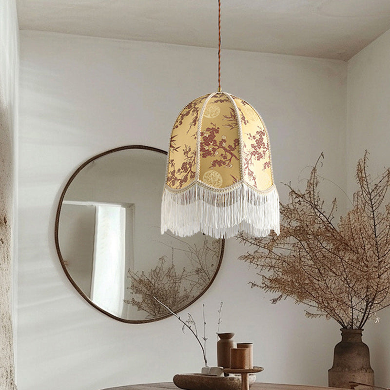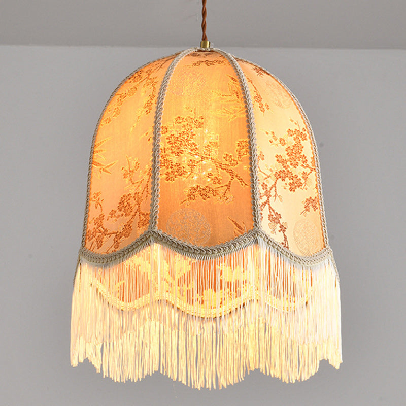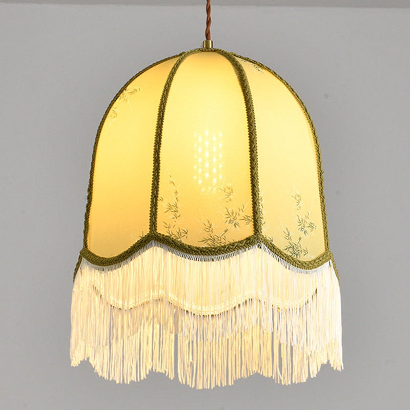 Traditional French Iron Fabric Dome Tassel Floral Embroidery 1-Light Pendant Light For Dining Room