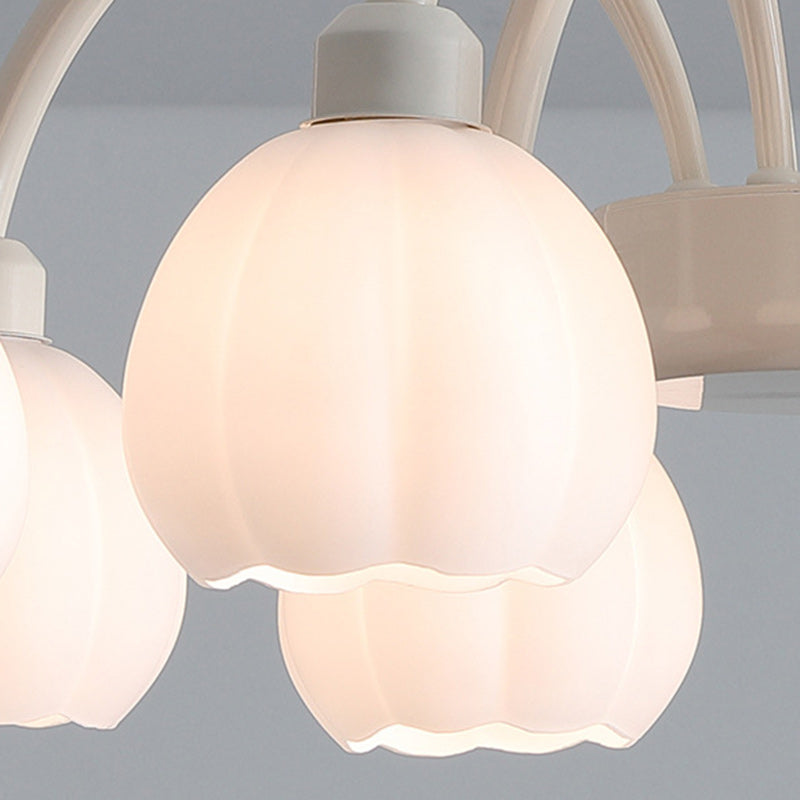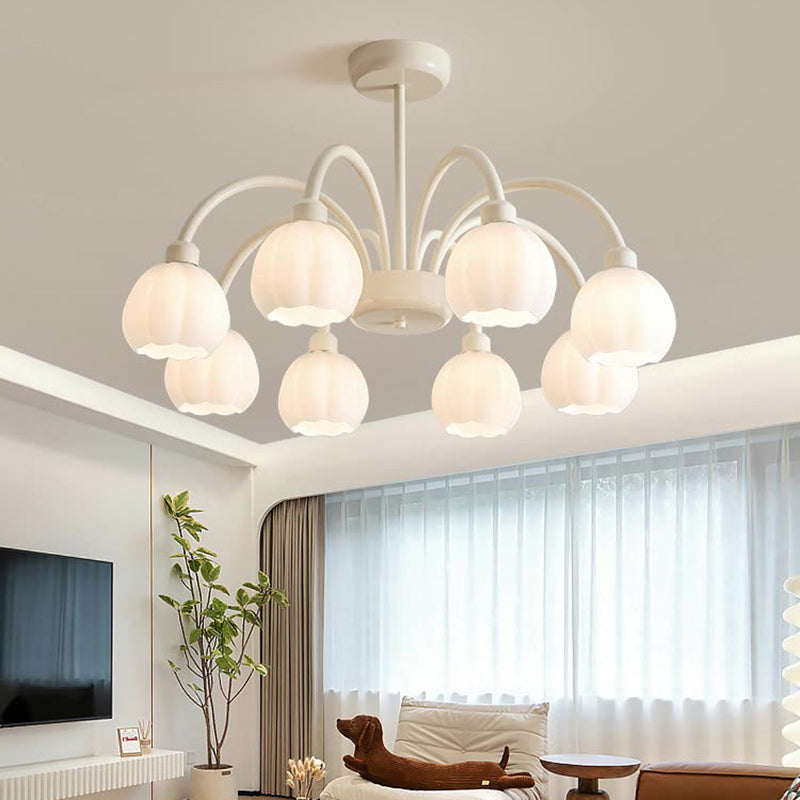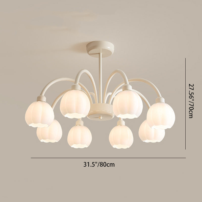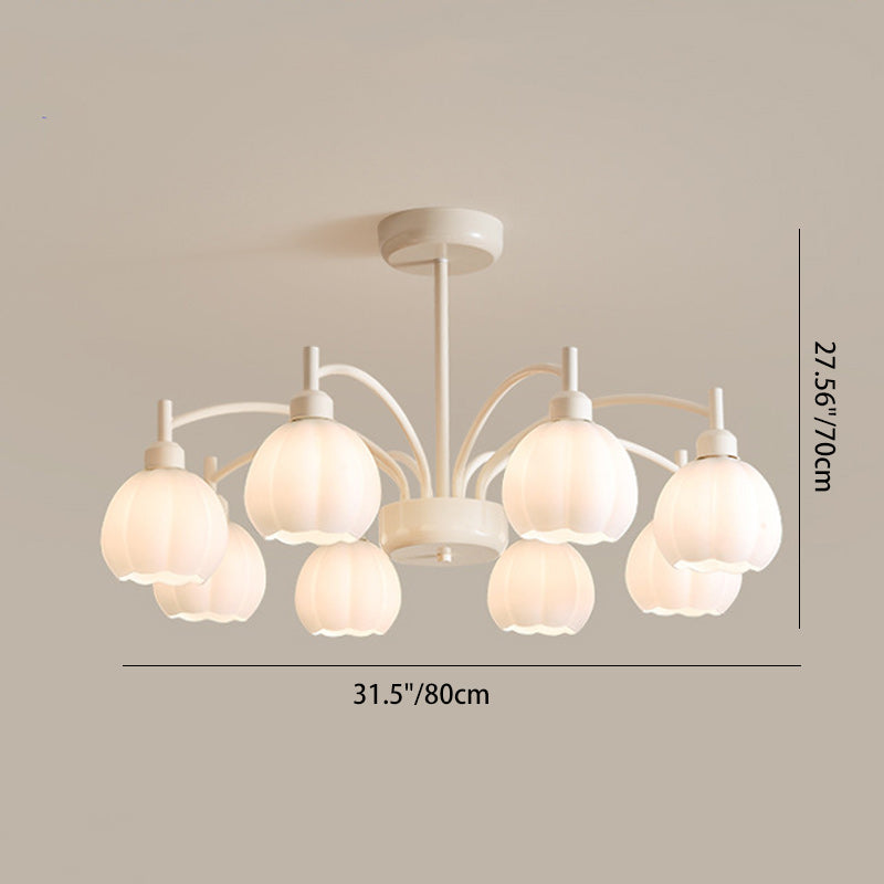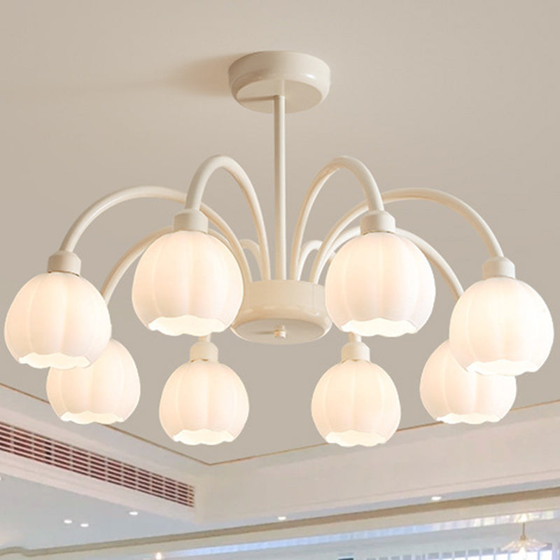 Traditional French Iron Frame Glass Flower Shade 8-Light Chandelier For Living Room
