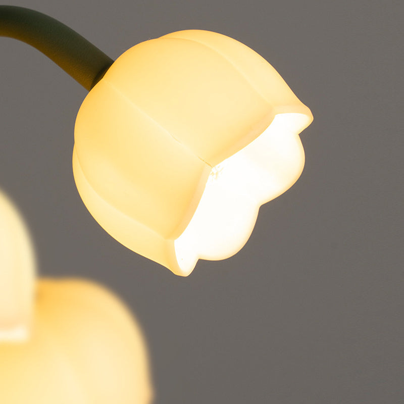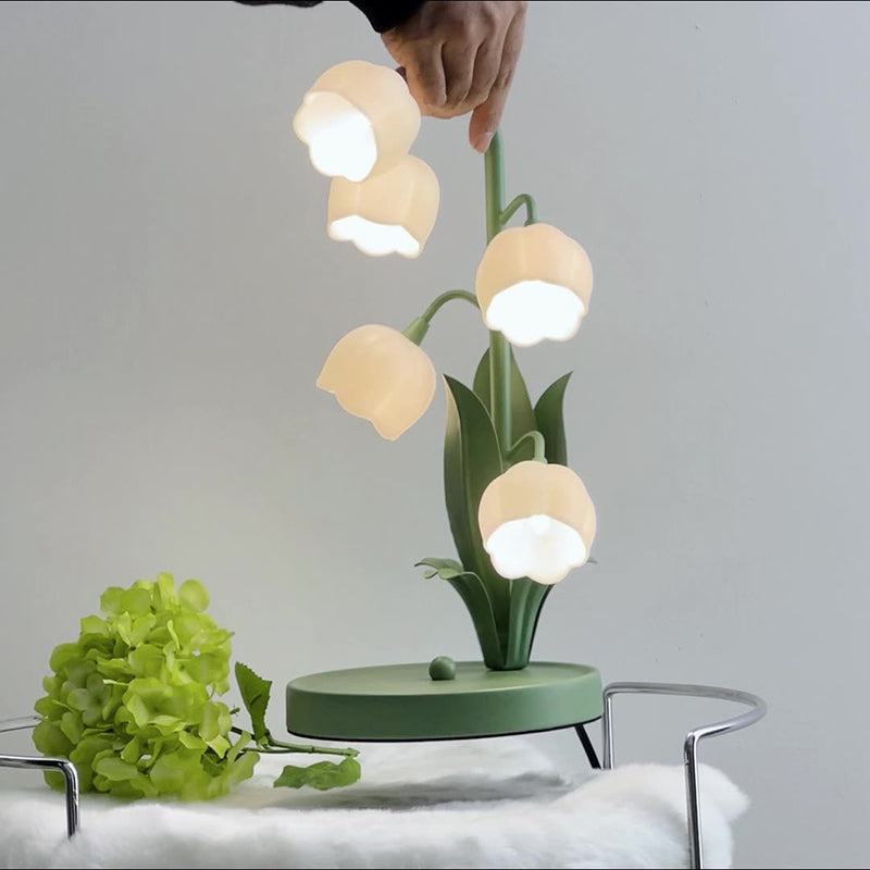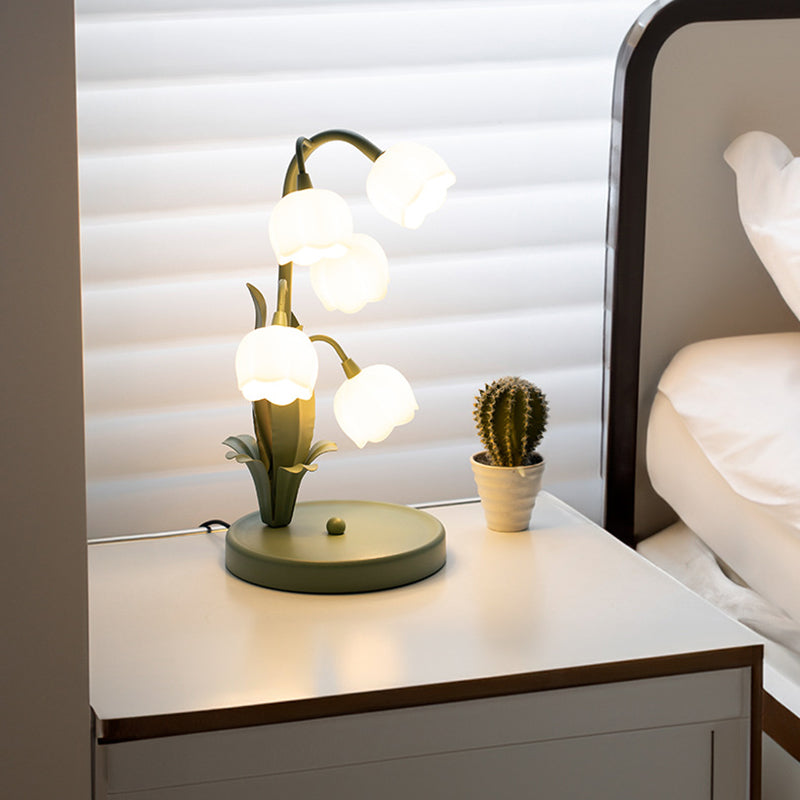 Traditional French Iron PC Glass Floral USB 5-Light Table Lamp For Bedside