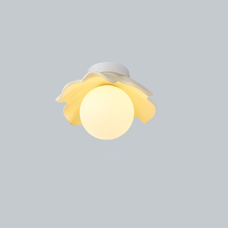 Traditional French Resin Flower PE Ball Shade 1-Light Semi-Flush Mount Ceiling Light For Living Room