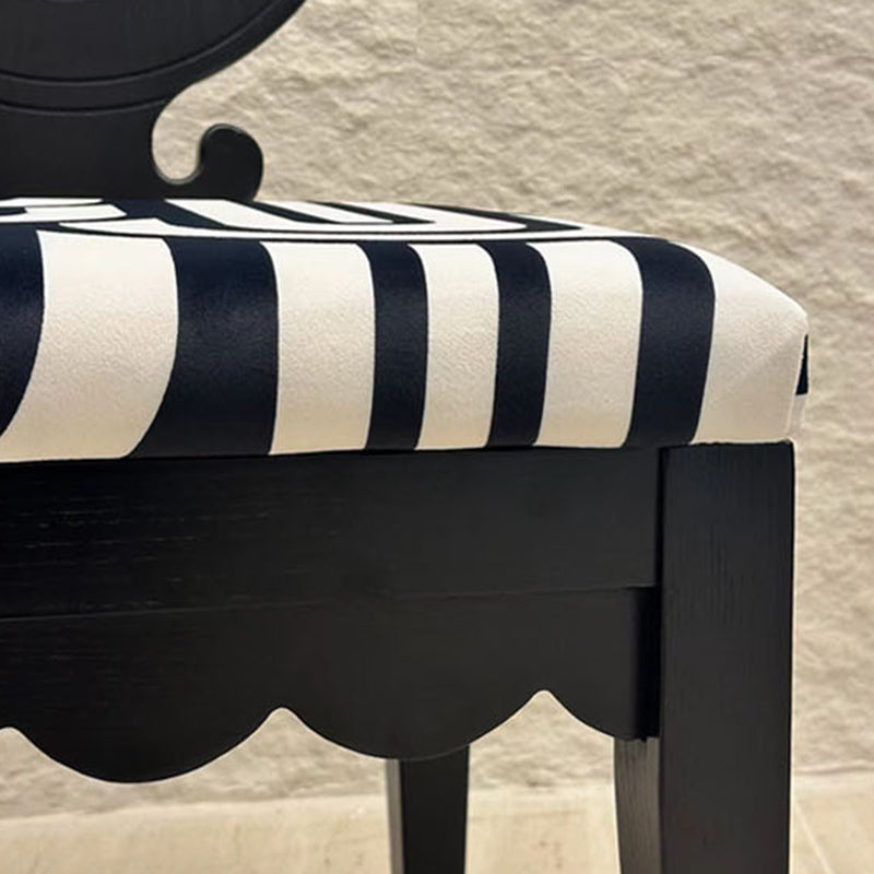 Traditional French Round Clover Backrest Square Upholstered Fabric Wood Vanity Stool For Bedroom