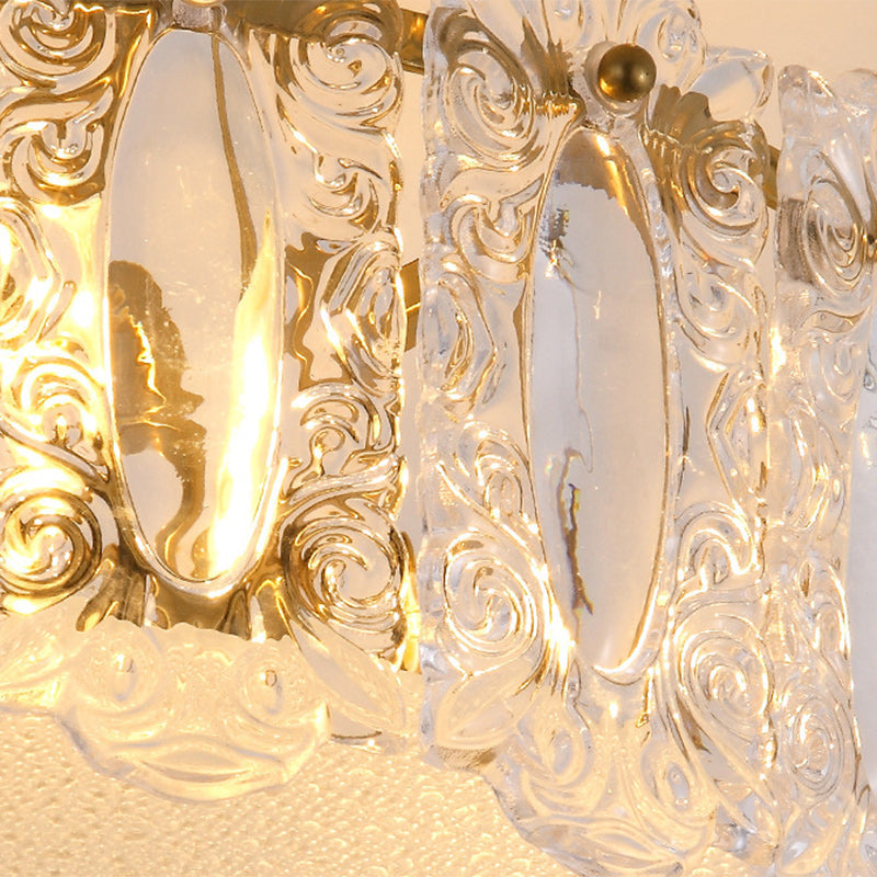 Traditional French Round Copper Glass 5/6/8-Light Semi-Flush Mount Ceiling Light For Living Room