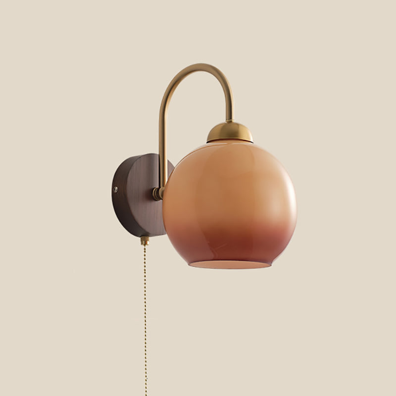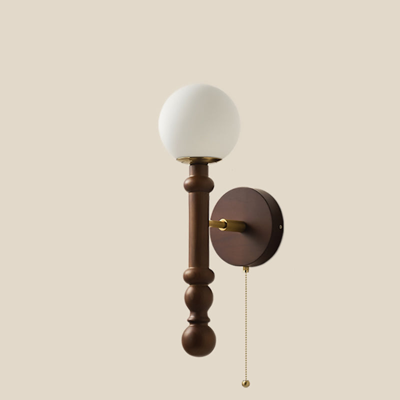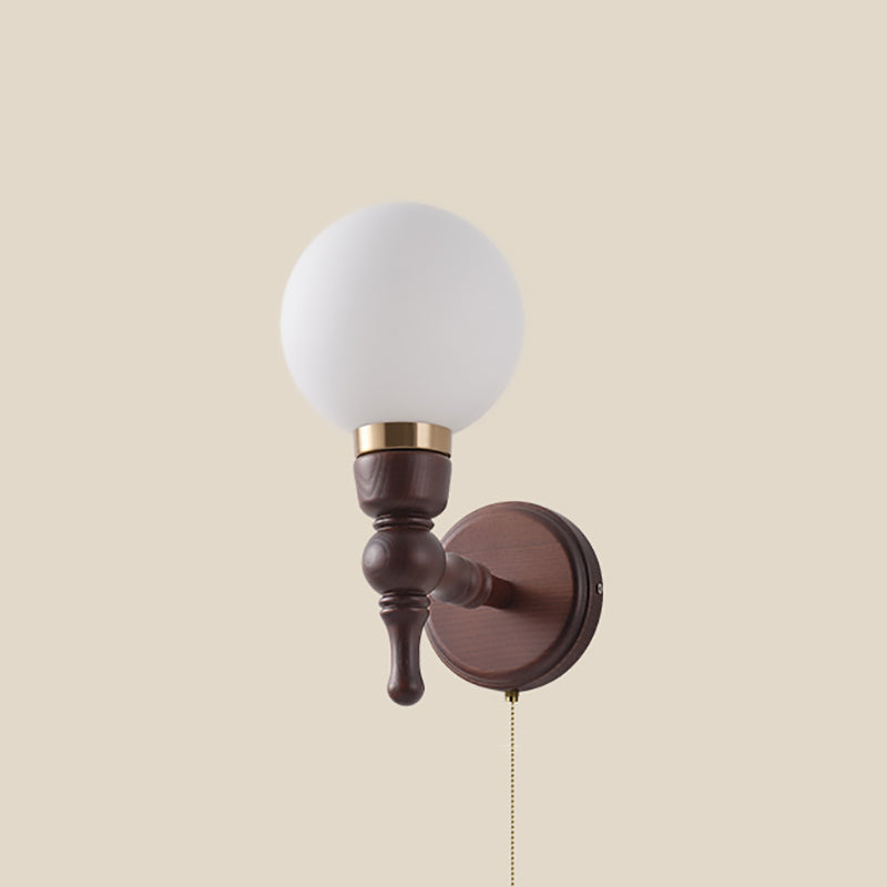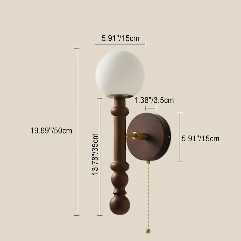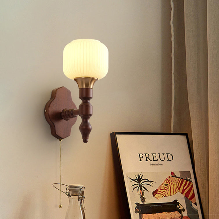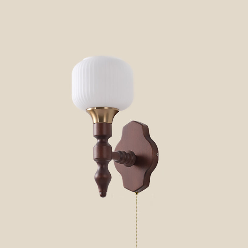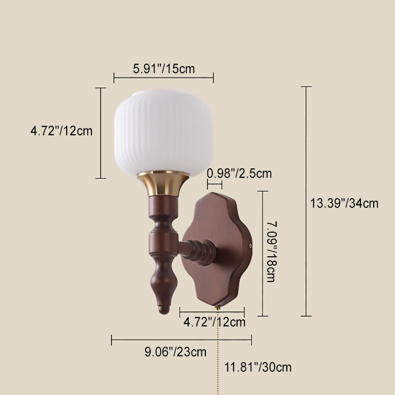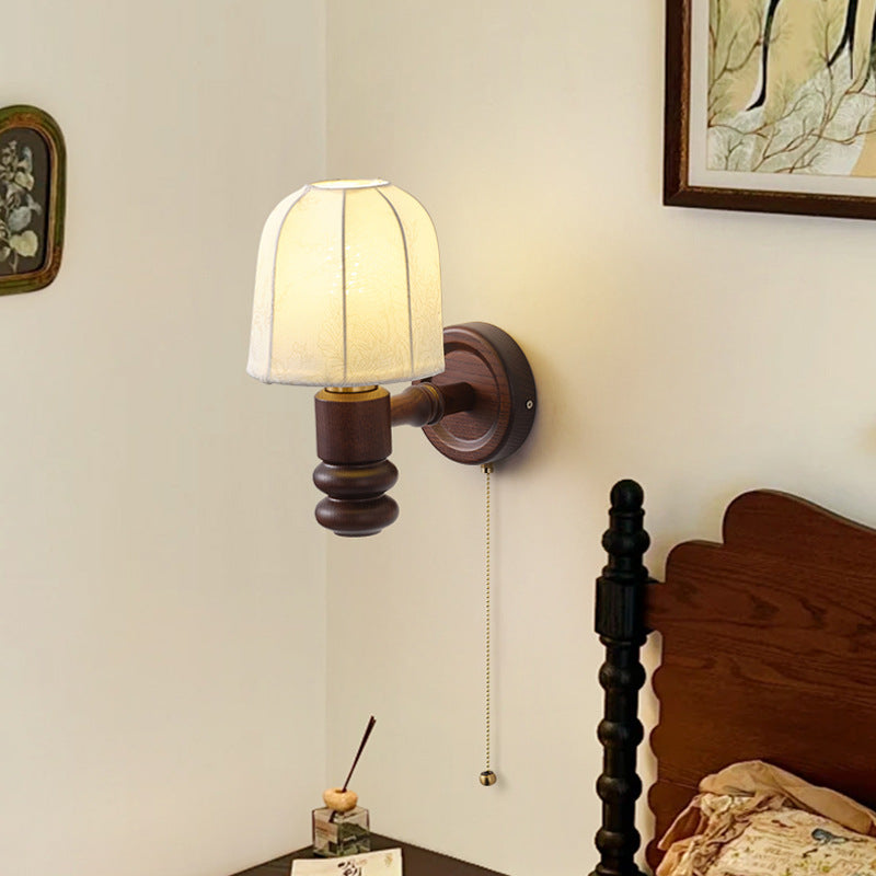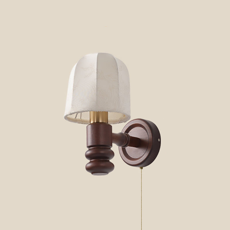 Traditional French Round Trapezoidal Orb Wood Iron Frame Fabric Shade 1-Light Wall Sconce Lamp For Living Room