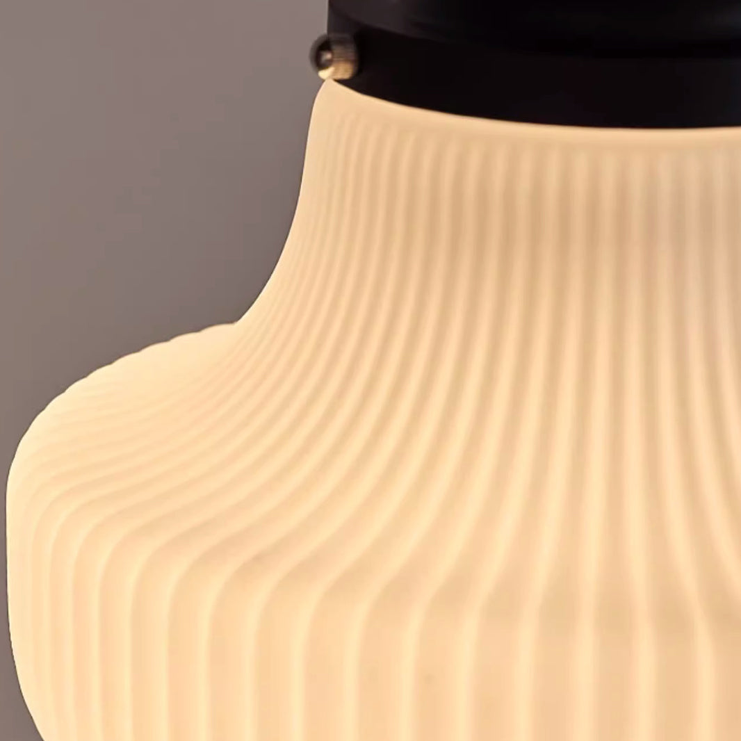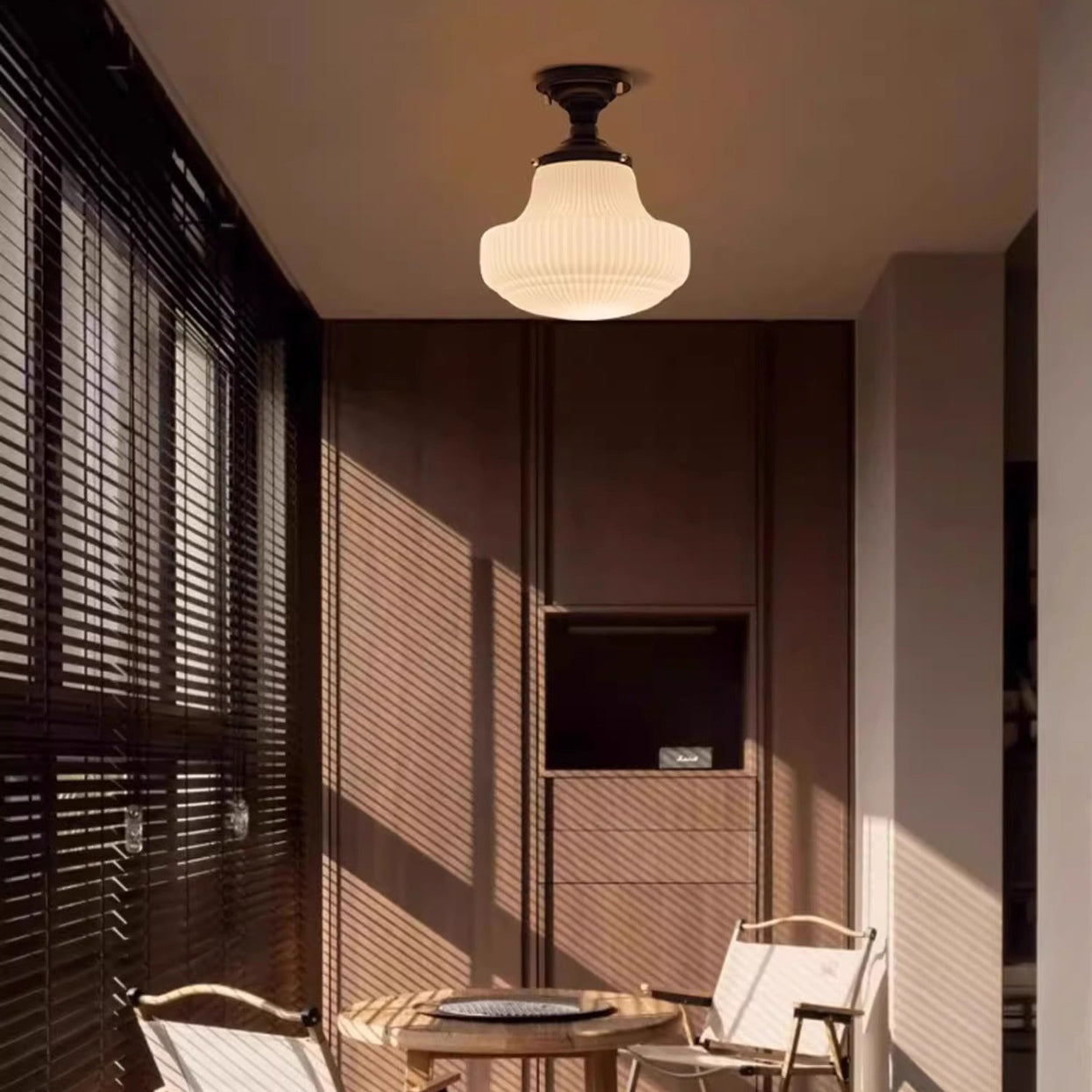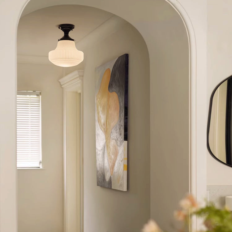Traditional French Striped White Jade Glass Round Shade Alloy 1-Light Semi-Flush Mount Ceiling Light For Living Room