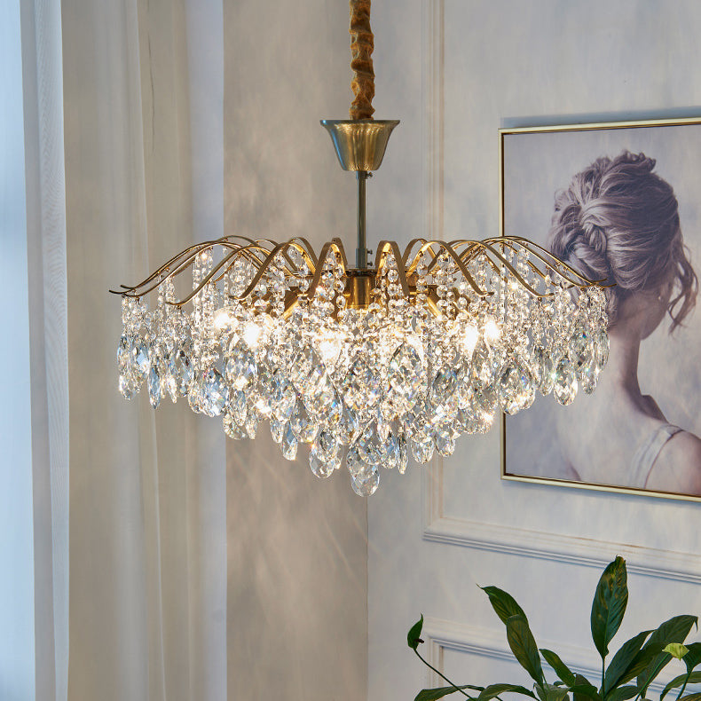 Traditional French Tassel Round Copper Crystal 5/6/8/12 Light Chandelier For Living Room