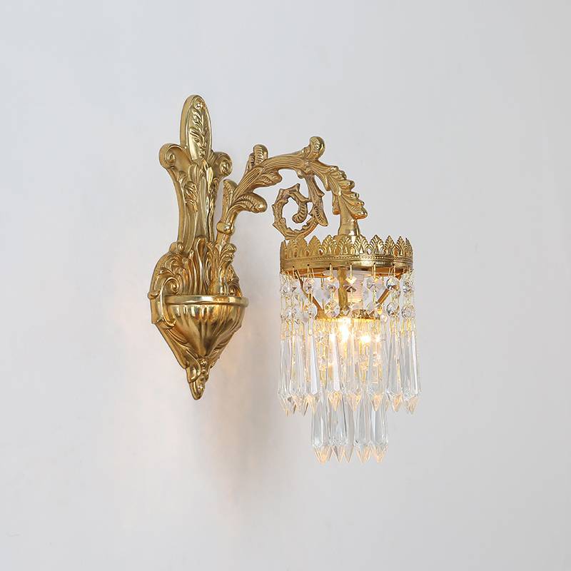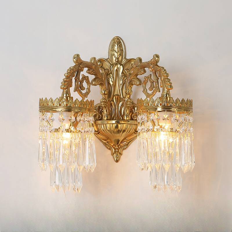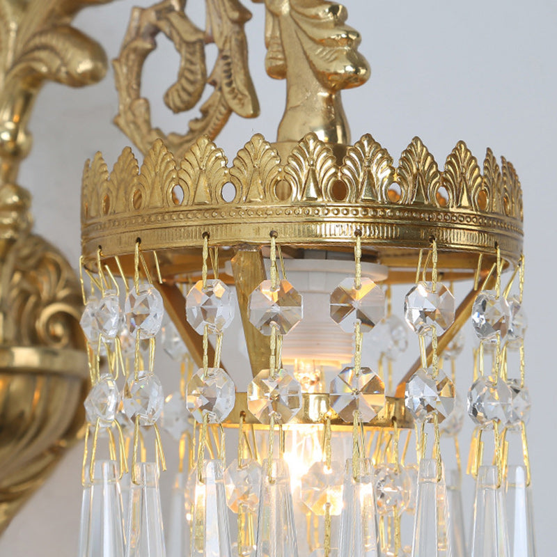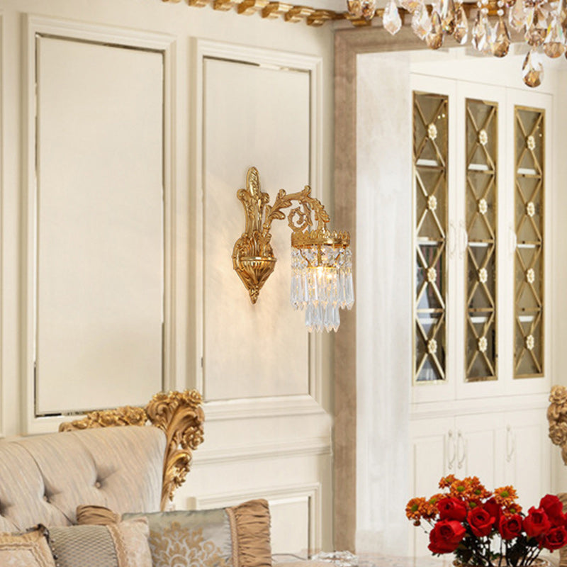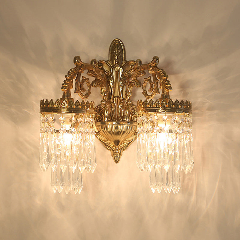 Traditional French Teardrop Copper Crystal 1/2-Light Wall Sconce Lamp For Living Room