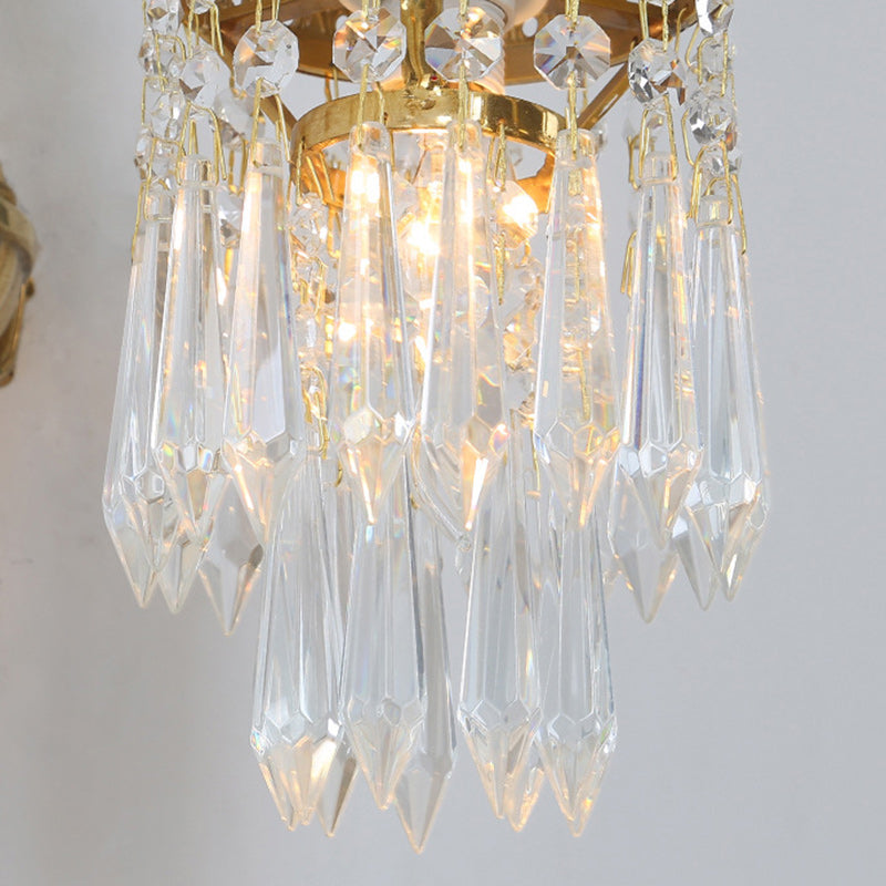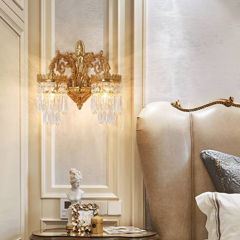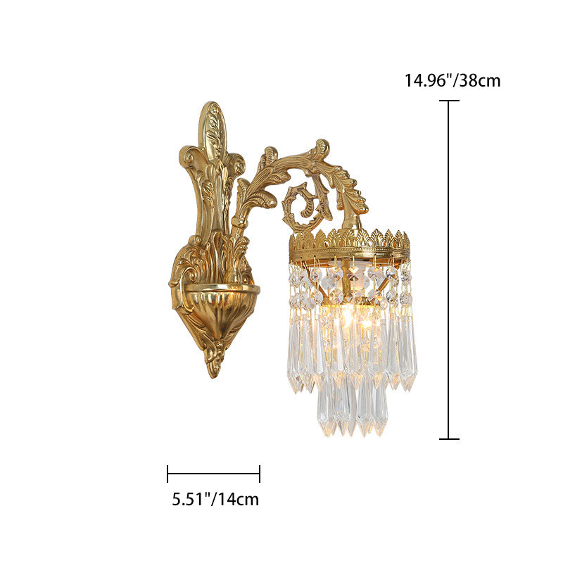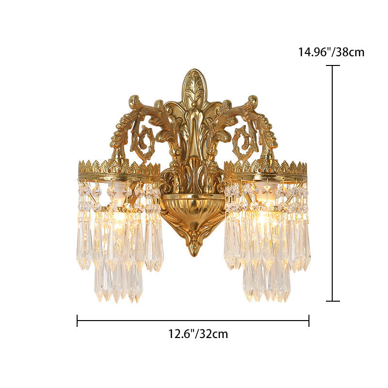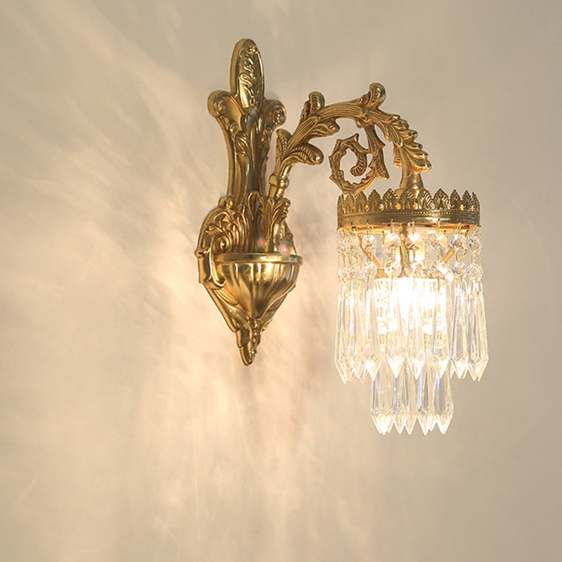 Traditional French Teardrop Copper Crystal 1/2-Light Wall Sconce Lamp For Living Room