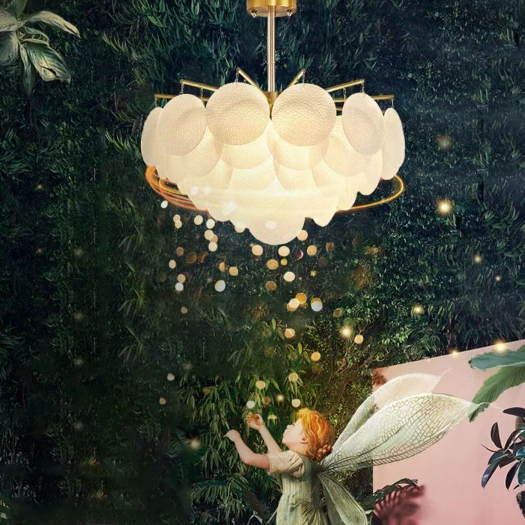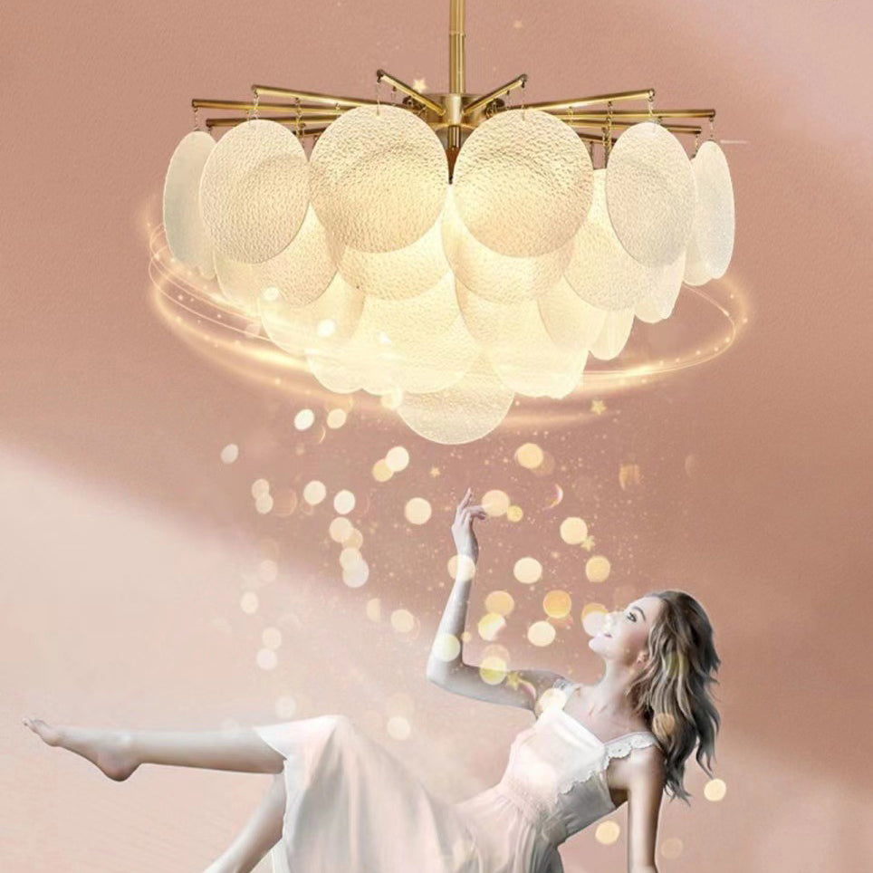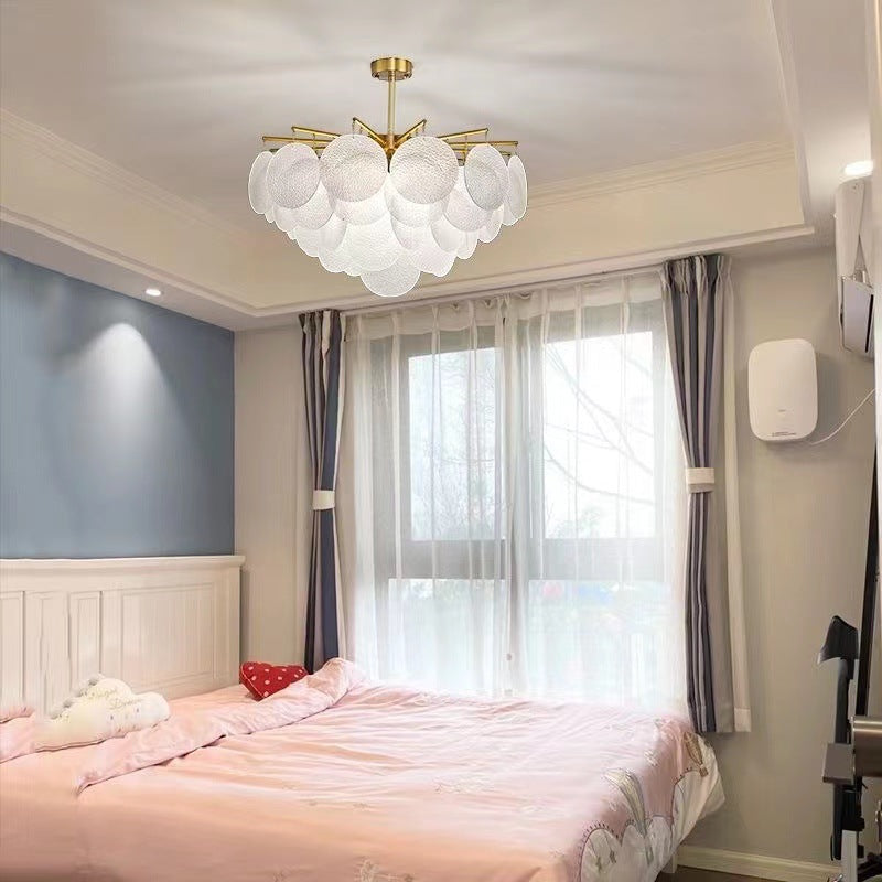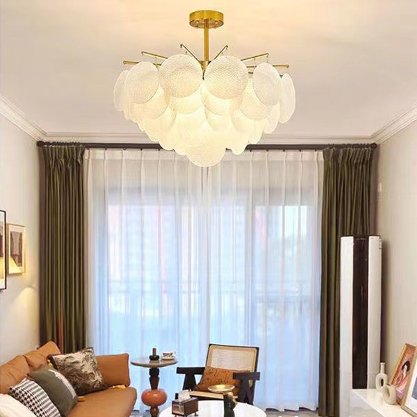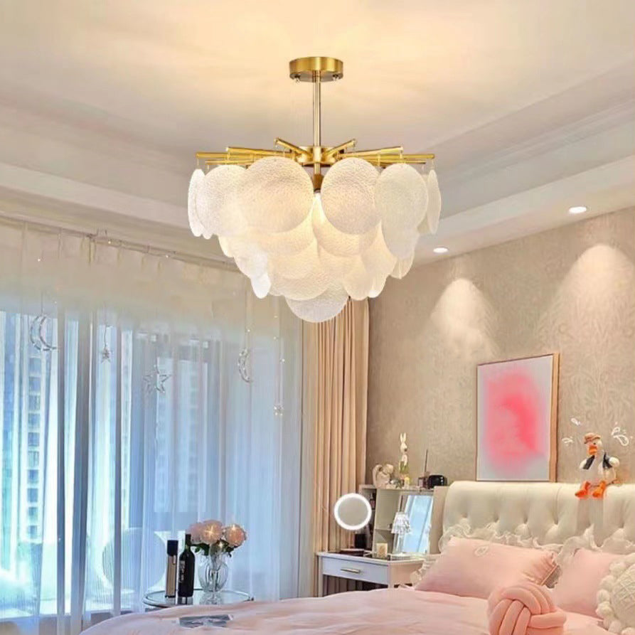 Traditional French Tiered Round Textured Cloud Glass Iron 6/8/9-Light Chandelier For Living Room