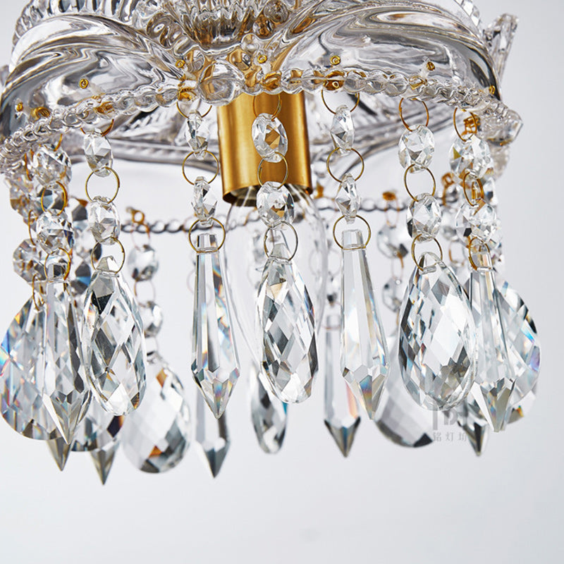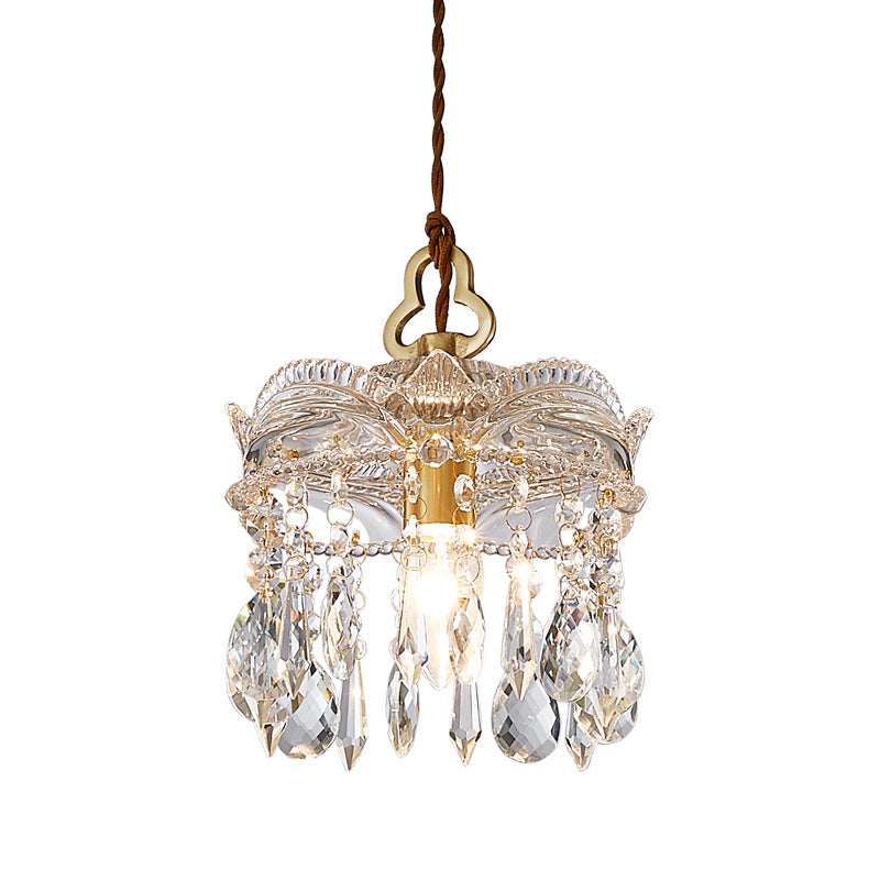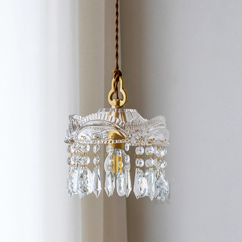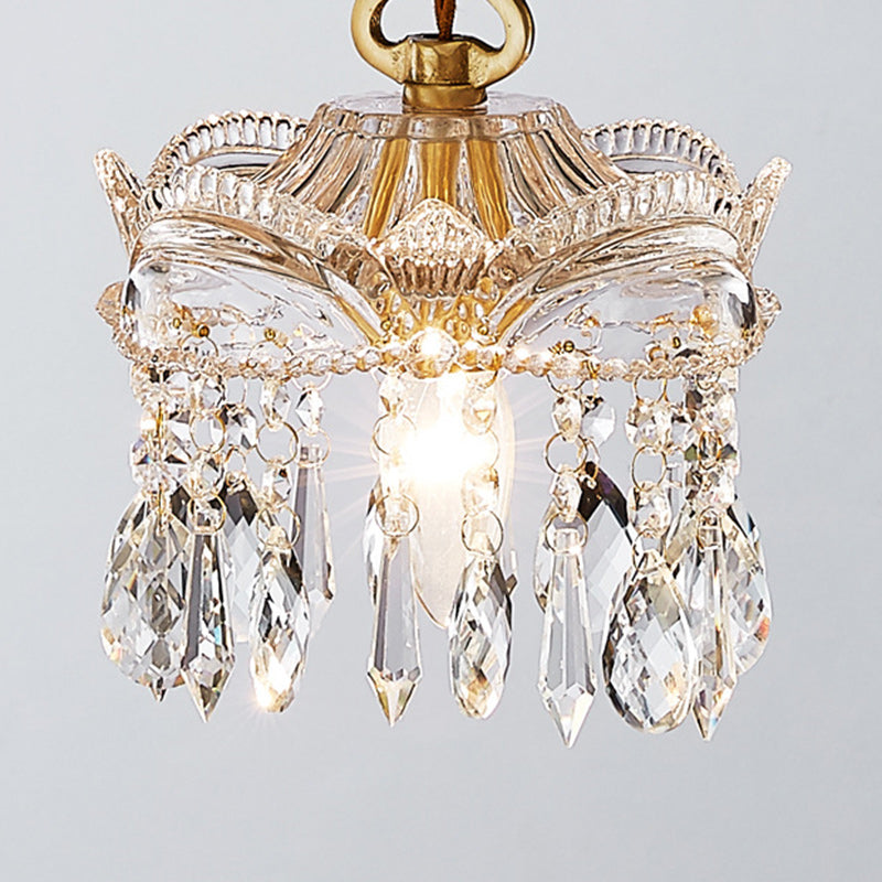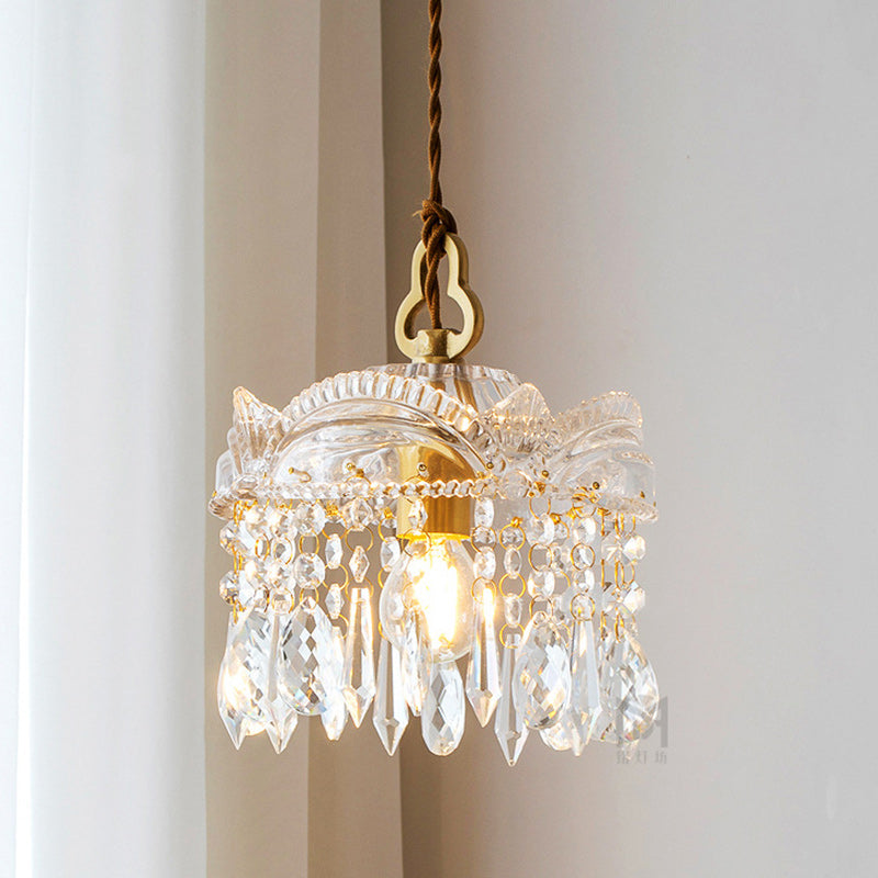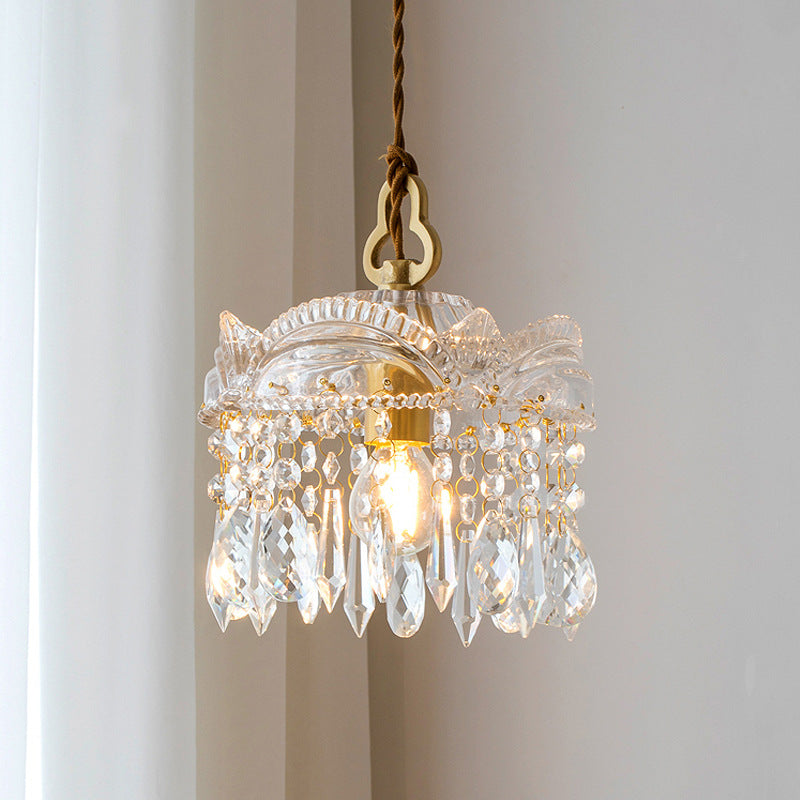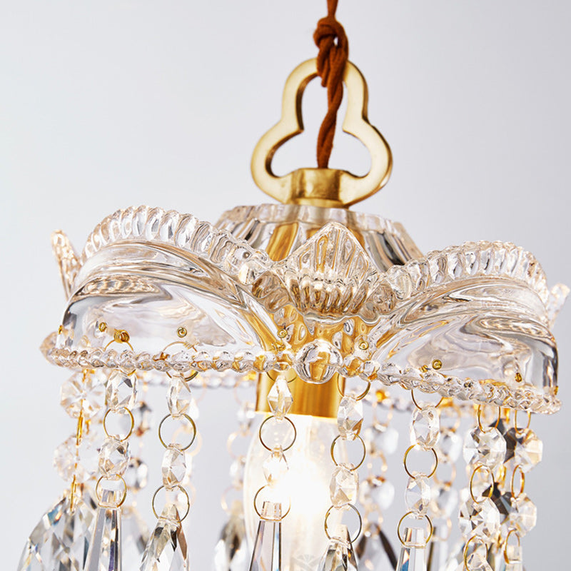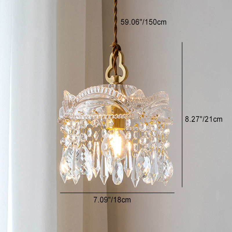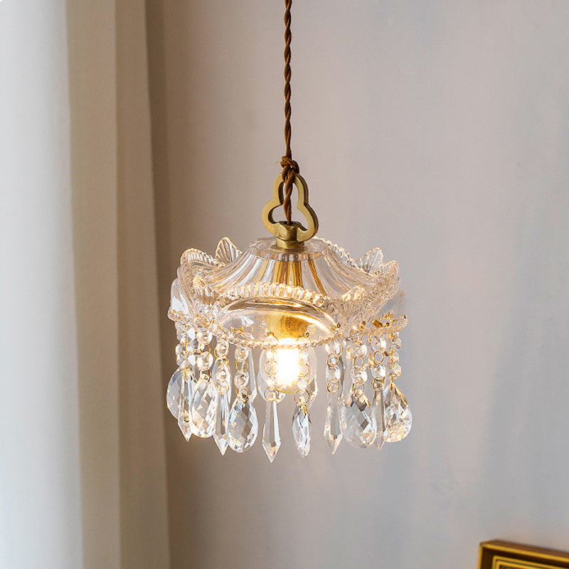 Traditional French Transparent Crystal Glass Lampshade Copper 1 - Light Pendant Light For Living Room