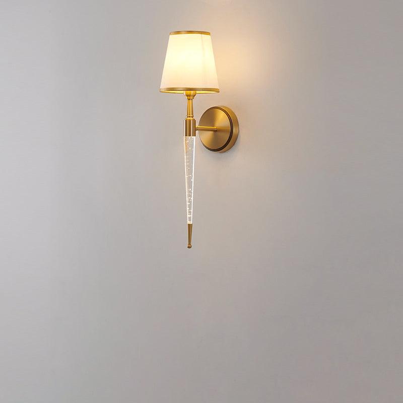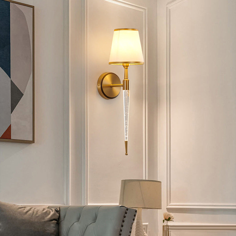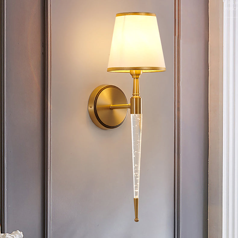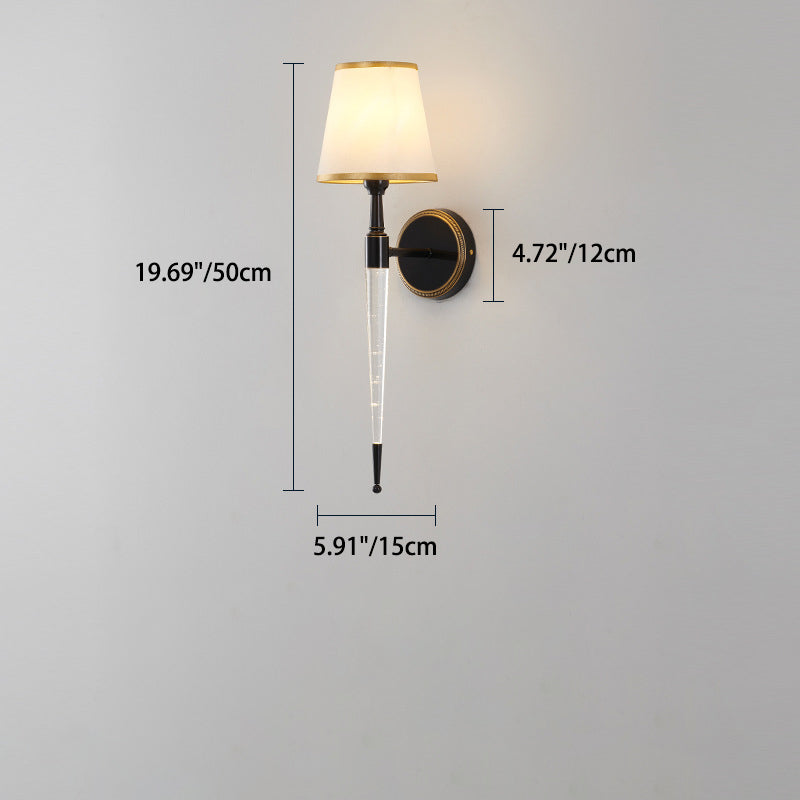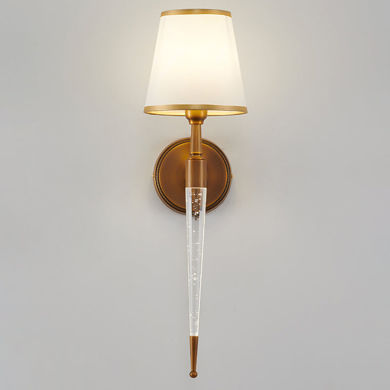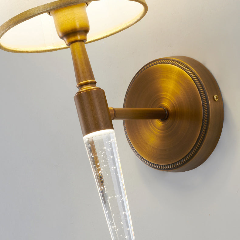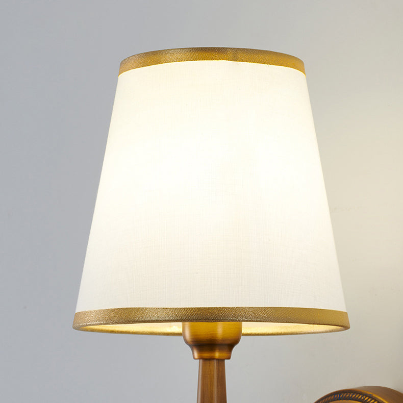 Traditional French Trapezoid Copper Fabric 1-Light Wall Sconce Lamp For Living Room