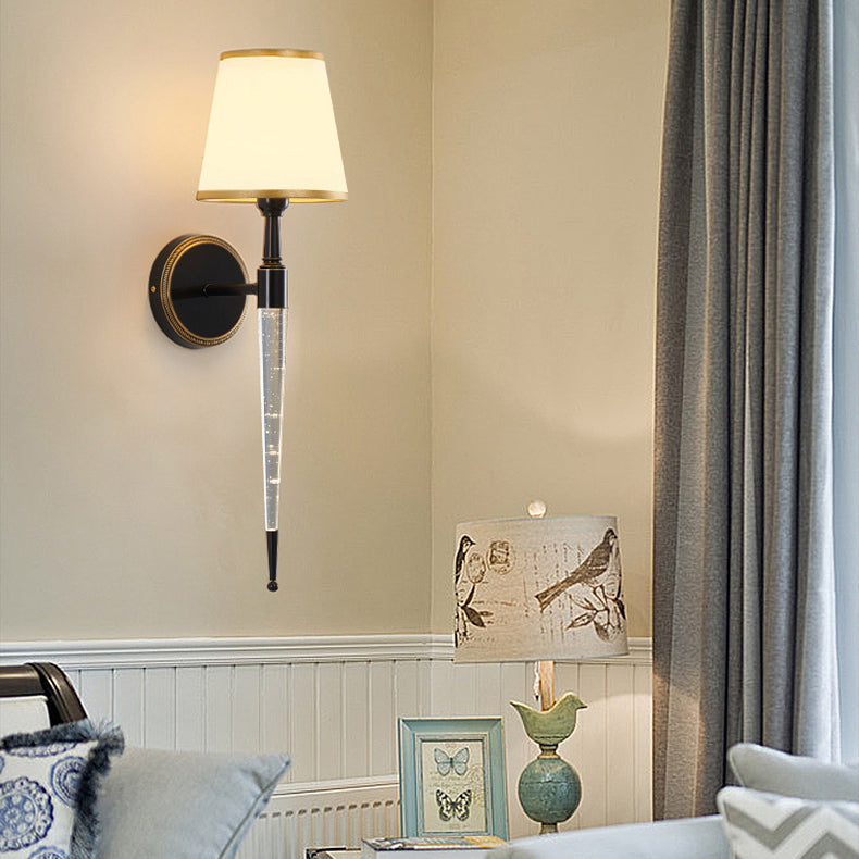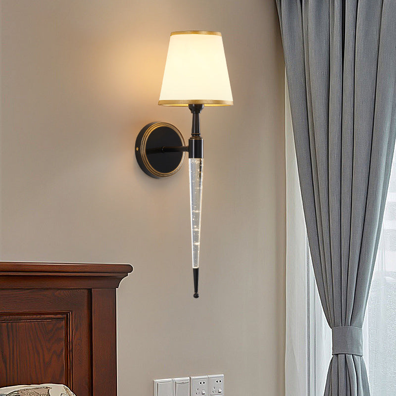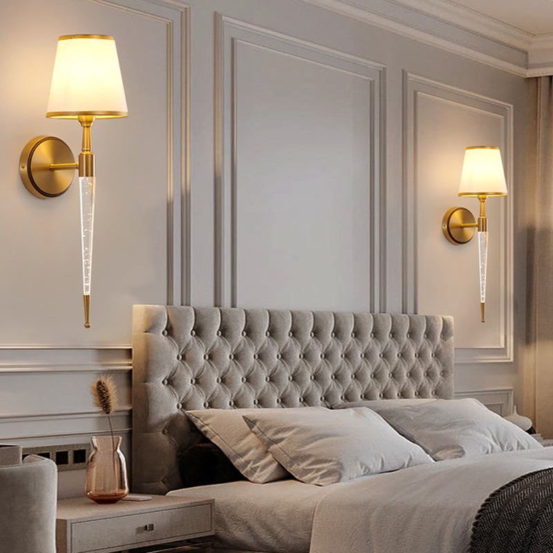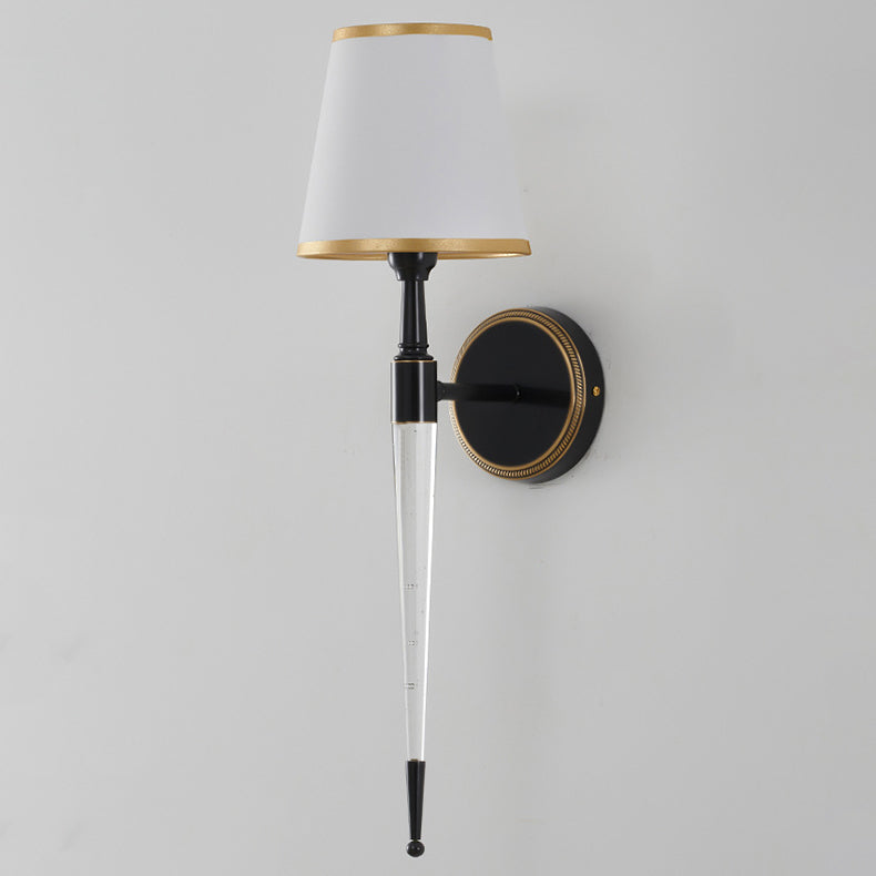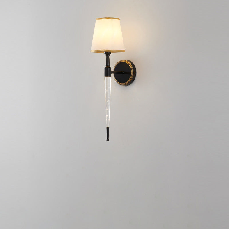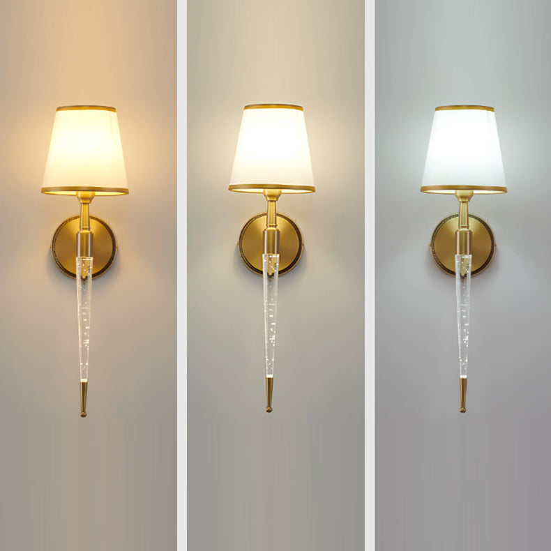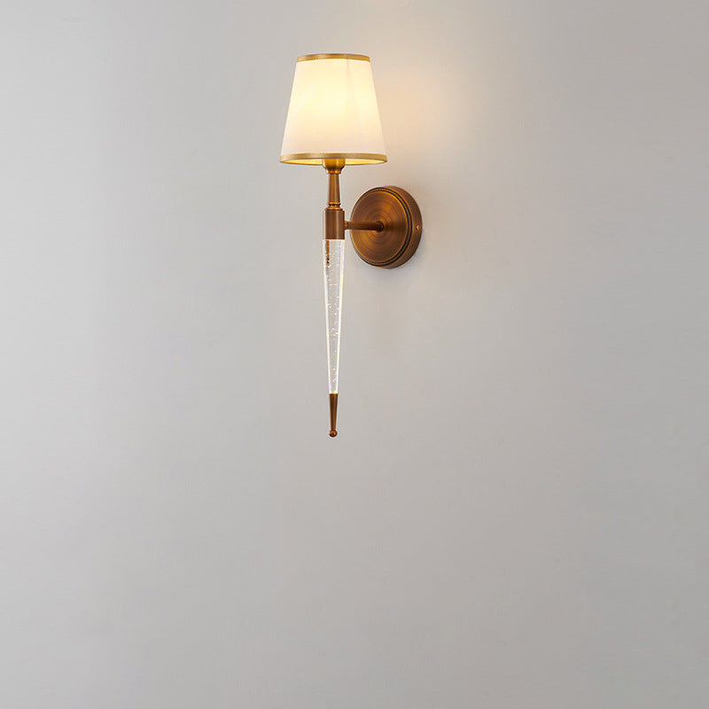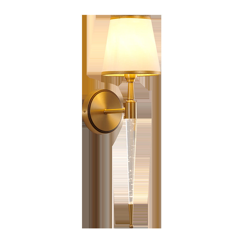 Traditional French Trapezoid Copper Fabric 1-Light Wall Sconce Lamp For Living Room