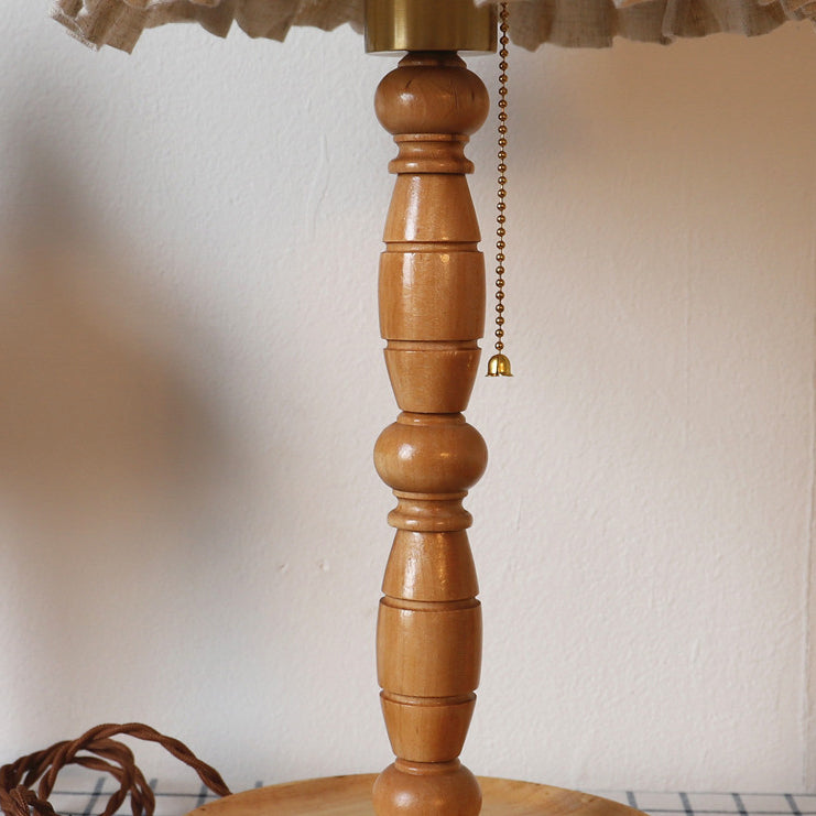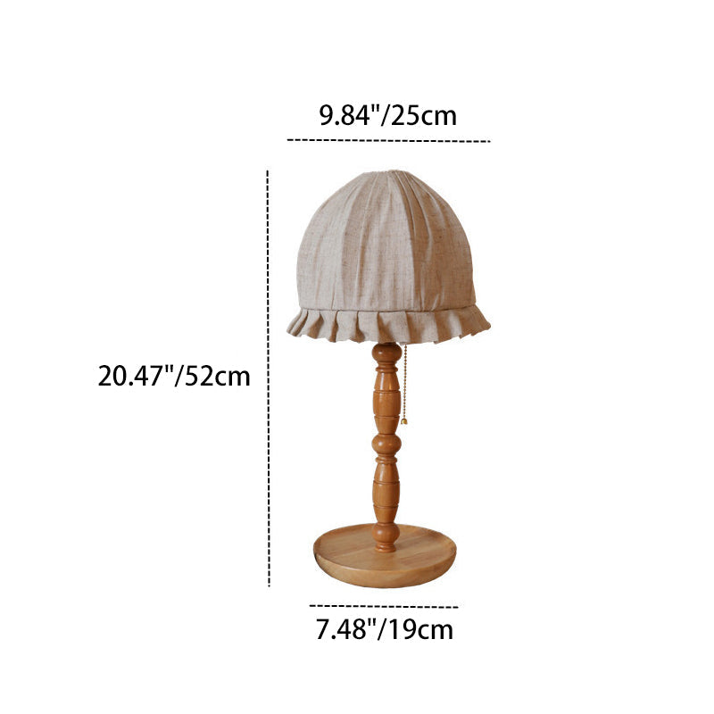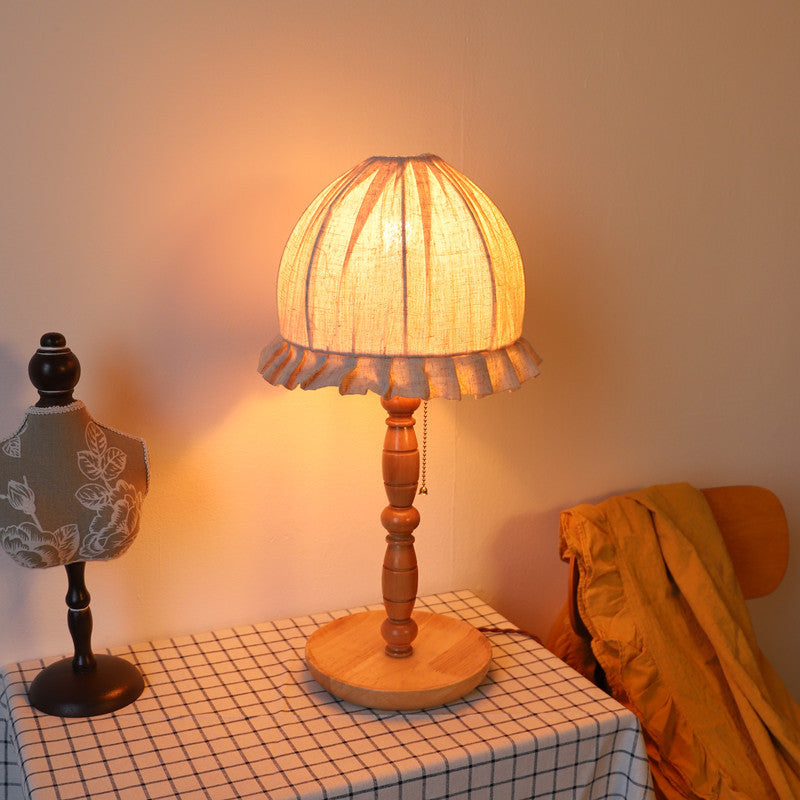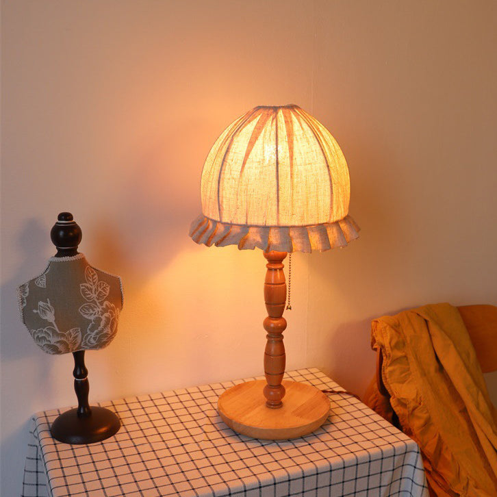 Traditional French Wood & Fabric Lace-Trim Dome Shade 1-Light Table Lamp For Bedroom & Living Room