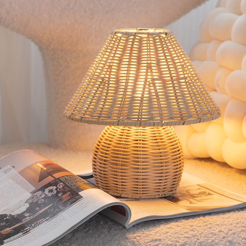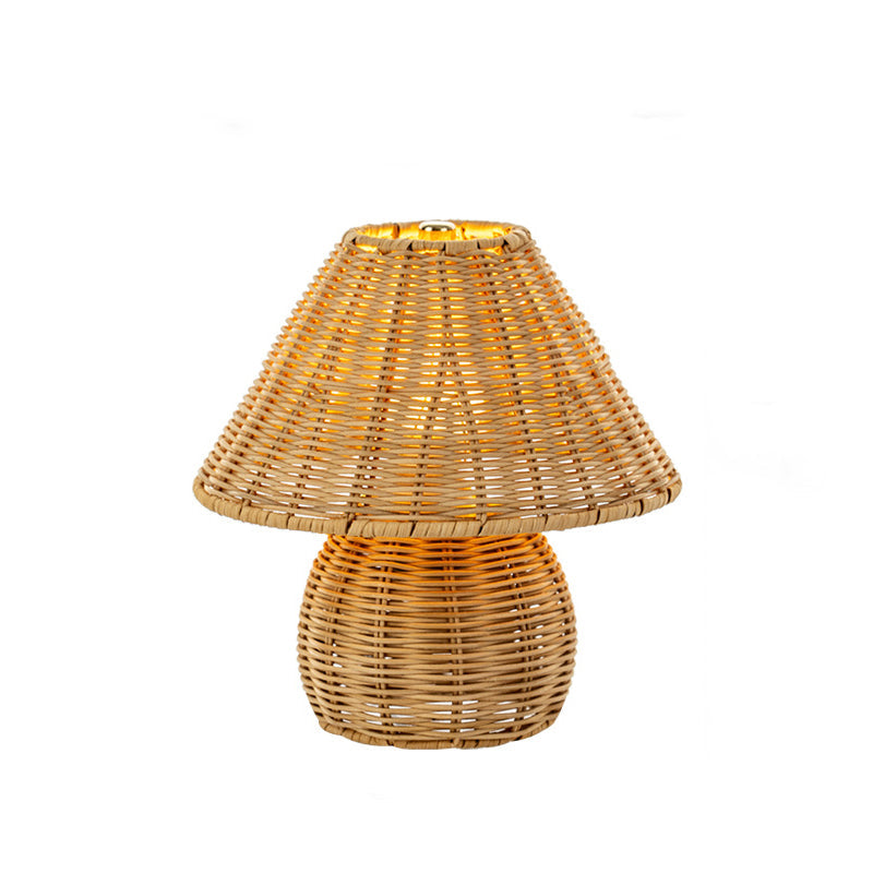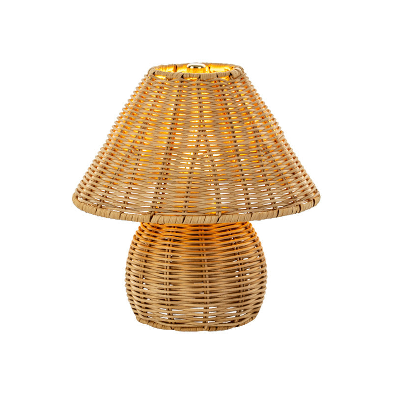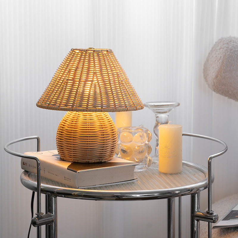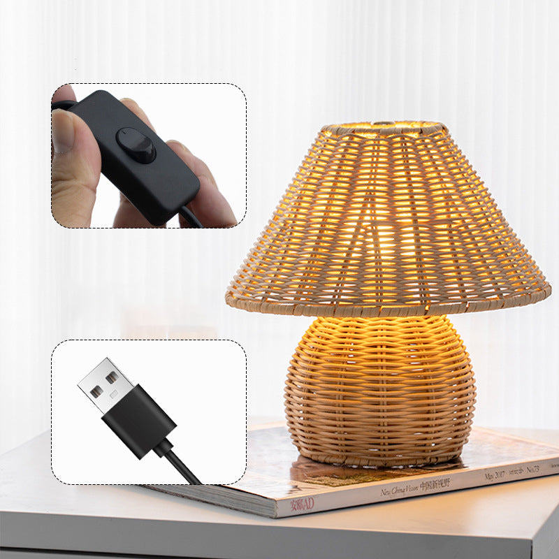 Traditional Japanese Ball Base Cone Shape Bamboo Hemp Rope Iron USB LED Table Lamp For Bedroom