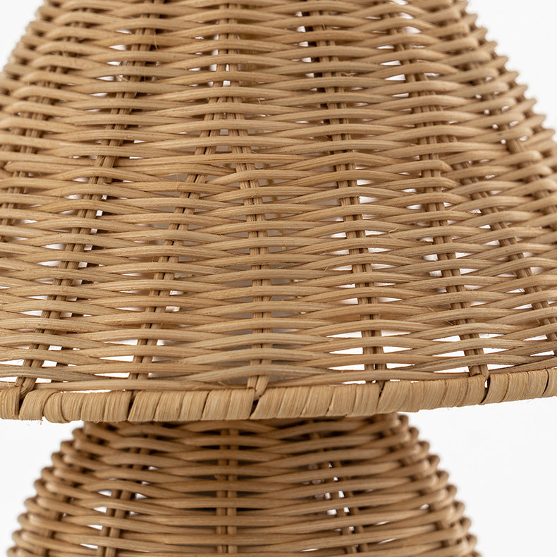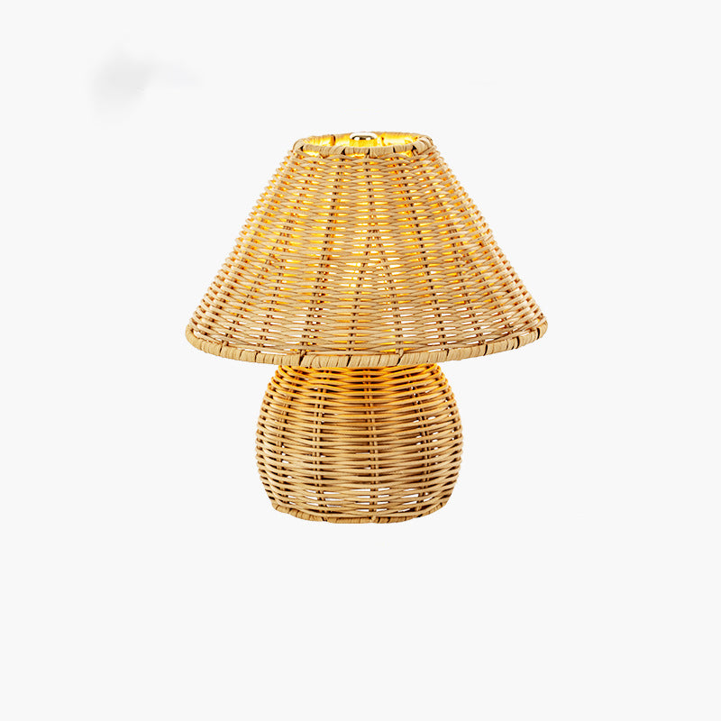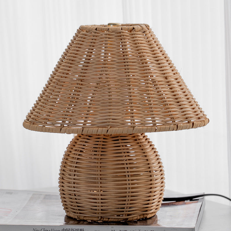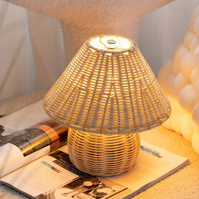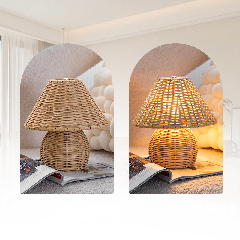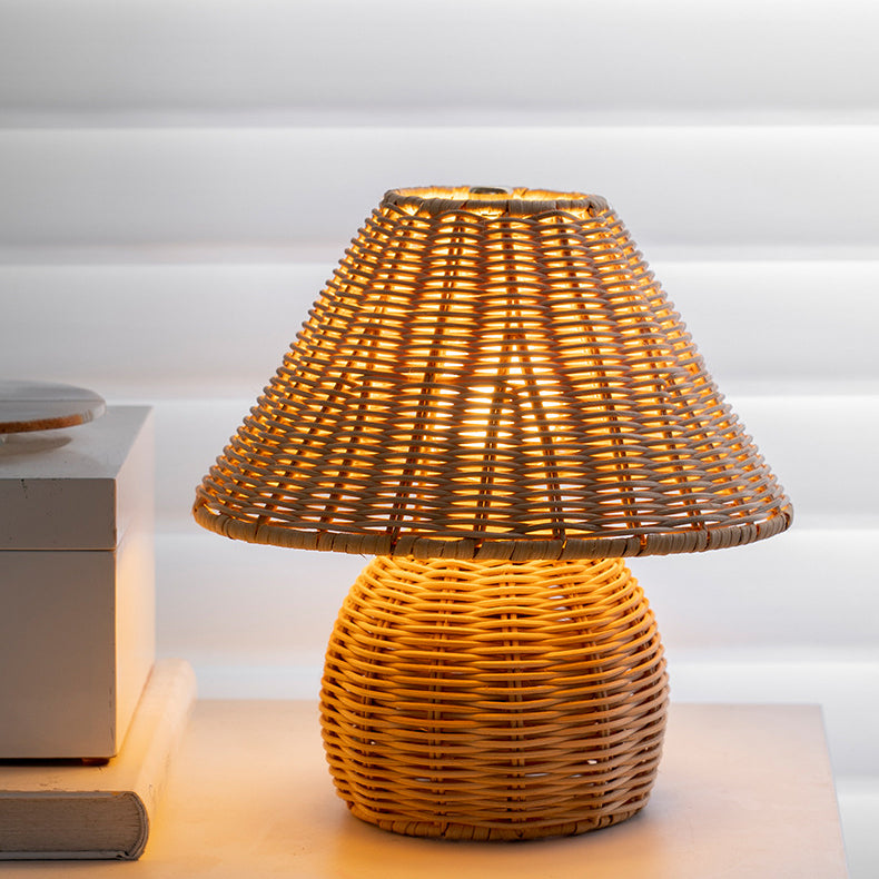 Traditional Japanese Ball Base Cone Shape Bamboo Hemp Rope Iron USB LED Table Lamp For Bedroom
