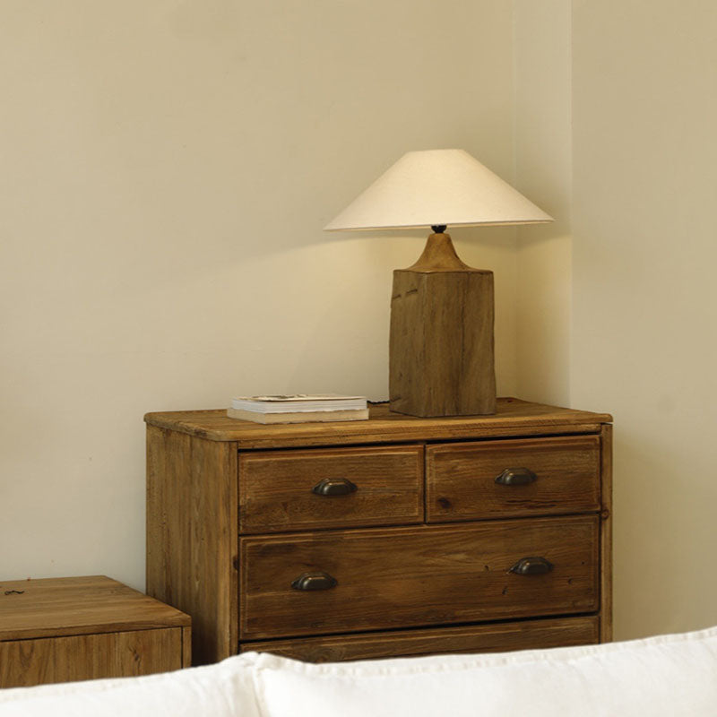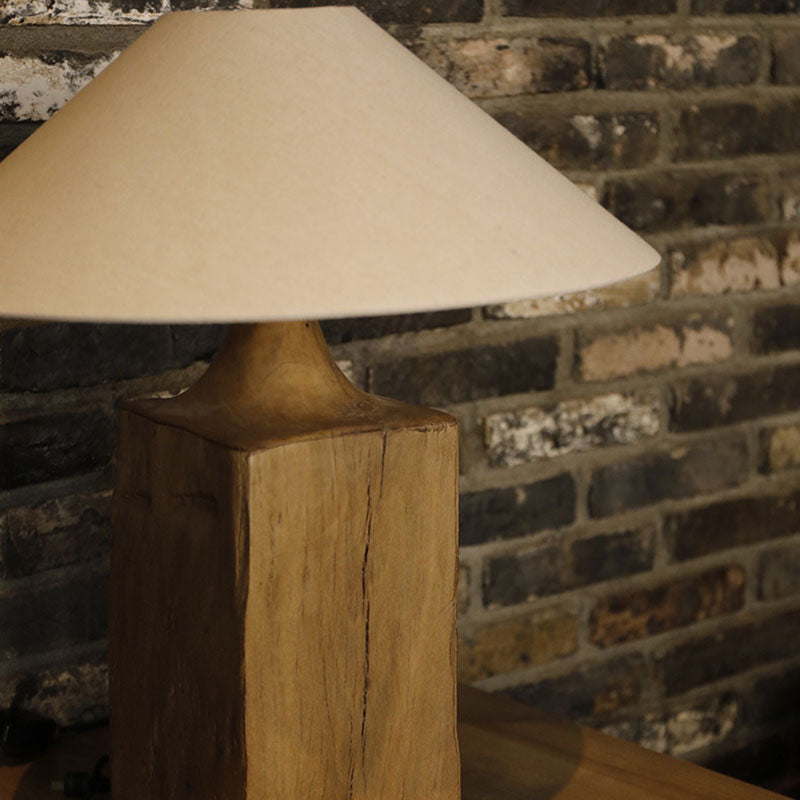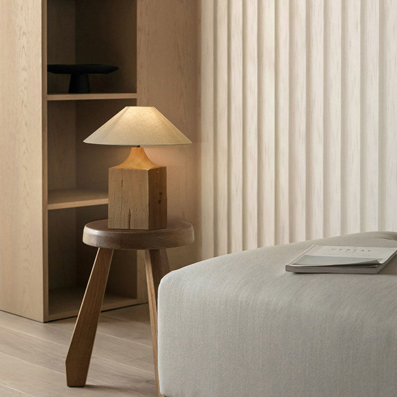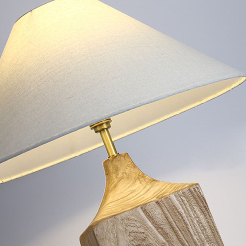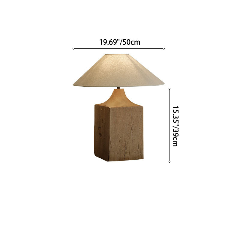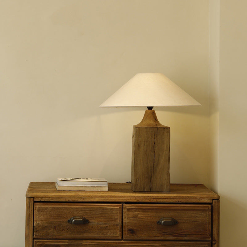 Traditional Japanese Cone Solid Wood Linen 1-Light Table Lamp For Bedroom
