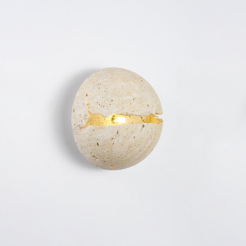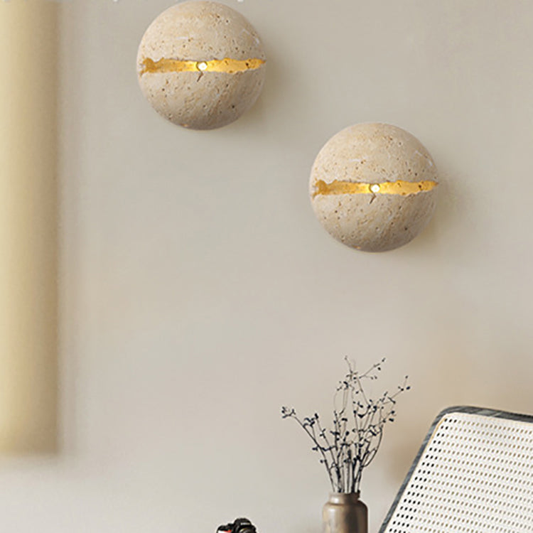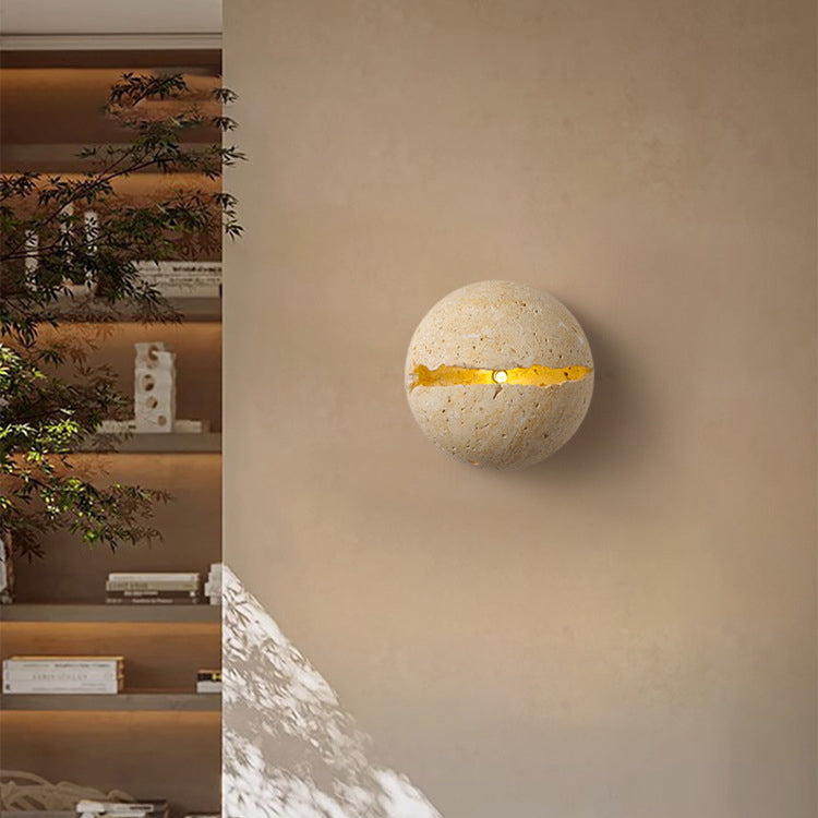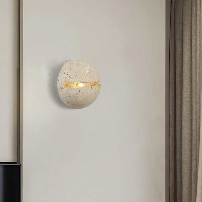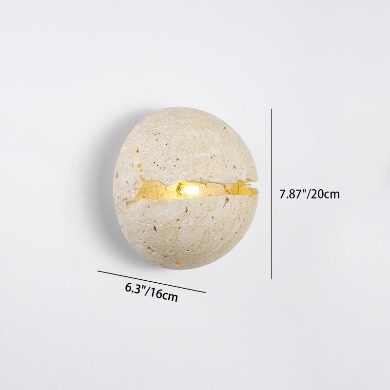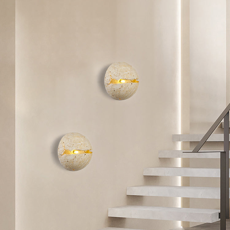 Traditional Japanese Crack Yellow Travertine Semicircle 1-Light Wall Sconce Lamp For Living Room